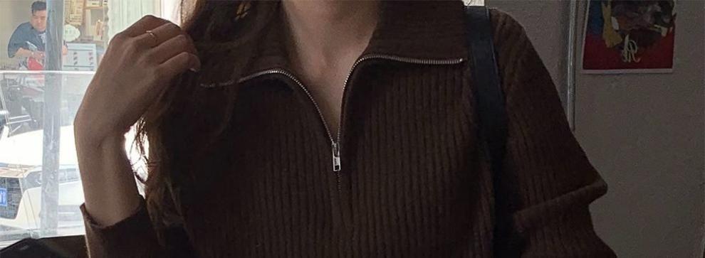Suéter con cremallera de otoño e invierno para mujer, camisa de punto, ropa exterior holgada, diseño de estilo nicho