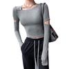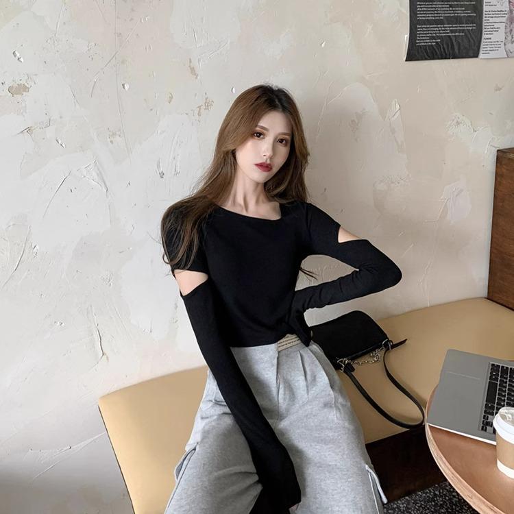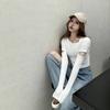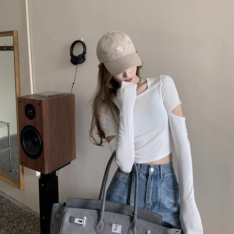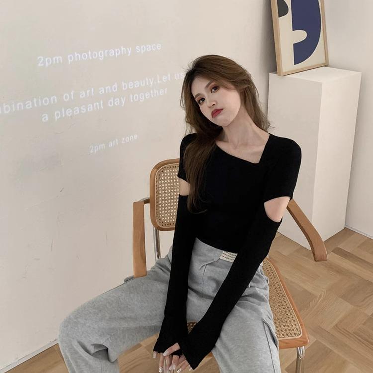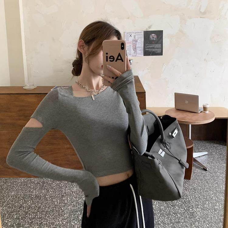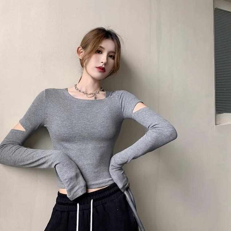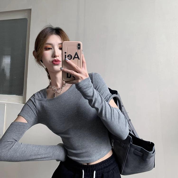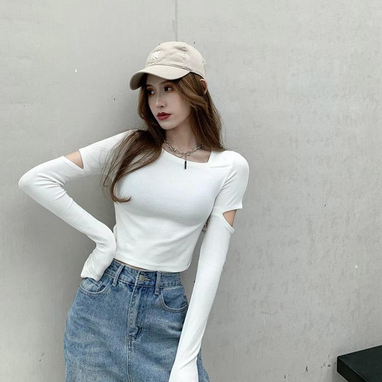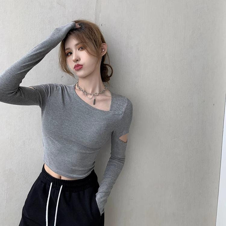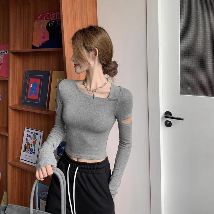 Nueva Amazon AliExpress Primavera y Otoño Nueva Sexy Slim Stretch Slim Camiseta Corta Slim Ropa de Mujer