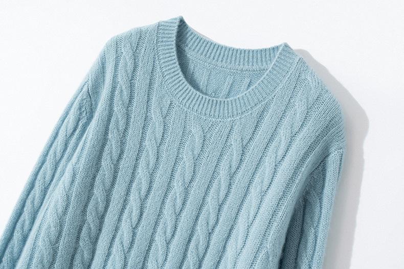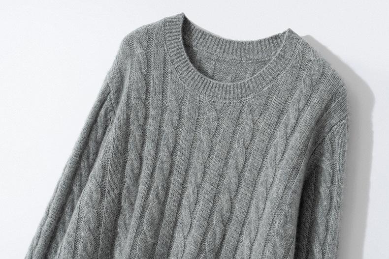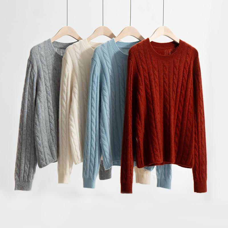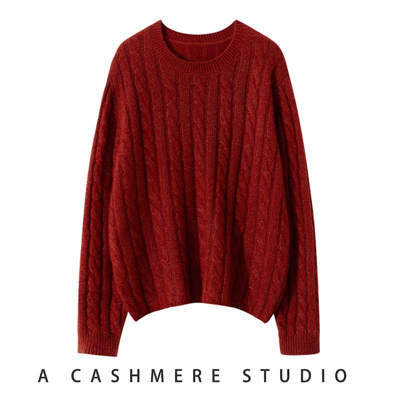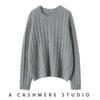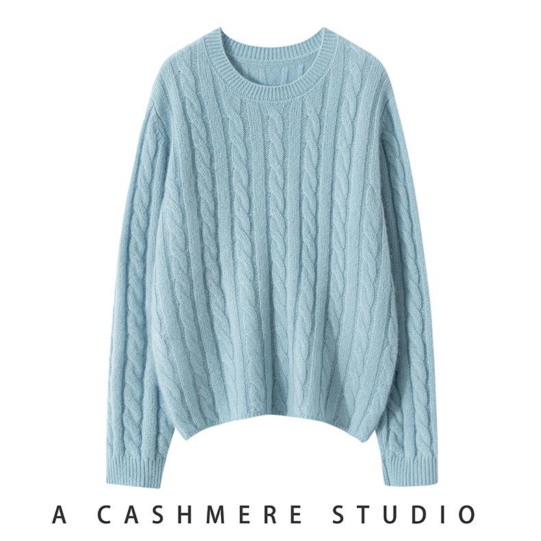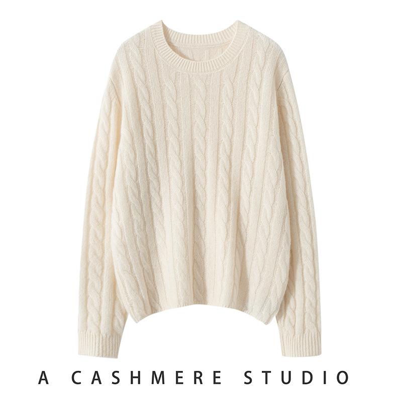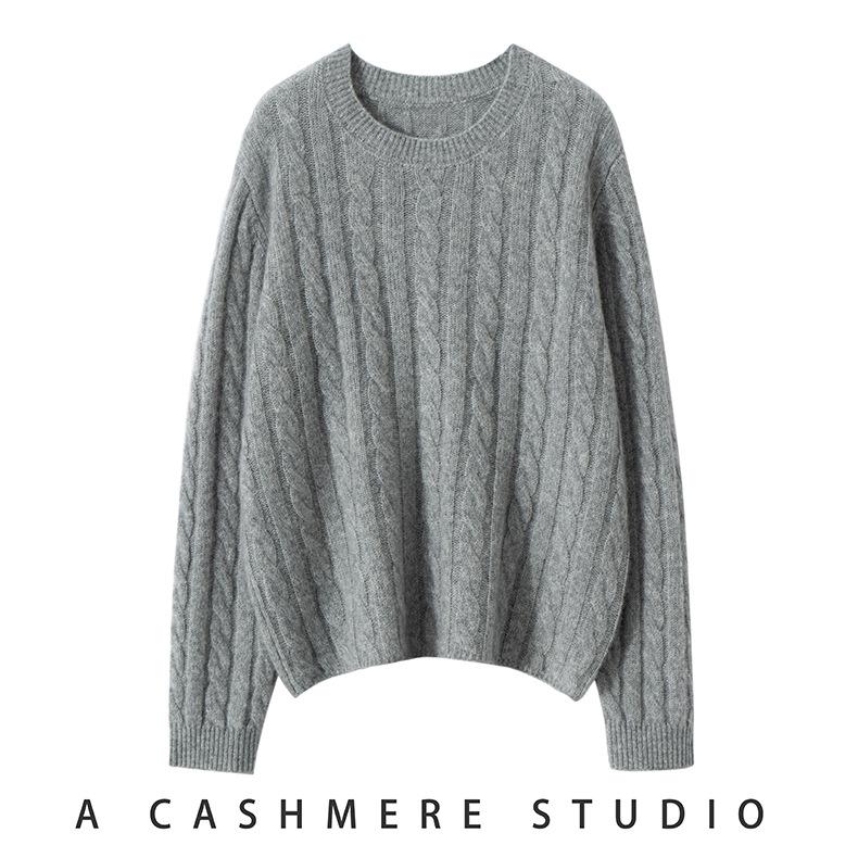Suéter Nuevo Grueso 100% Cachemira Ligera para Mujer, Tejido Cuello Redondo, Suéter de Cachemira Holgado de Manga Larga, Camiseta Base para Mujer