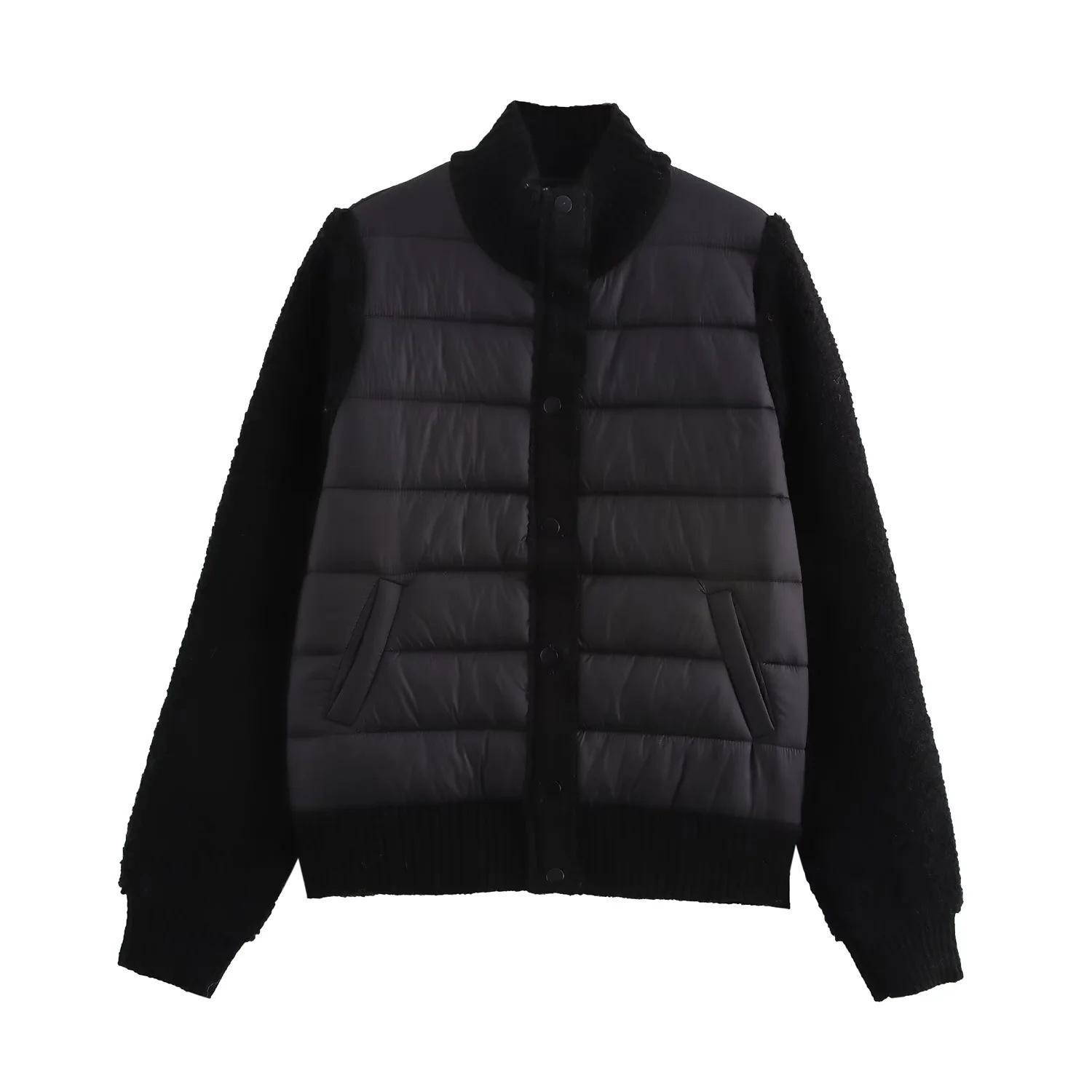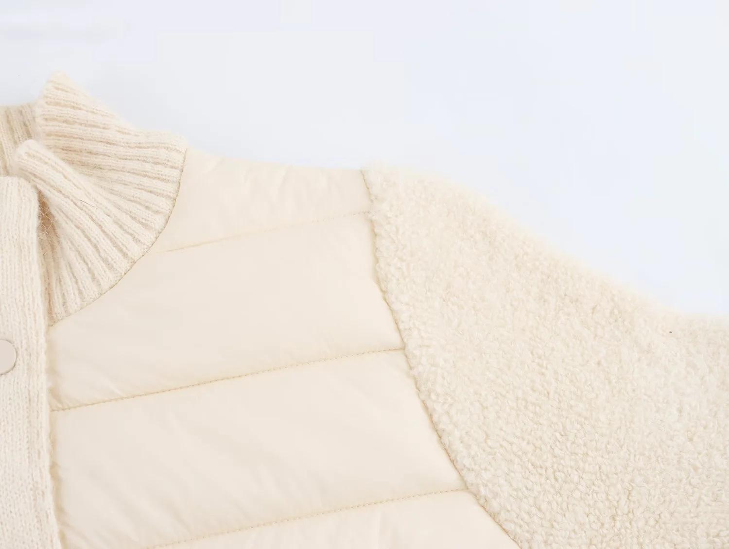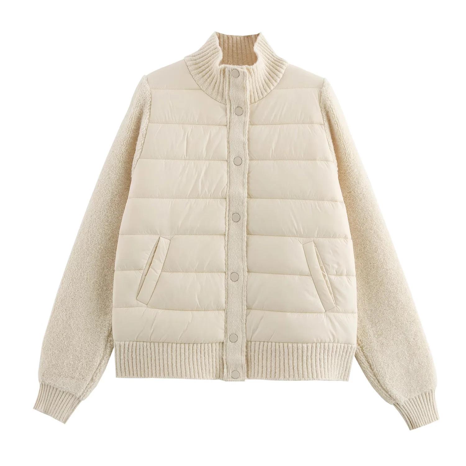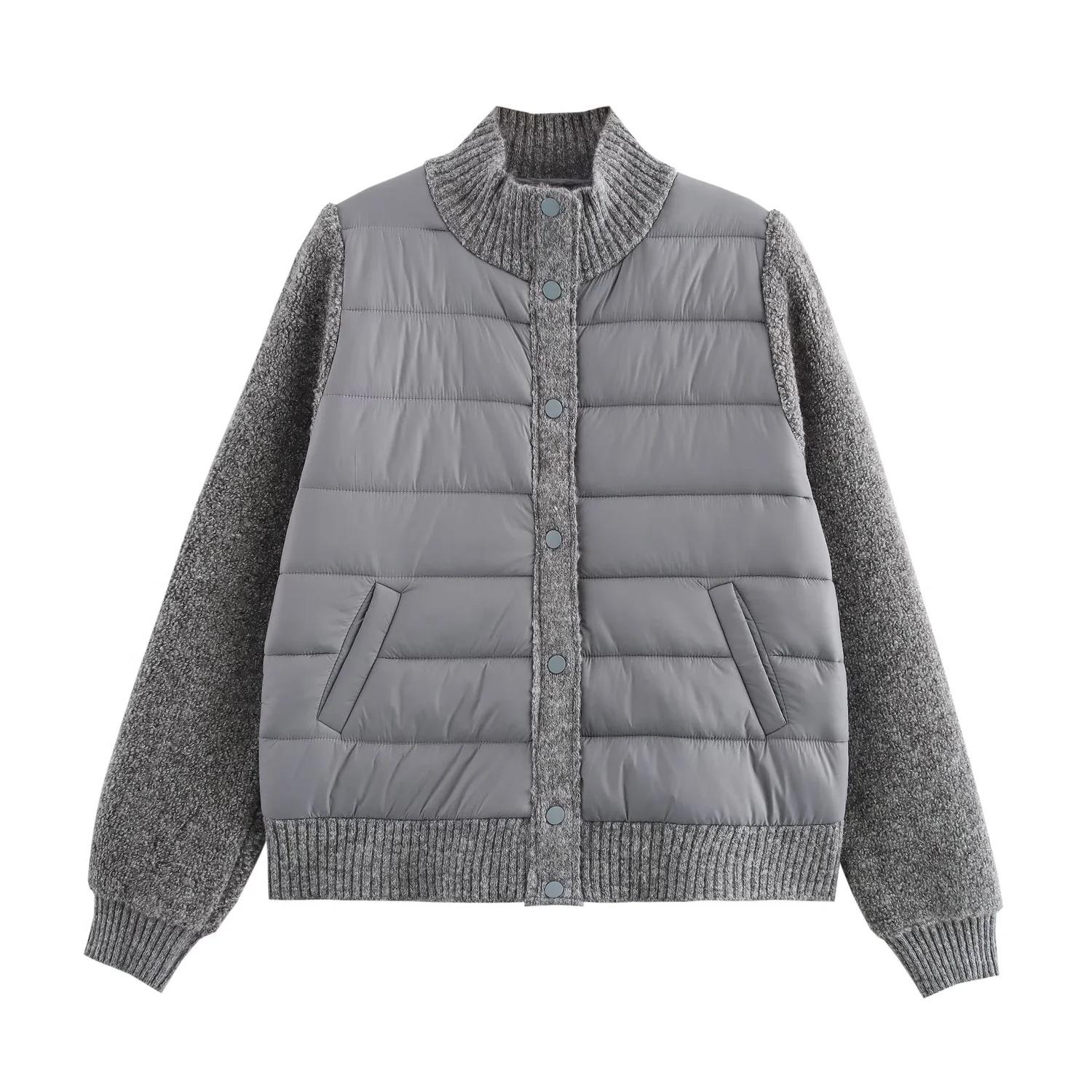 Nuevo cárdigan de manga larga de algodón con cuello alto y costuras tejidas de estilo europeo y americano transfronterizo de invierno para mujer