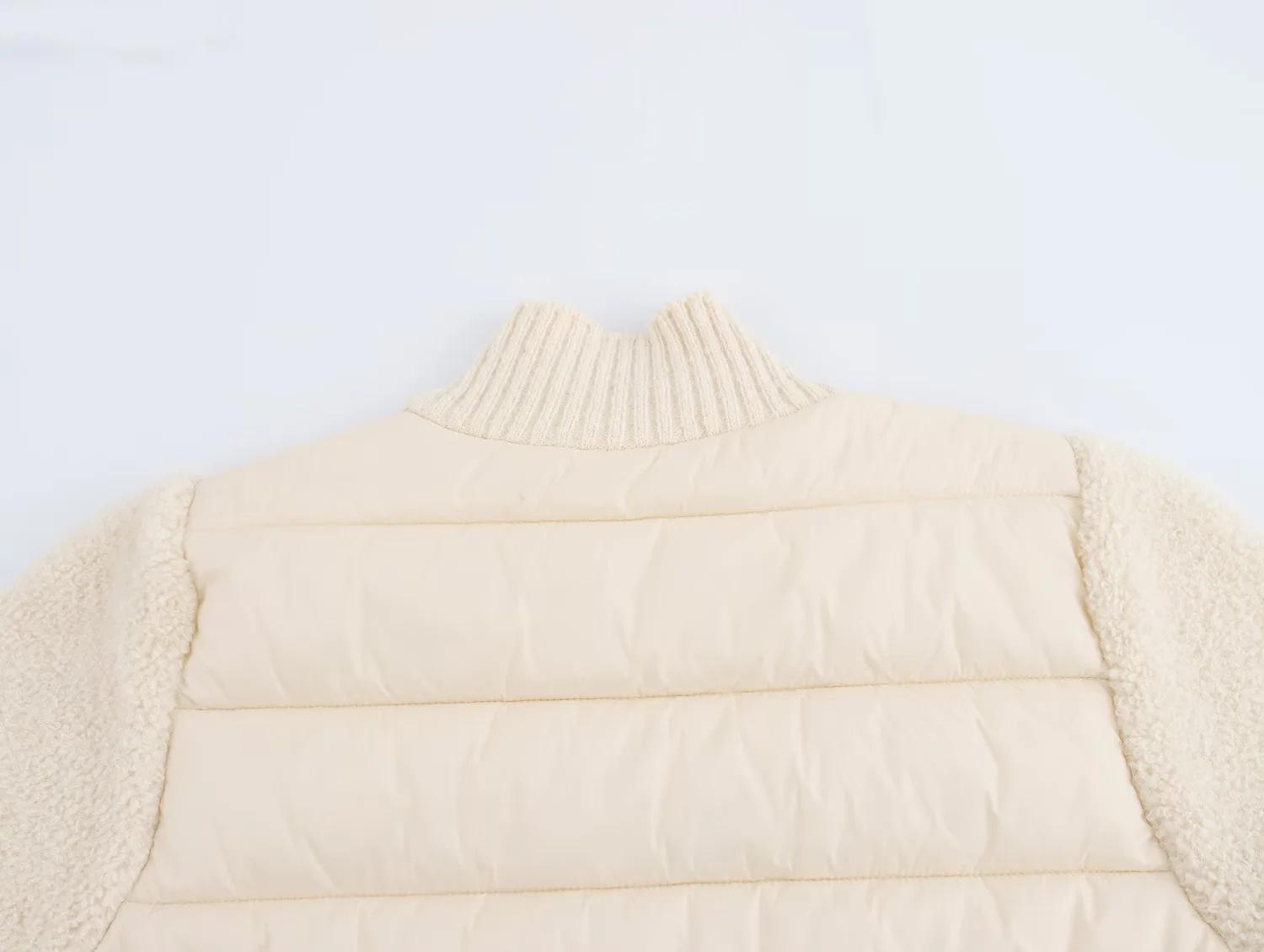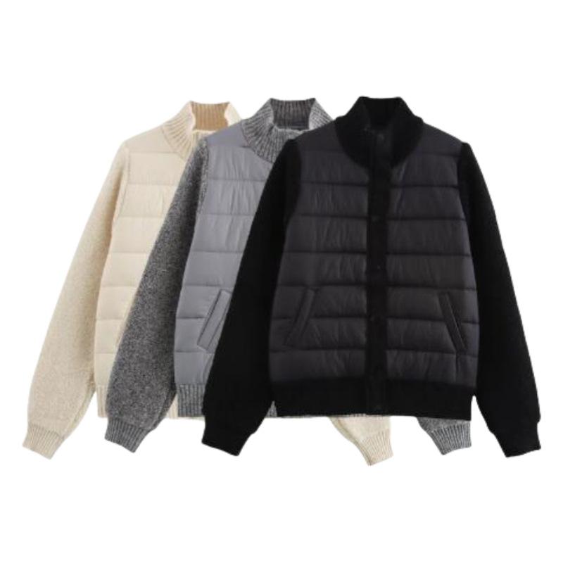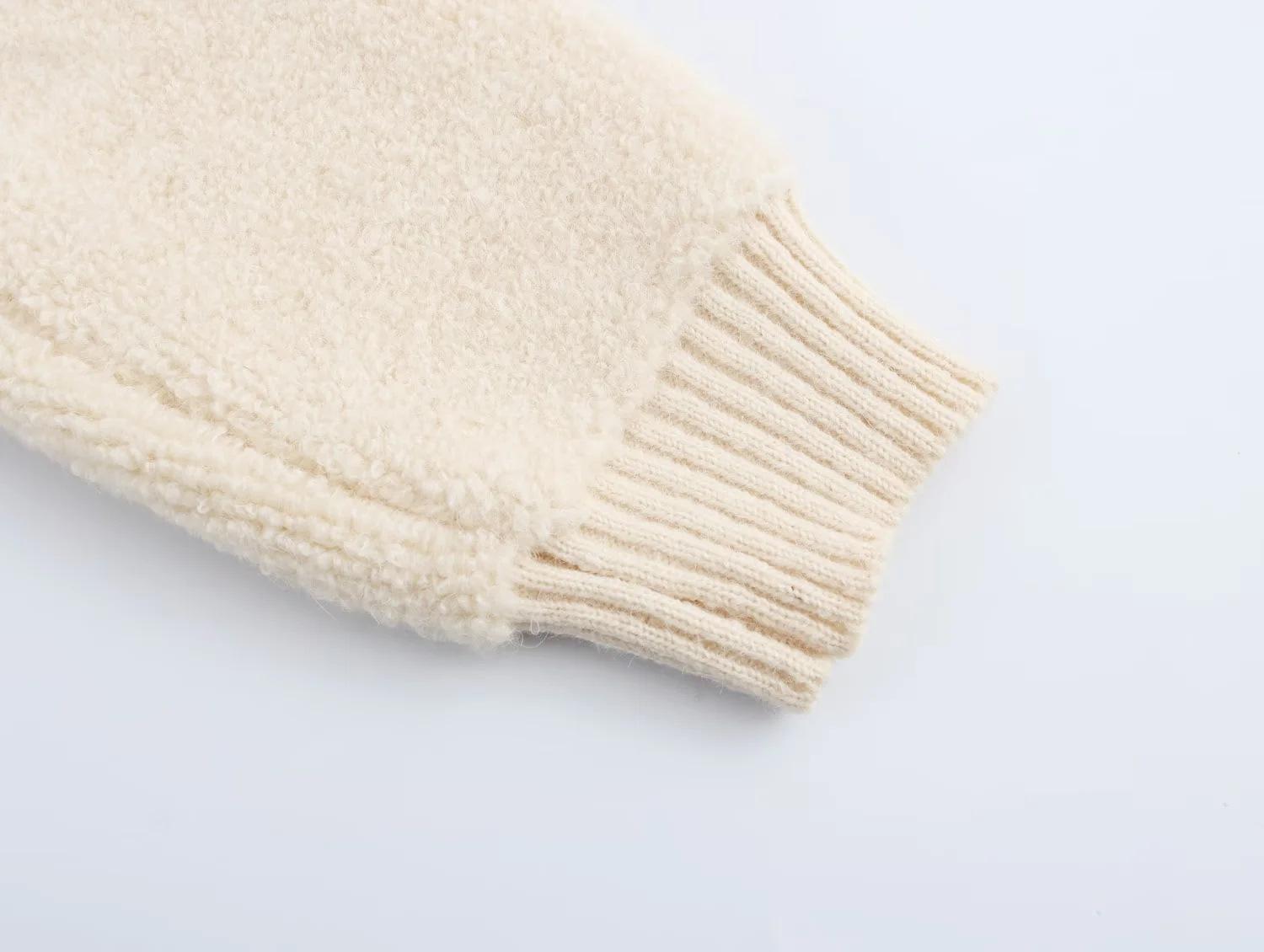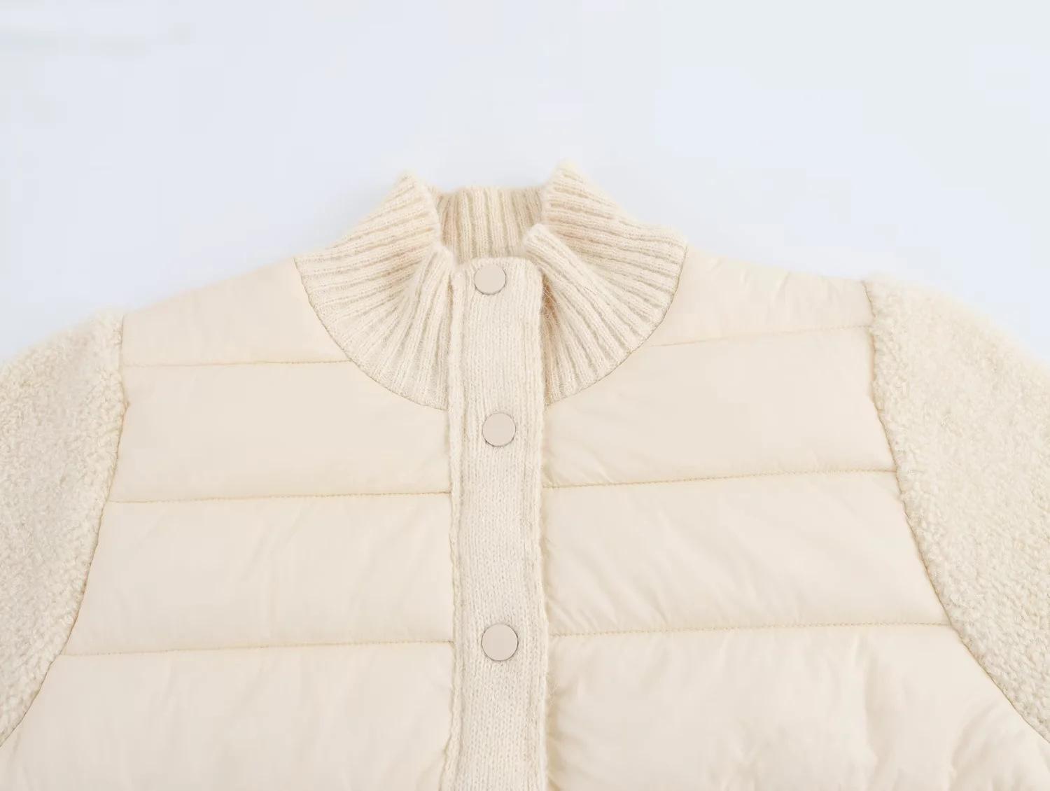 Nuevo cárdigan de manga larga de algodón con cuello alto y costuras tejidas de estilo europeo y americano transfronterizo de invierno para mujer