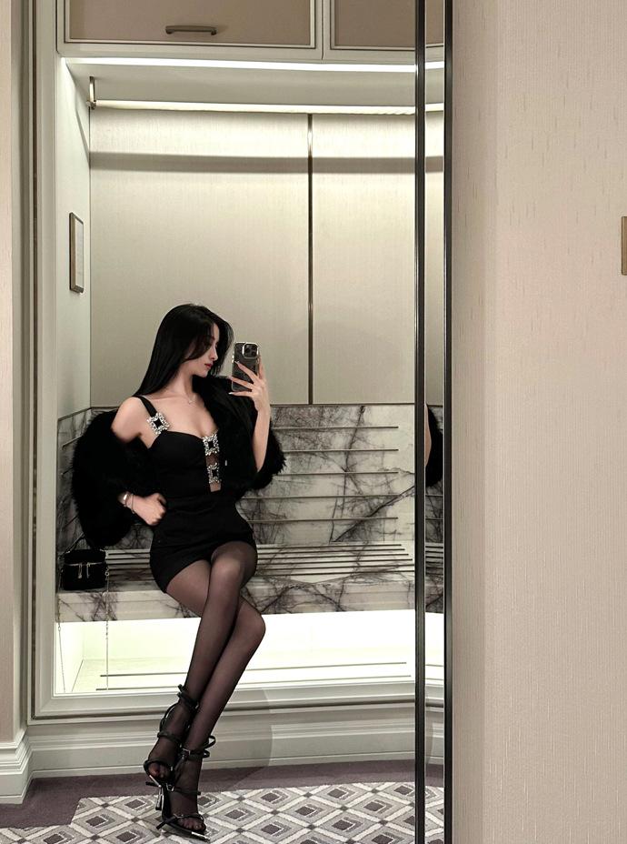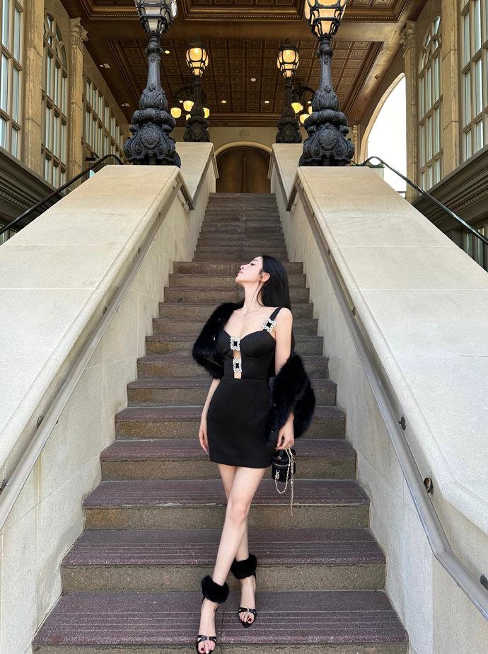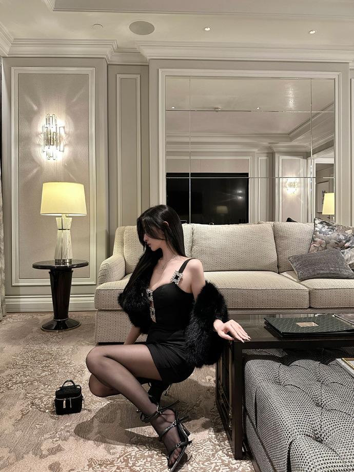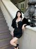 Vestido de fiesta de cumpleaños de alta gama, elegante, negro, sexy, con cintura adelgazante y falda para mujer
