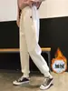 Pantalones casuales gruesos con forro polar blanco para mujer, nuevos pantalones holgados de cintura alta a la moda para otoño e invierno.