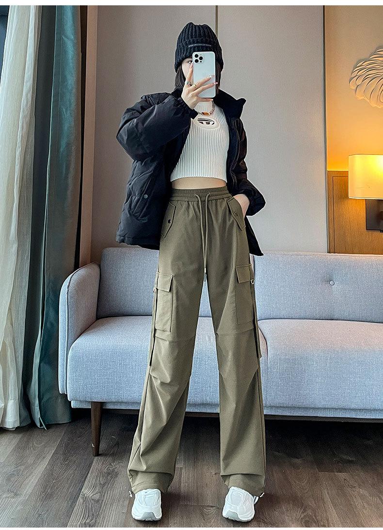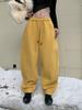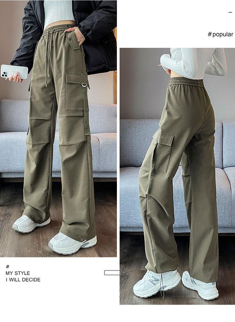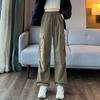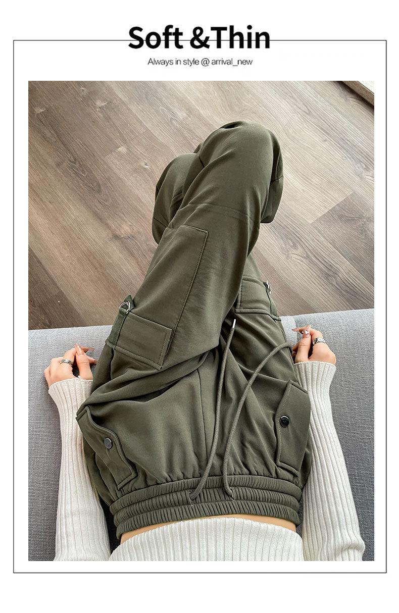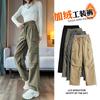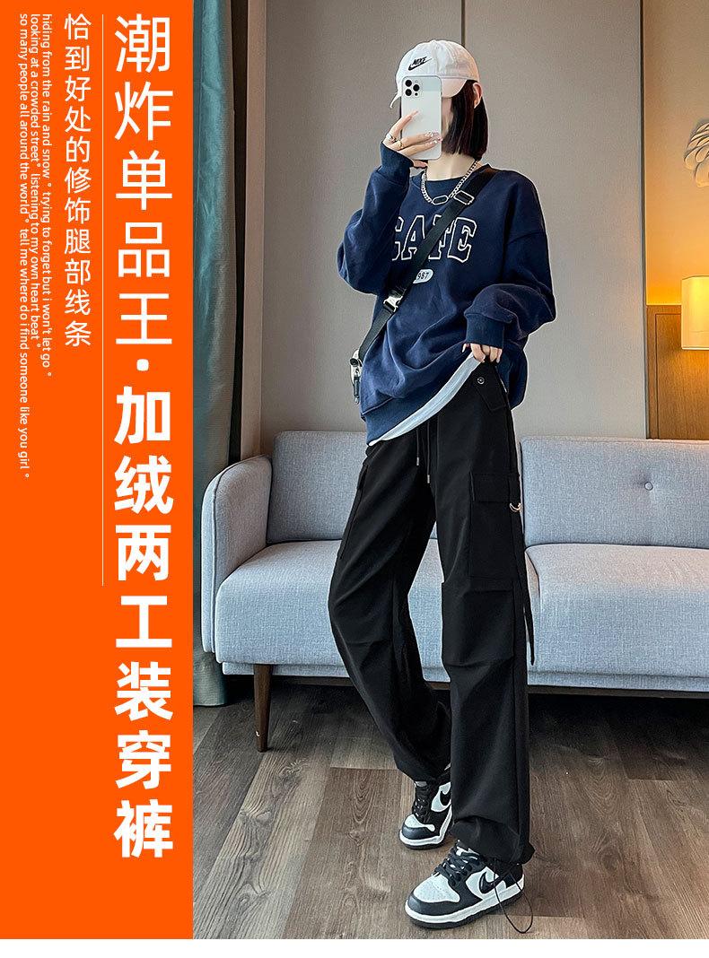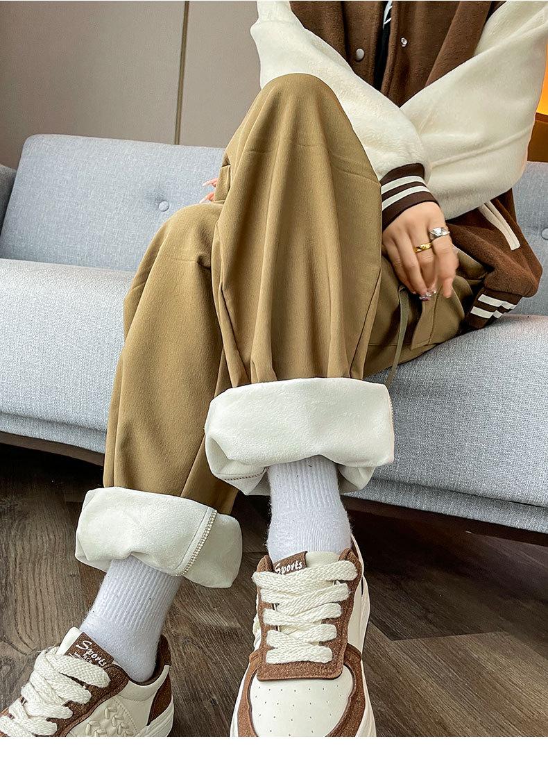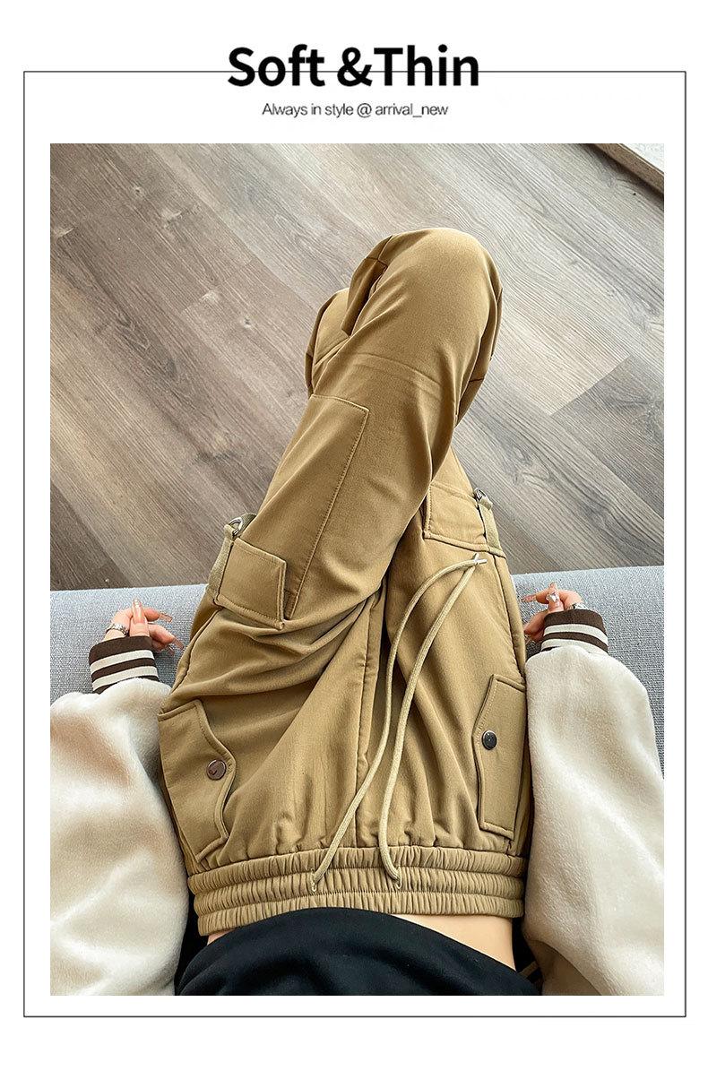 Pantalones deportivos informales de invierno para mujer, de cintura alta, adelgazantes, con múltiples bolsillos y cordón ajustable, forrados de polar, A2681