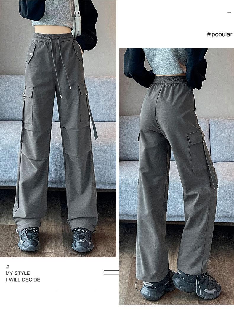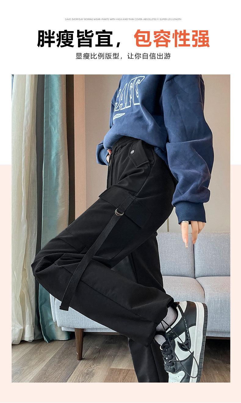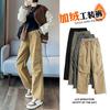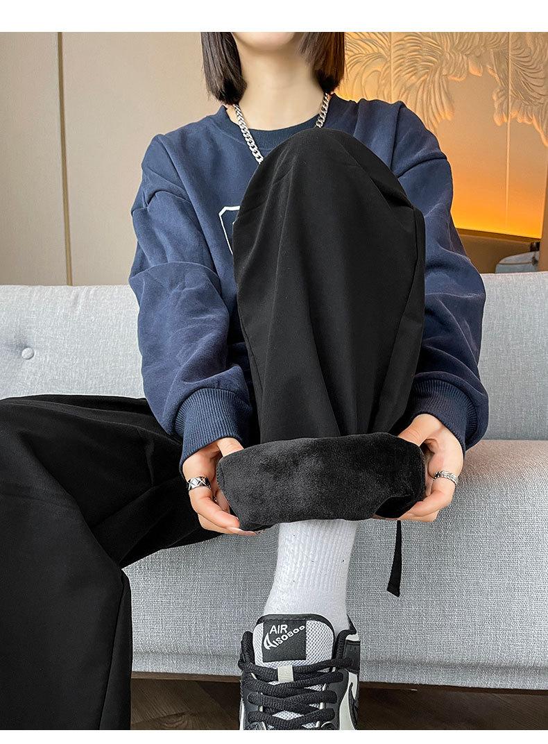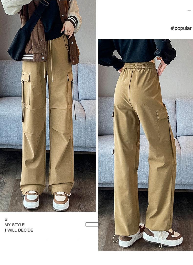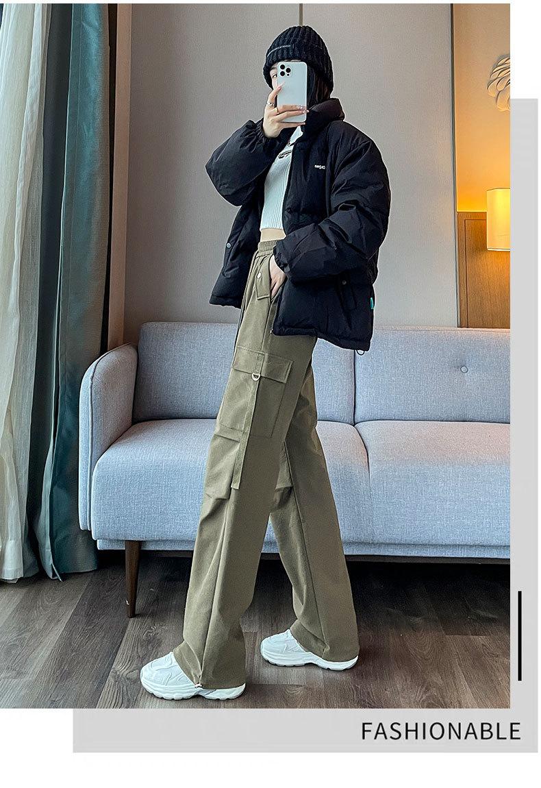 Pantalones deportivos informales de invierno para mujer, de cintura alta, adelgazantes, con múltiples bolsillos y cordón ajustable, forrados de polar, A2681