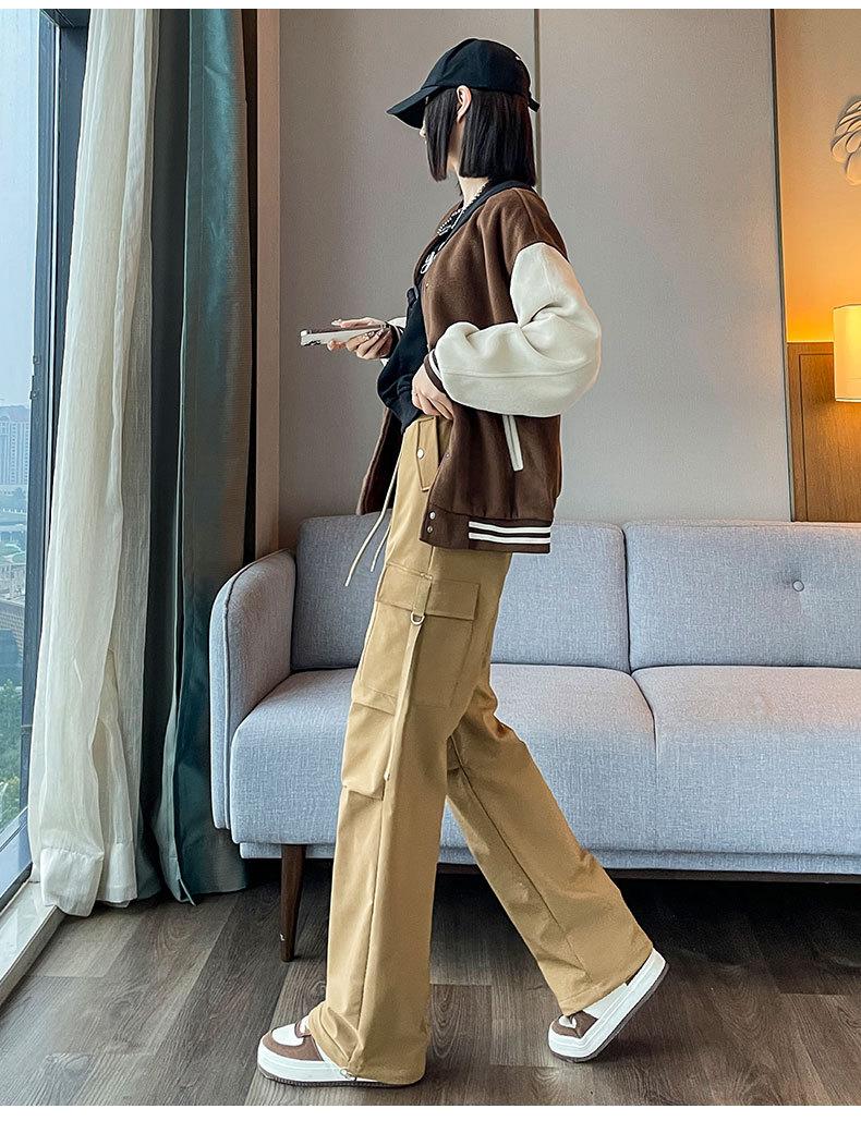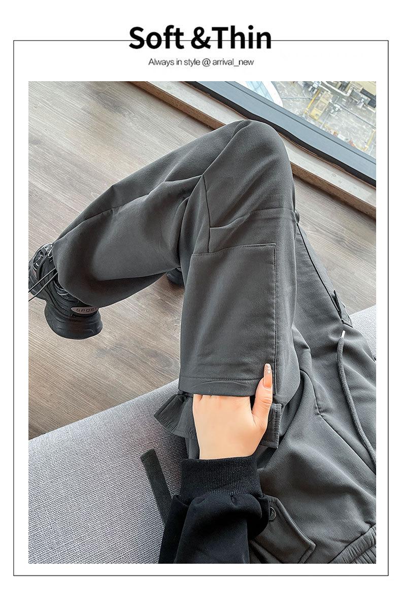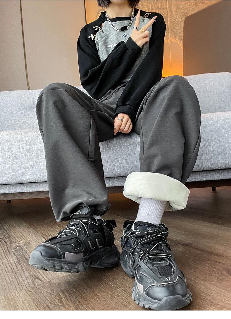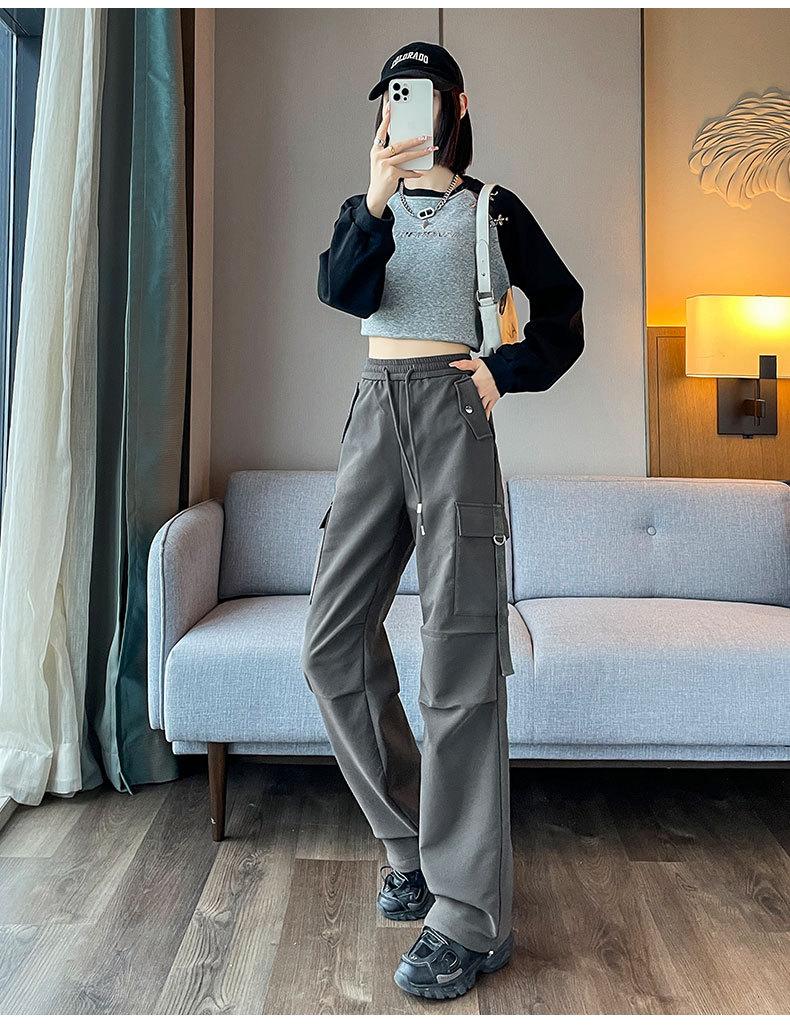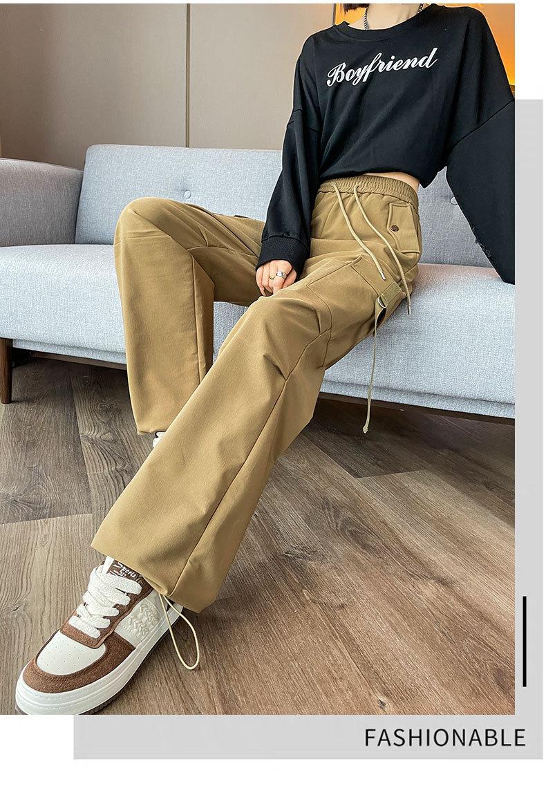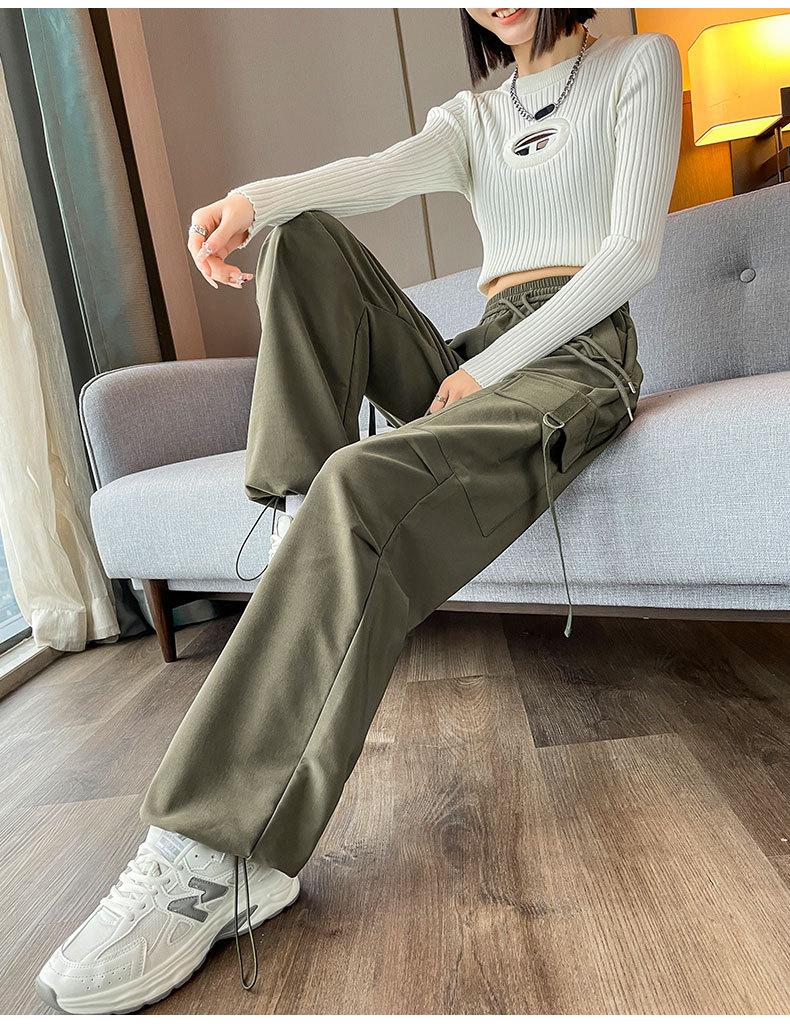 Pantalones deportivos informales de invierno para mujer, de cintura alta, adelgazantes, con múltiples bolsillos y cordón ajustable, forrados de polar, A2681
