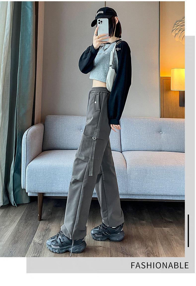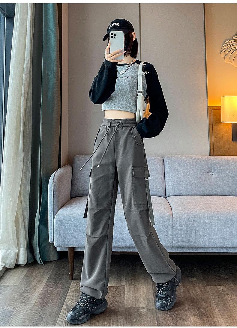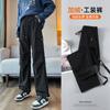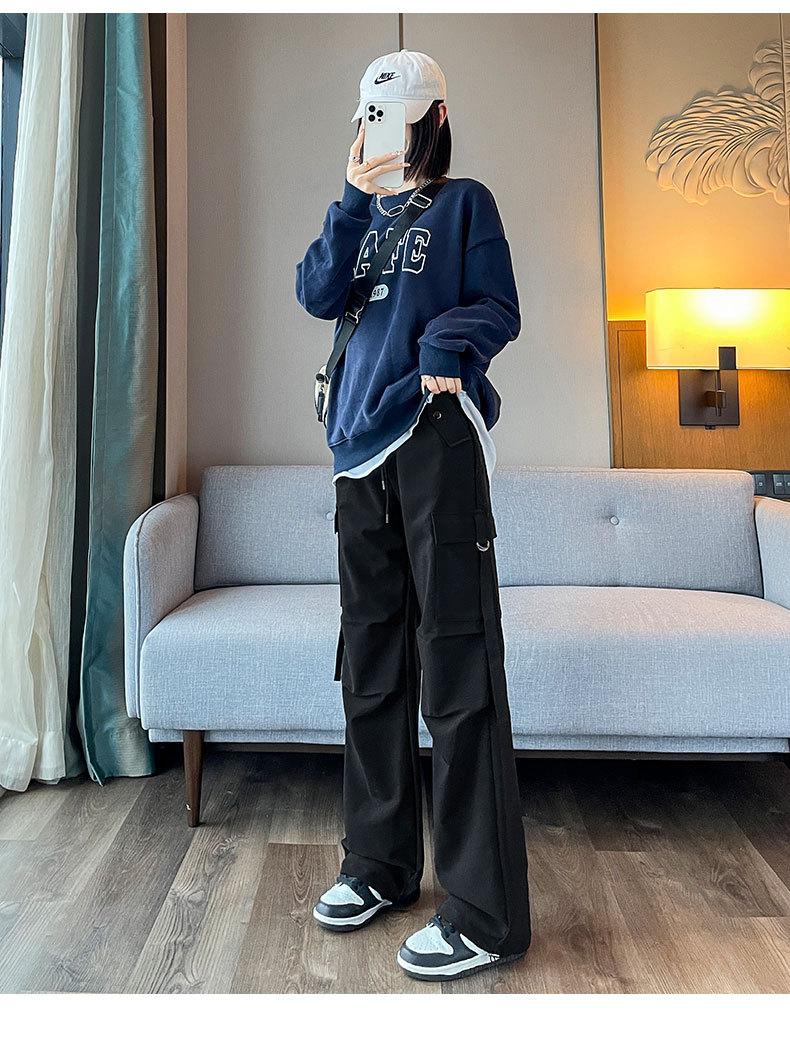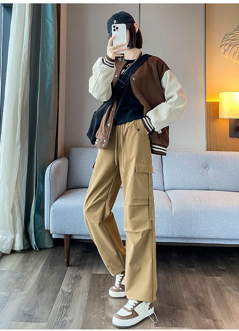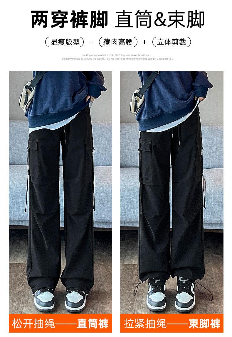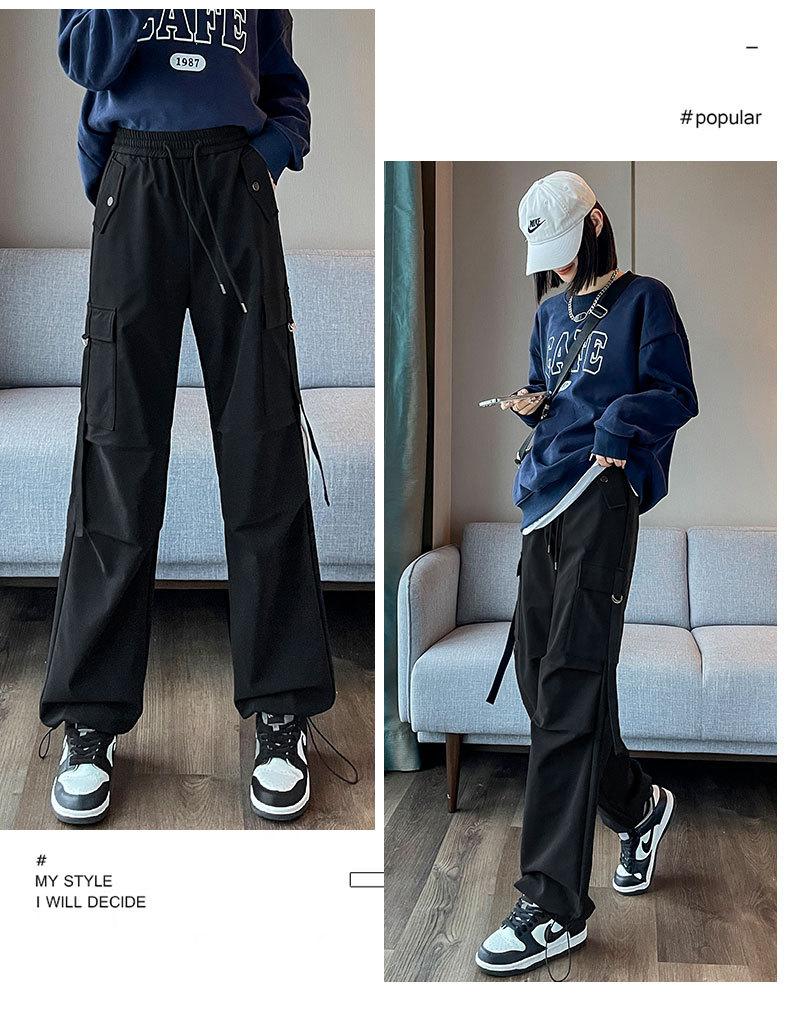 Pantalones deportivos informales de invierno para mujer, de cintura alta, adelgazantes, con múltiples bolsillos y cordón ajustable, forrados de polar, A2681