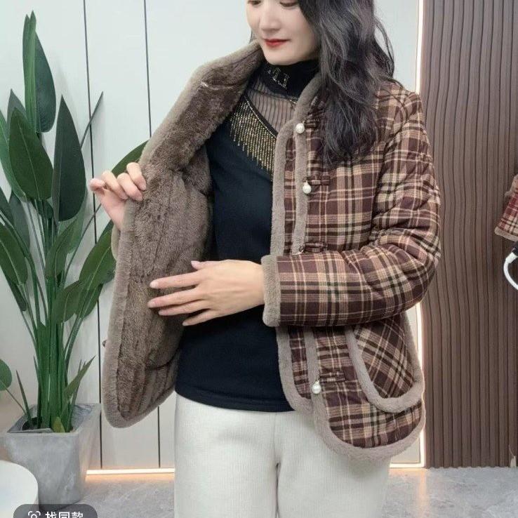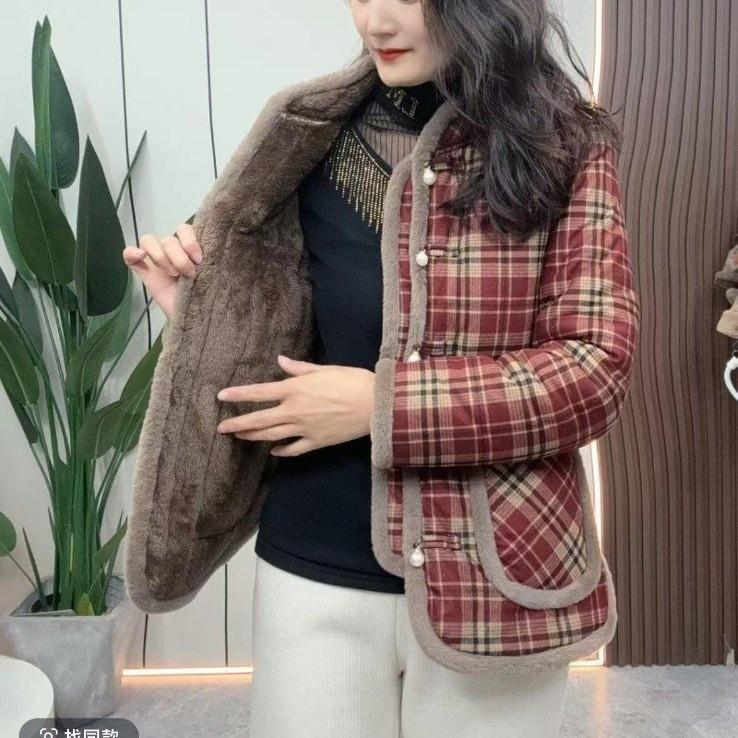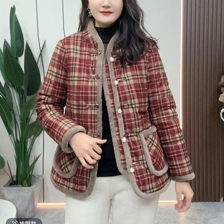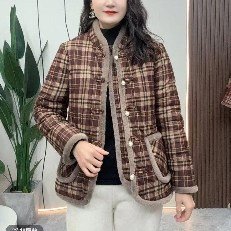 Una generación de nueva chaqueta de invierno acolchada de algodón para mujer, temperamento de moda, a cuadros, acolchada, abrigo cálido, abrigo comodín para mujer, comercio exterior