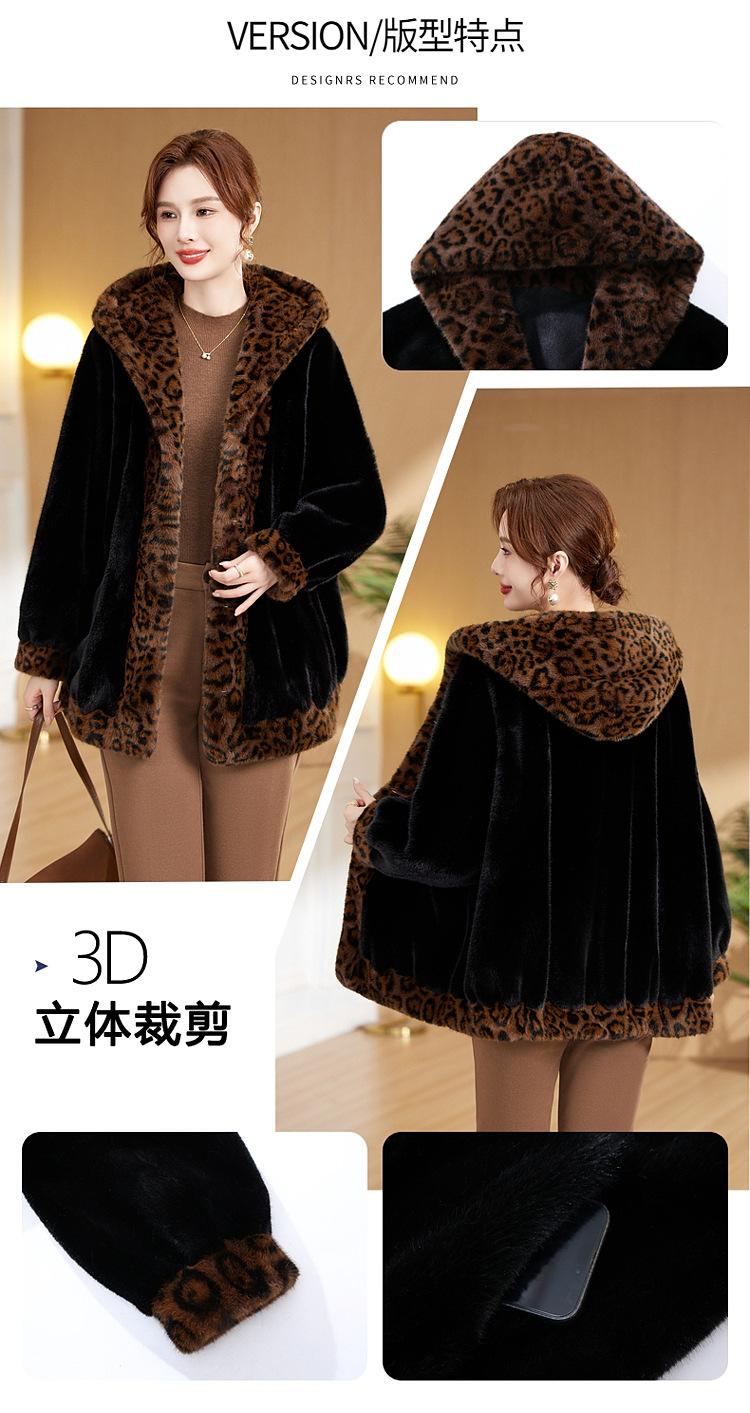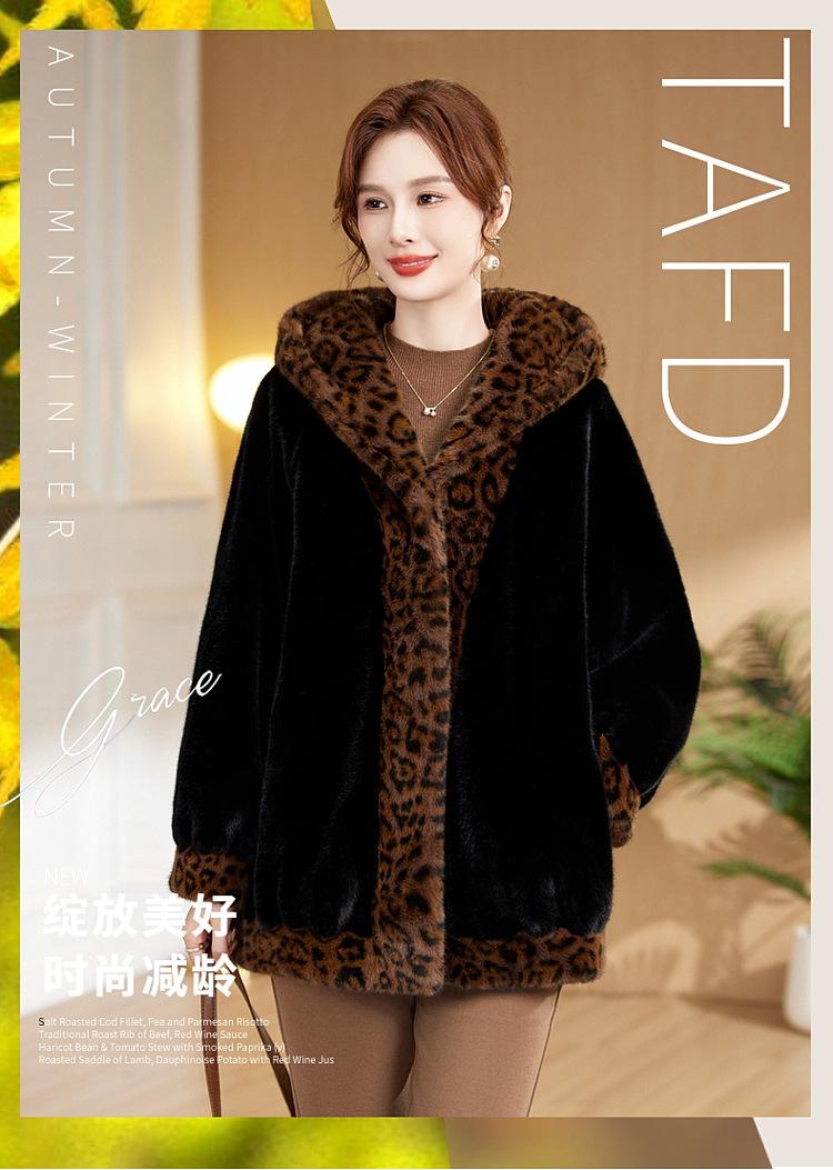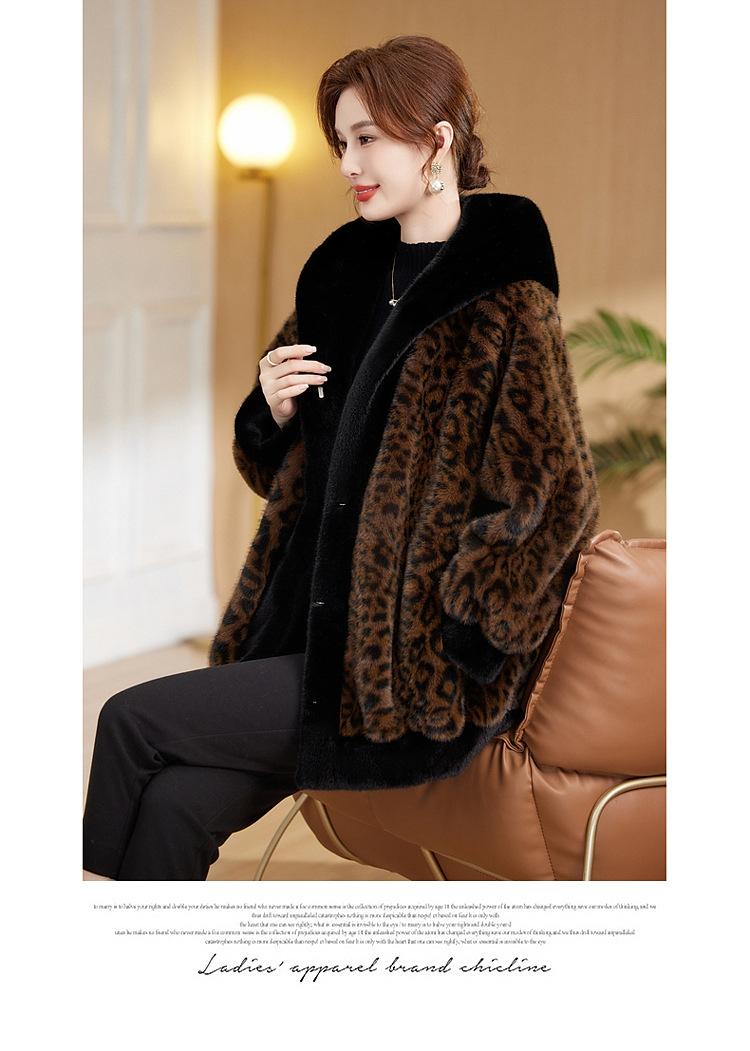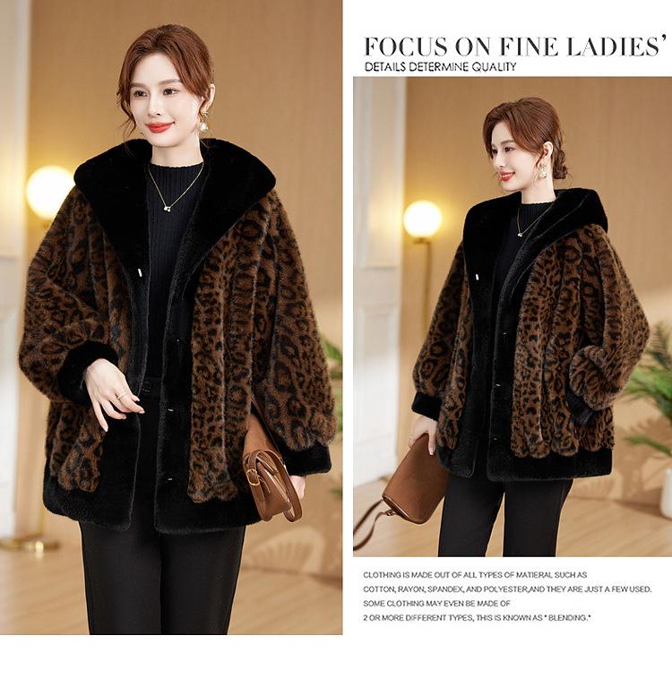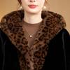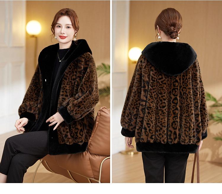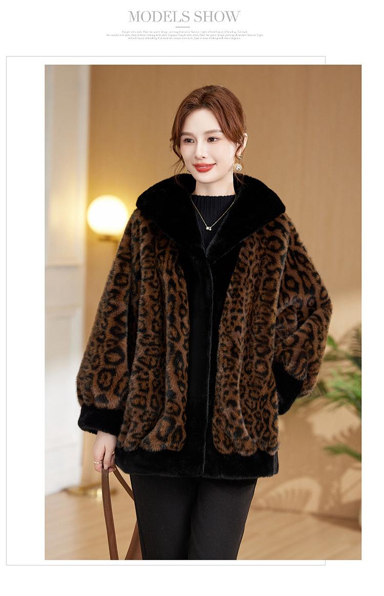 Abrigo de piel elegante para madre, suelto y adelgazante, con estampado de leopardo, de imitación de terciopelo de visón, otoño e invierno de 2024