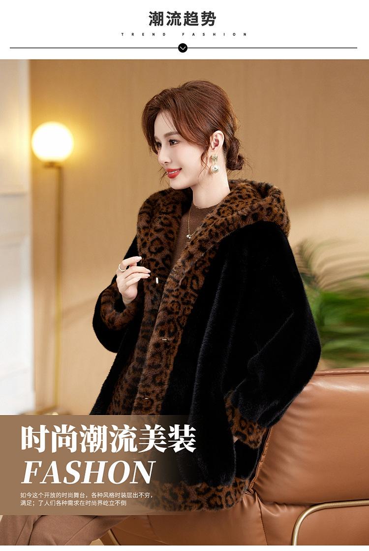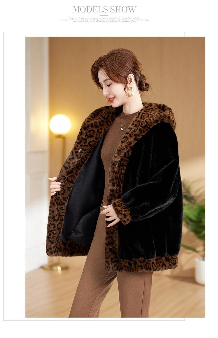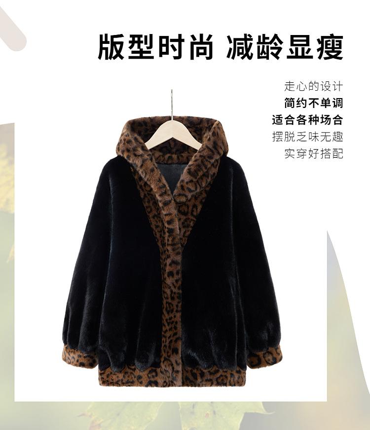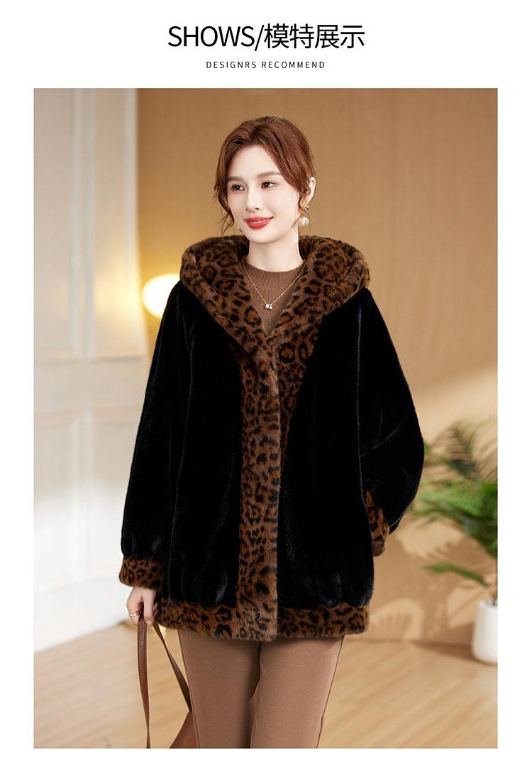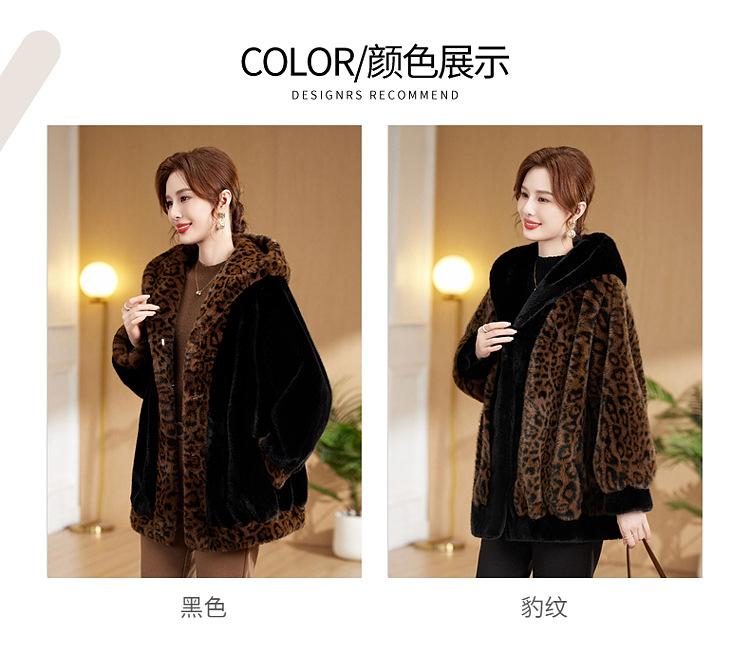 Abrigo de piel elegante para madre, suelto y adelgazante, con estampado de leopardo, de imitación de terciopelo de visón, otoño e invierno de 2024