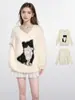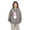 Suéter tejido con capucha gris para mujer, otoño e invierno, ropa exterior, diseño avanzado holgado, suéter suave y ceroso, grueso