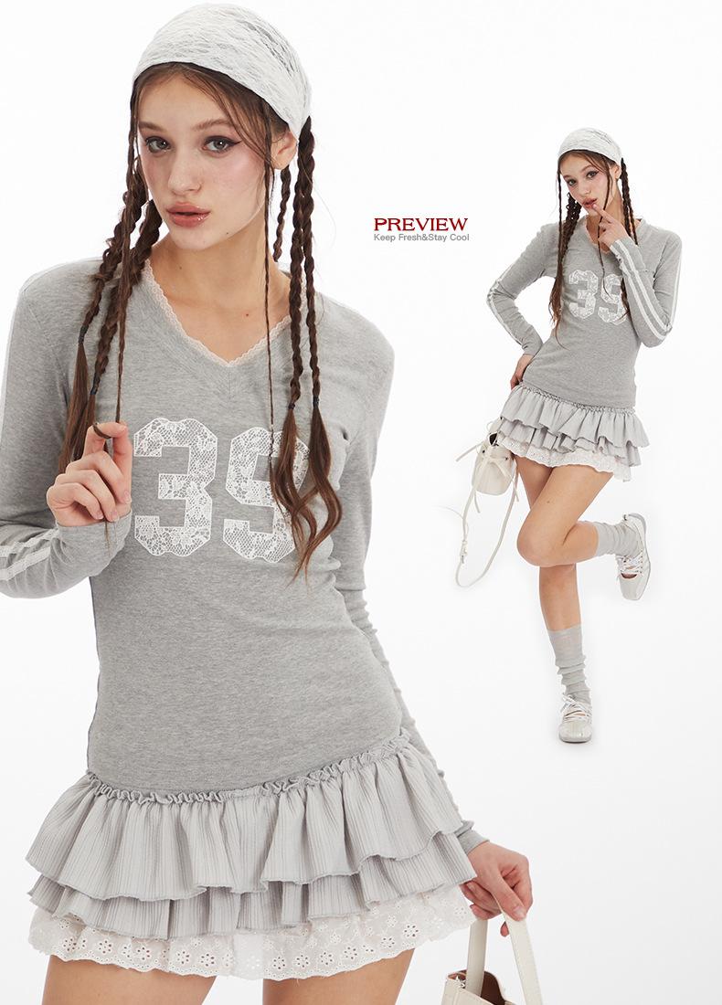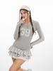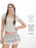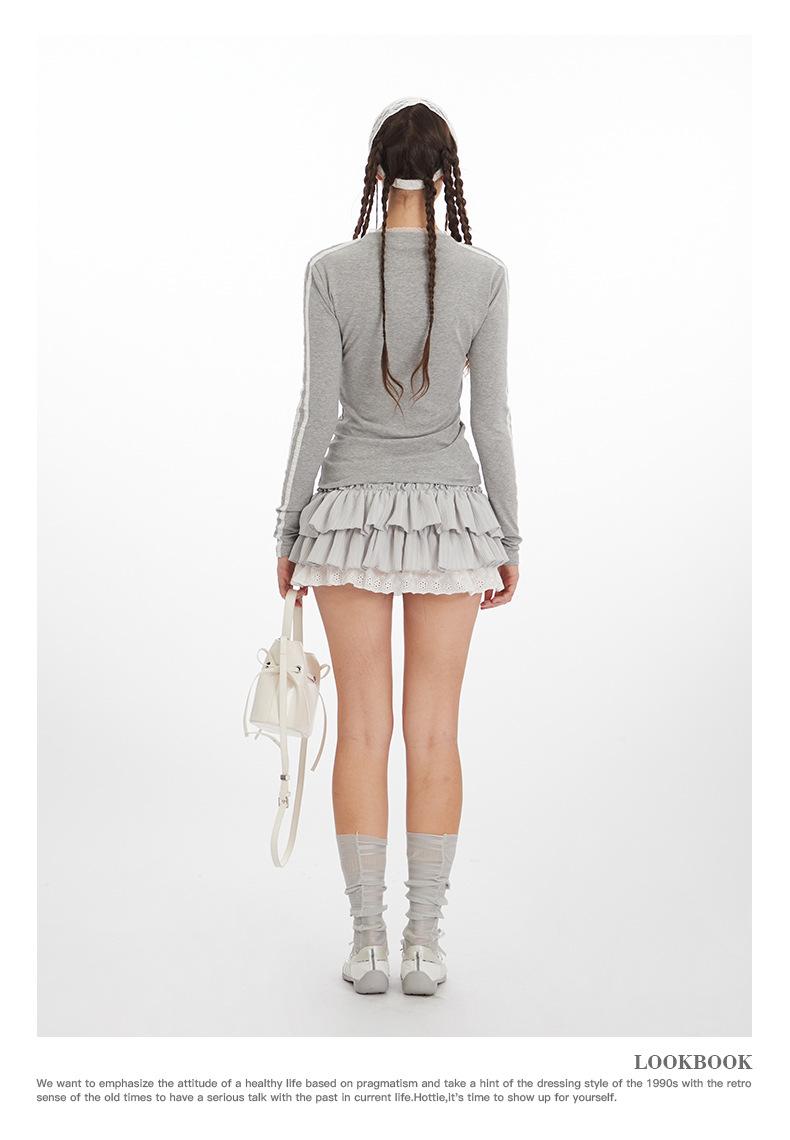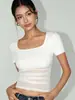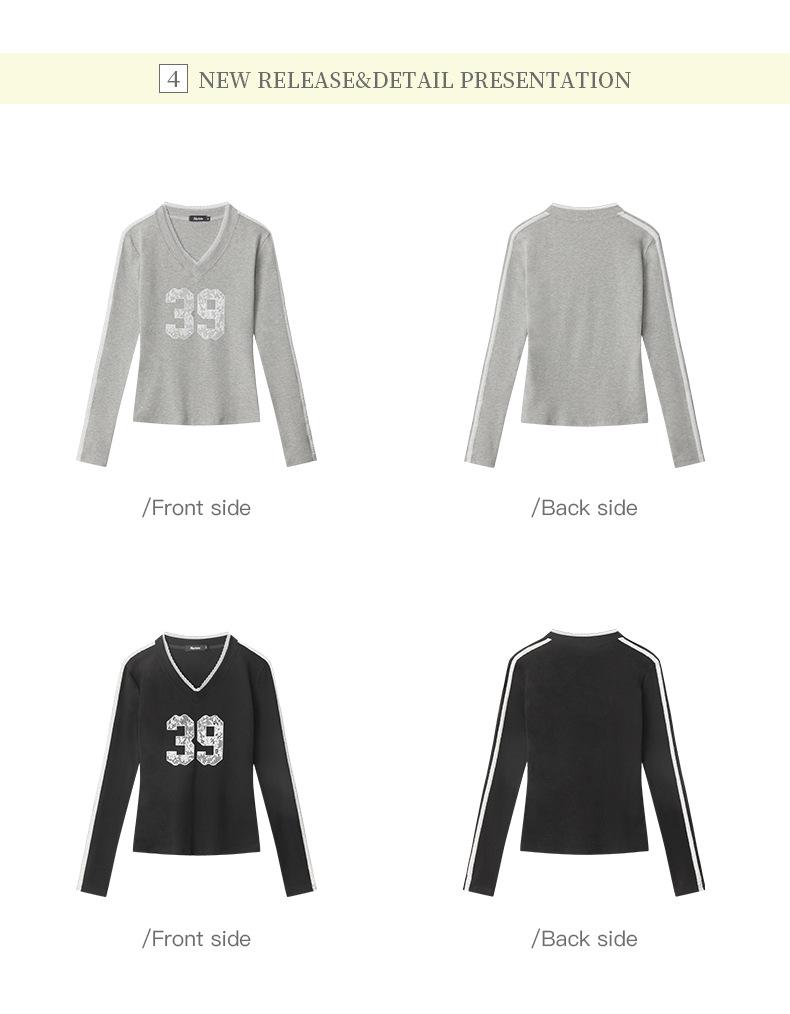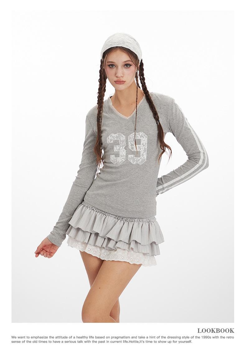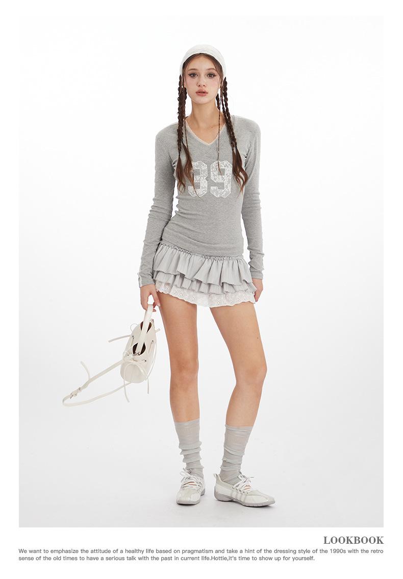 HeyHenry 2025 - Camiseta ajustada de manga corta y larga con cuello en V y diseño de costura de encaje europeo y americano para chica sexy