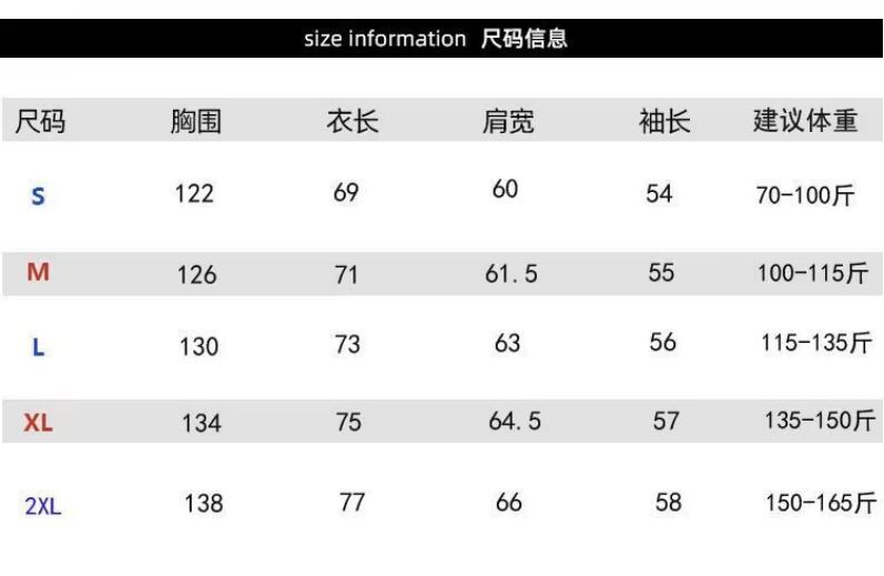 S, M, L, XL, XXL