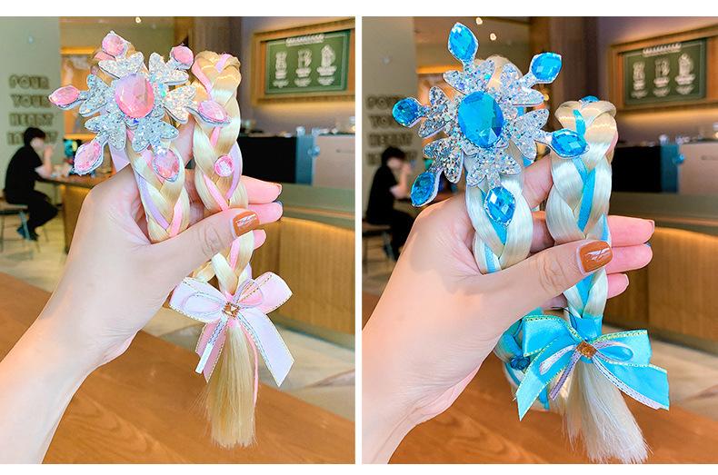 Princesa Elsa congelada diadema tocado niña bebé peluca trenza larga Lazo de princesa accesorios para el cabello