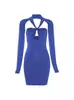 2024Ins Nuevo Diseño Transfronterizo Europeo y Americano Vestido Sexy sin Espalda de Manga Larga con Halter y Tirantes para Sexys