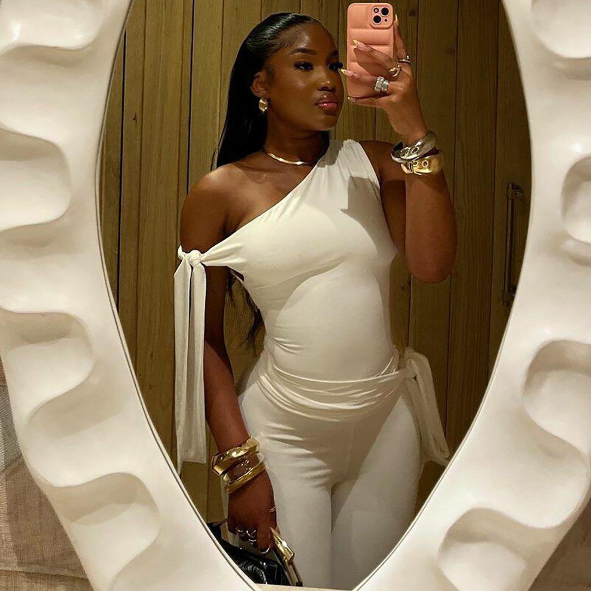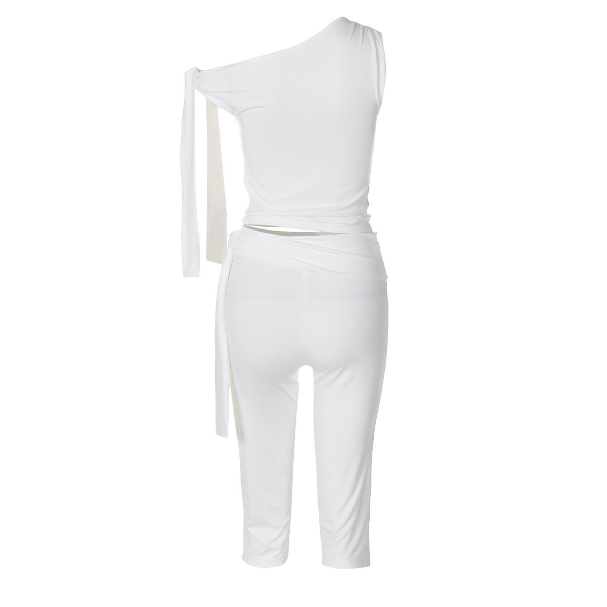 Top sin mangas de nueva moda 2024 con cuello inclinado, venta al por mayor europea y americana, pantalones cortos ajustados de calle para mujer, traje de encaje de verano
