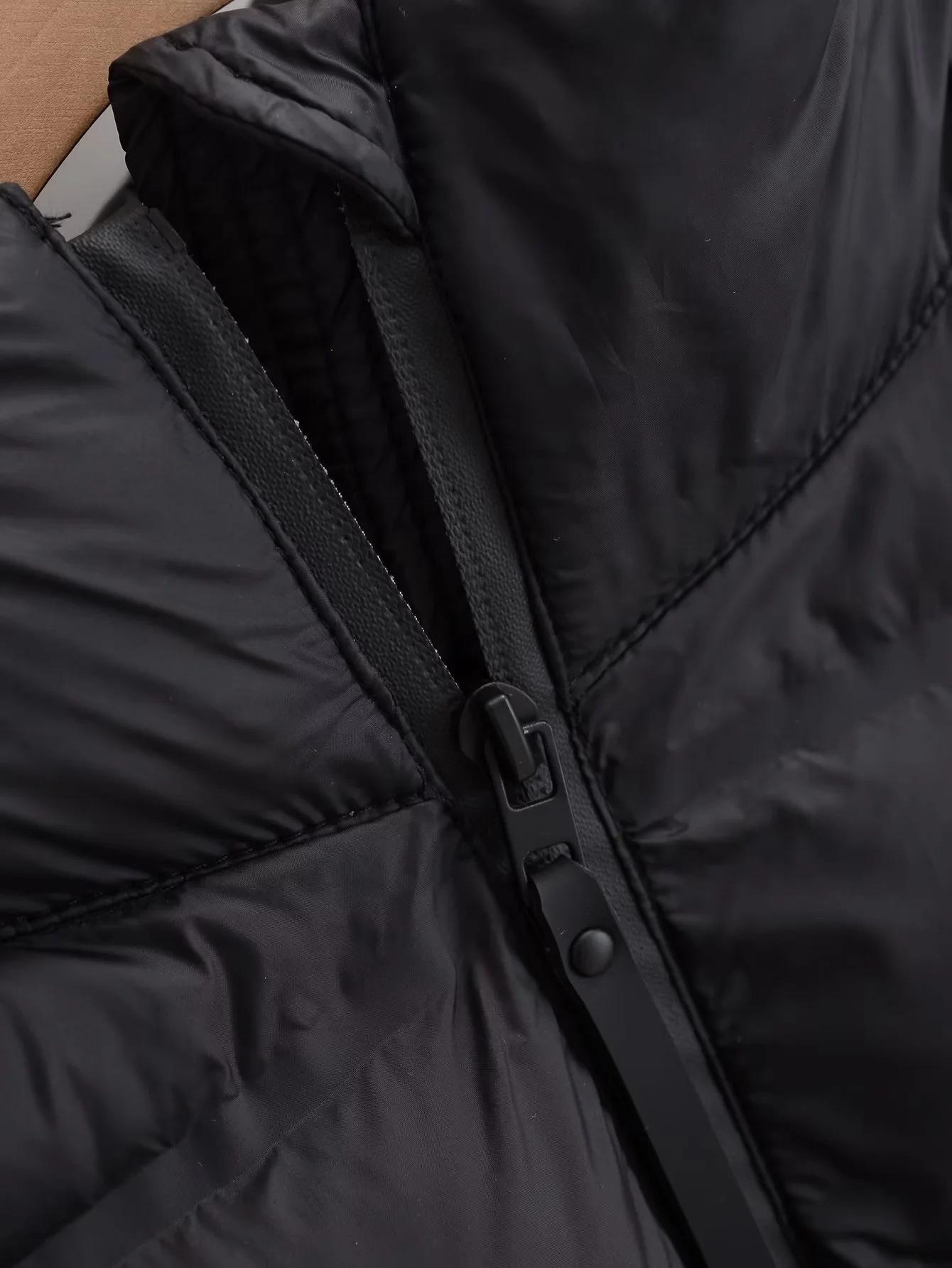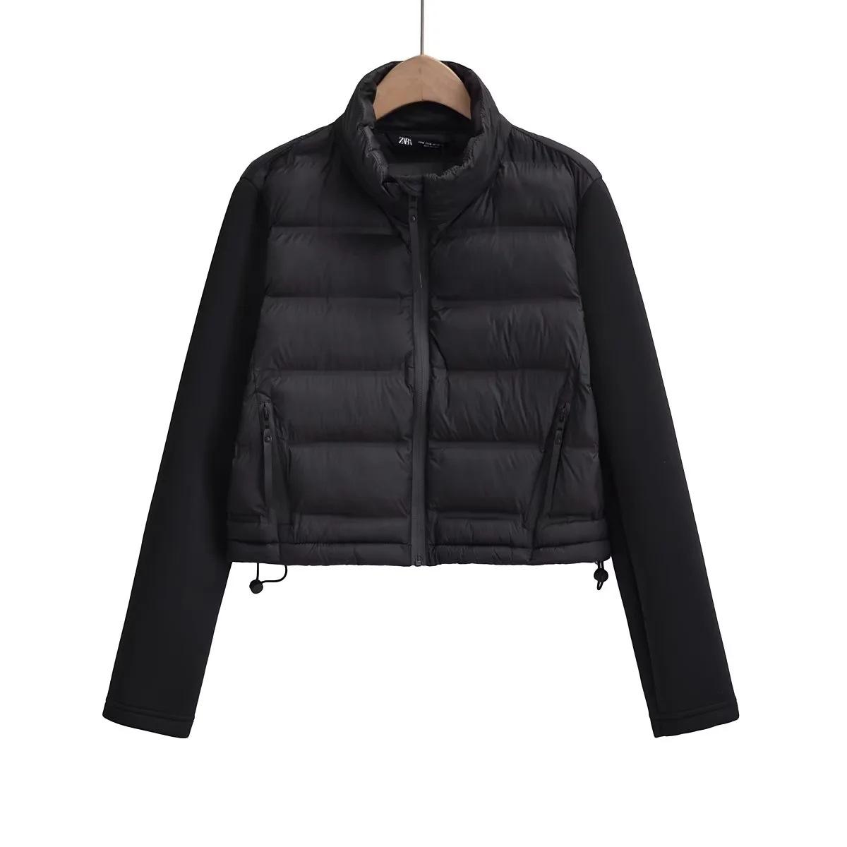 Ropa de Mujer de Comercio Exterior Transfronterizo Europeo y Americano Moda Europea y Americana Negro Casual Empalmado Versátil Adelgazante Chaqueta de Algodón