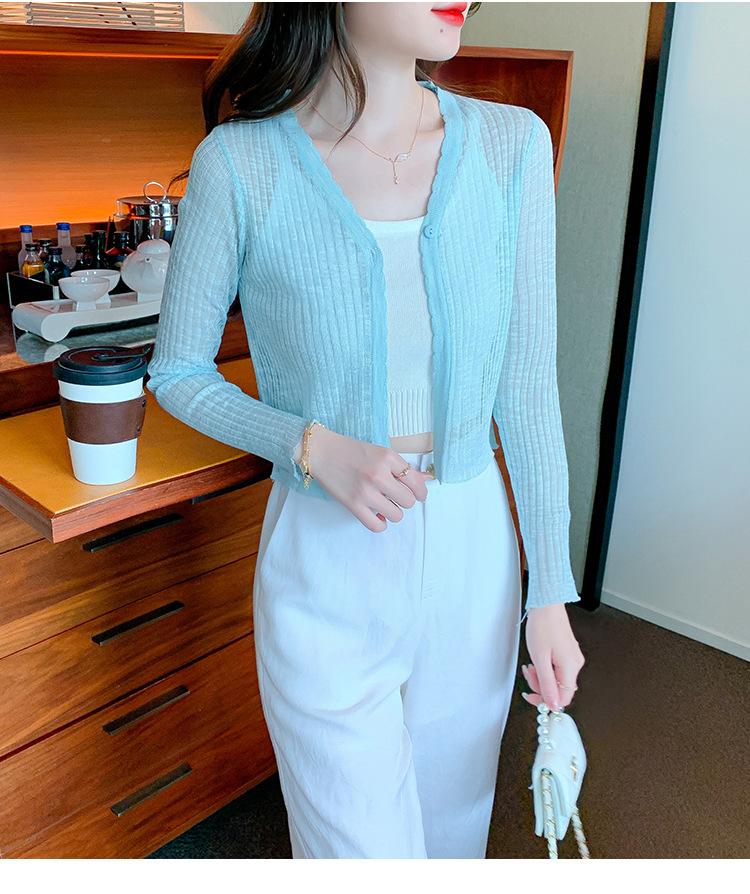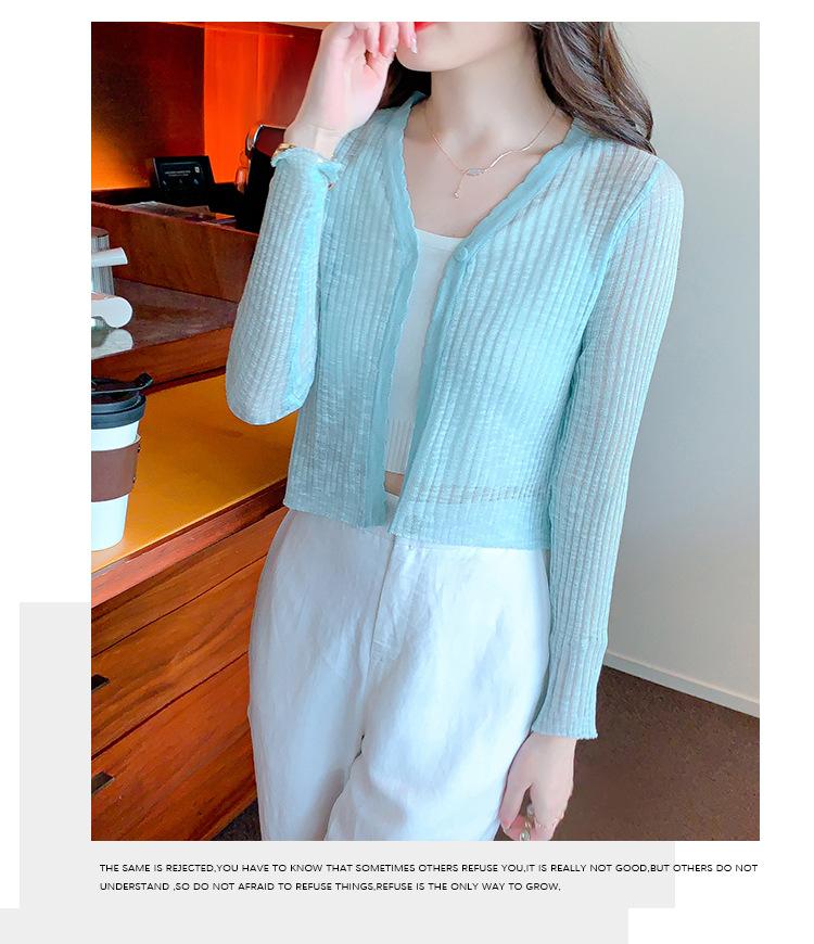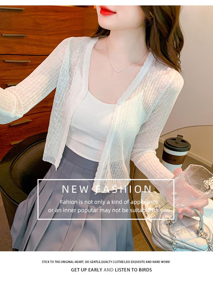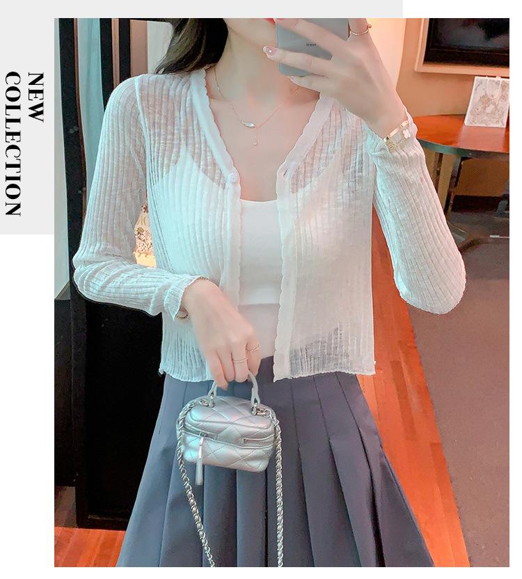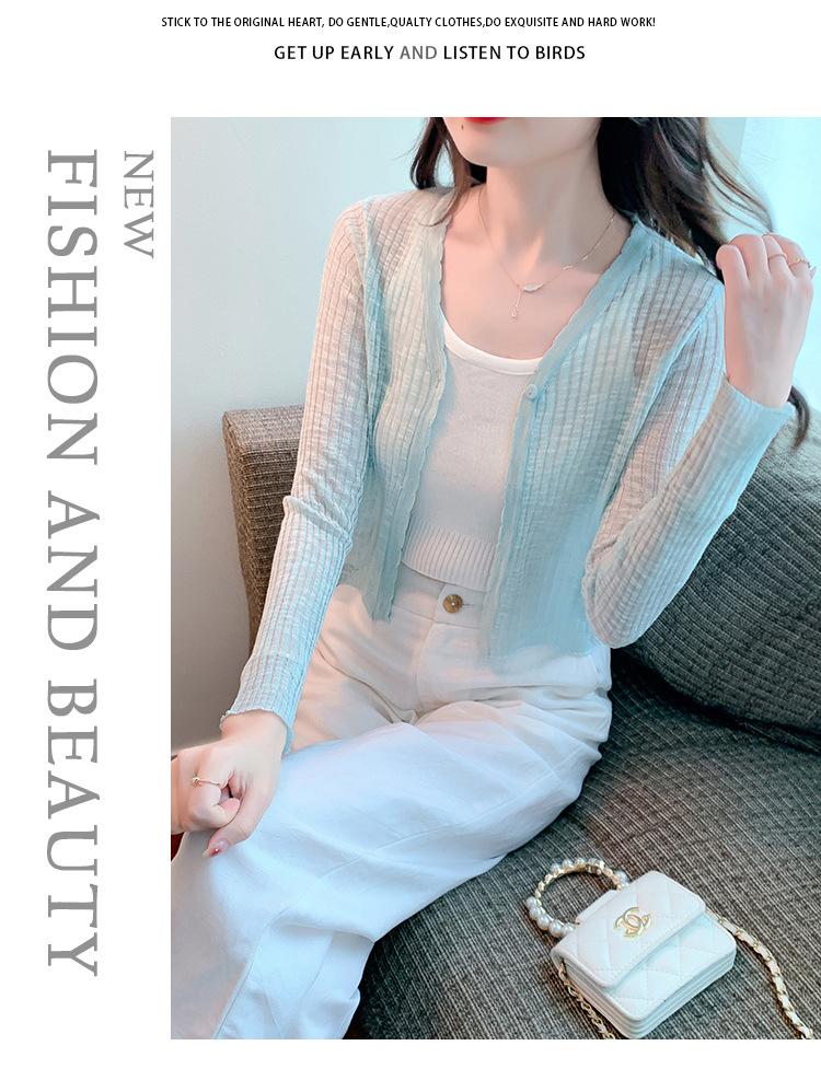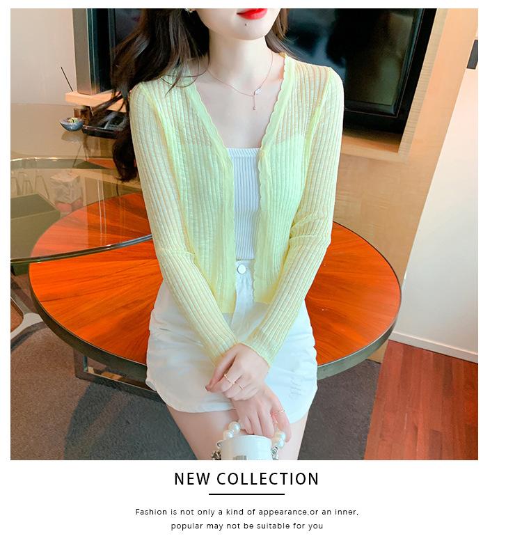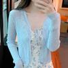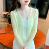 Cárdigan Delgado de Punto de Manga Larga con Cuello en V y Color Puro Estilo Coreano Nuevo de Primavera y Verano 2025 para Protección Solar