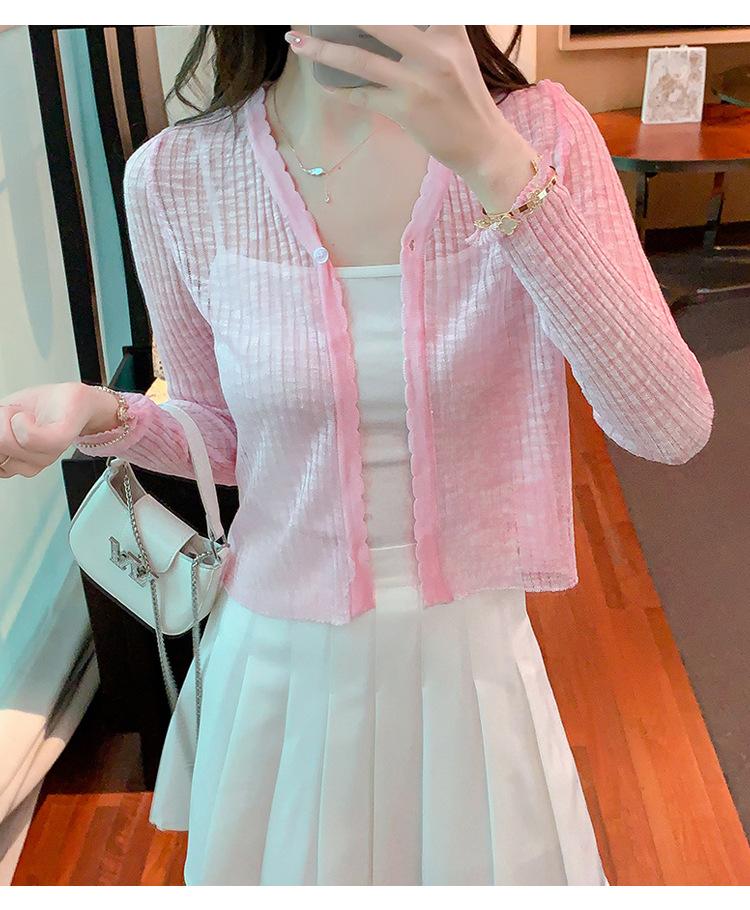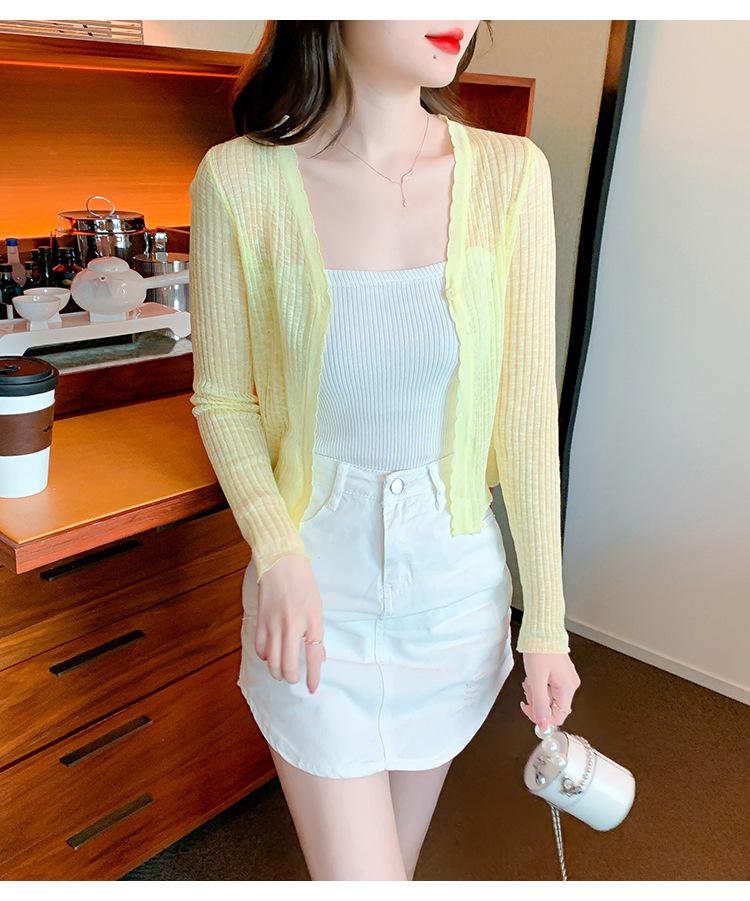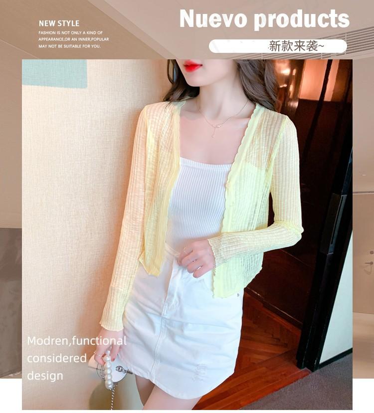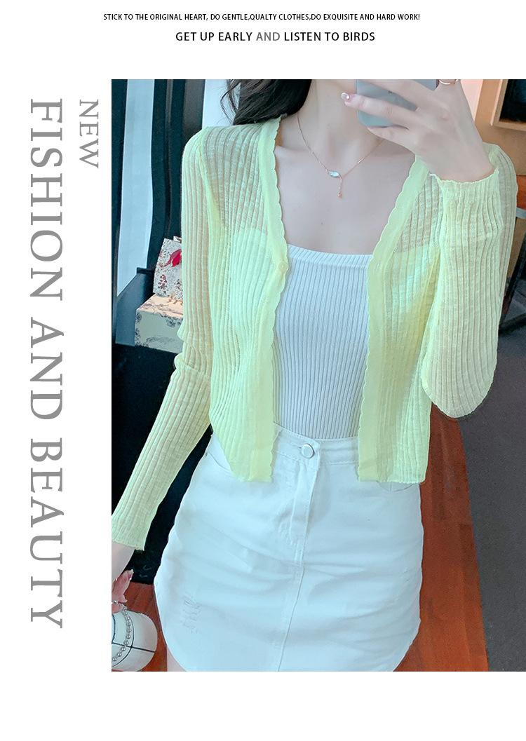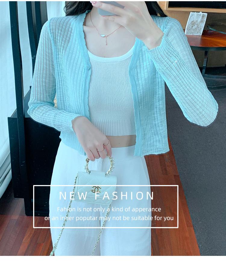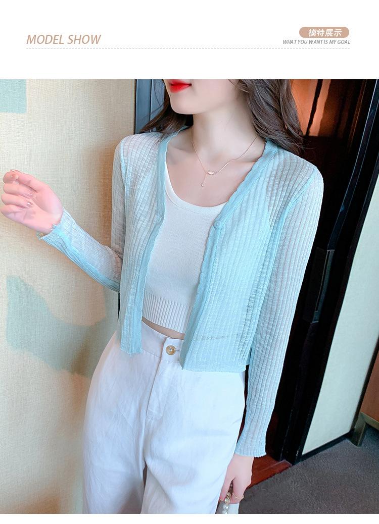 Cárdigan Delgado de Punto de Manga Larga con Cuello en V y Color Puro Estilo Coreano Nuevo de Primavera y Verano 2025 para Protección Solar