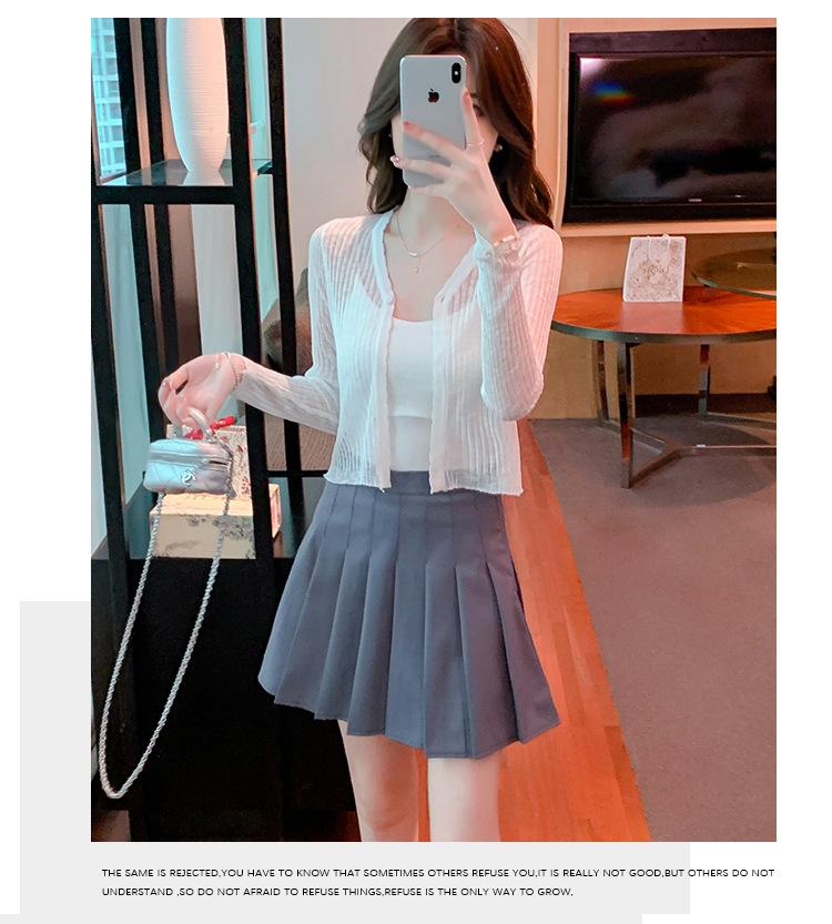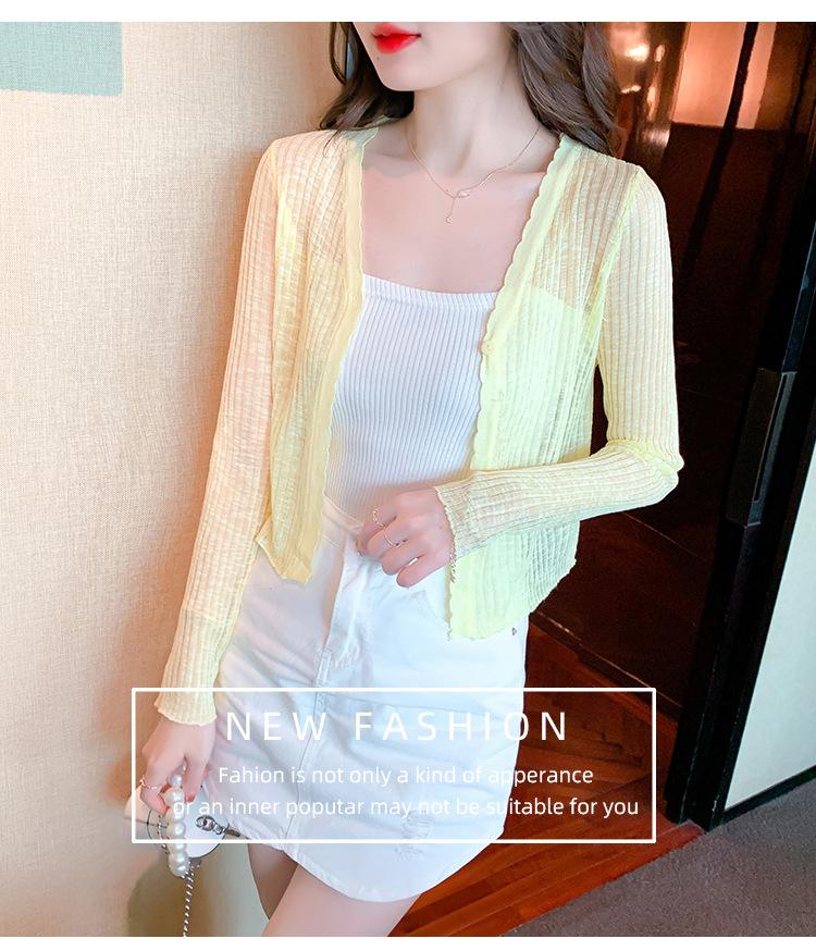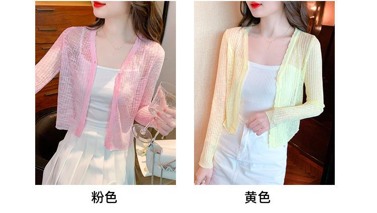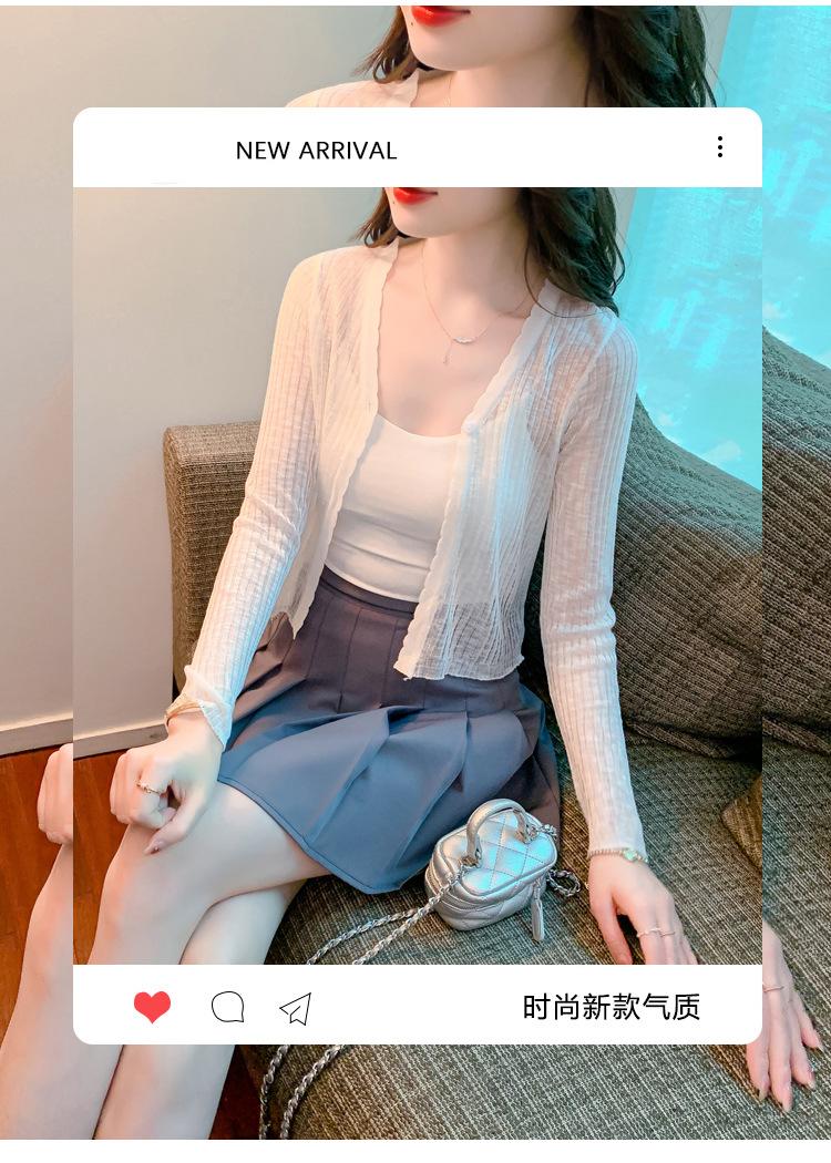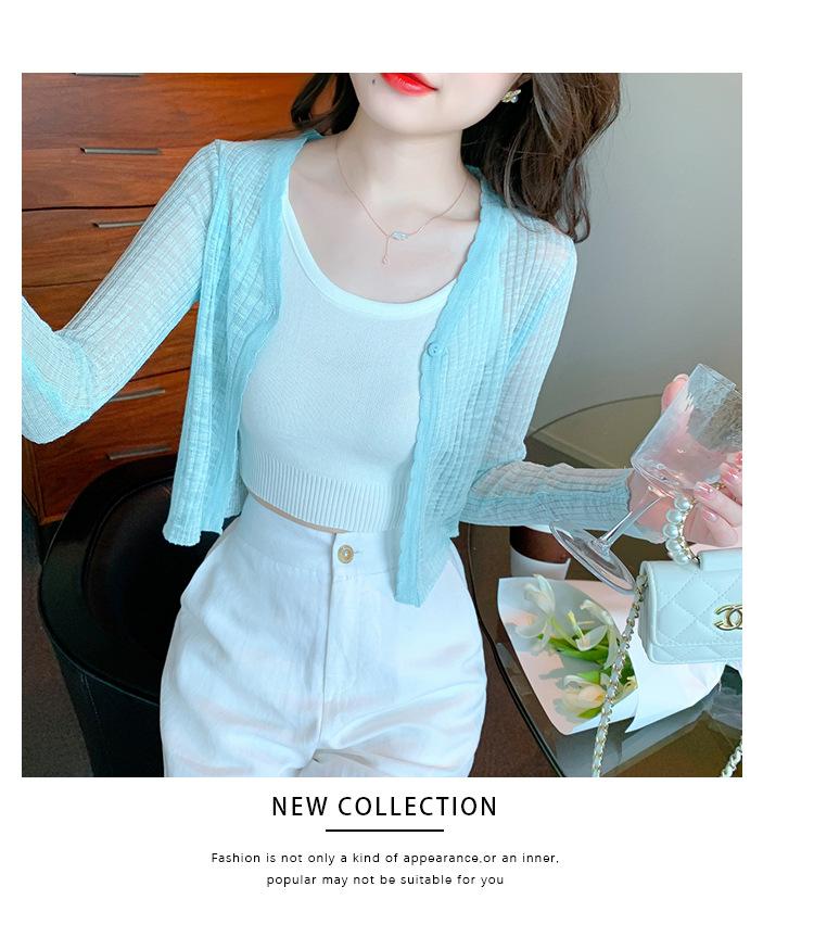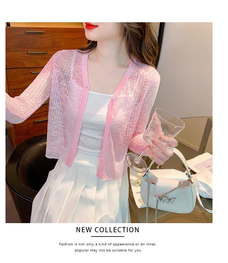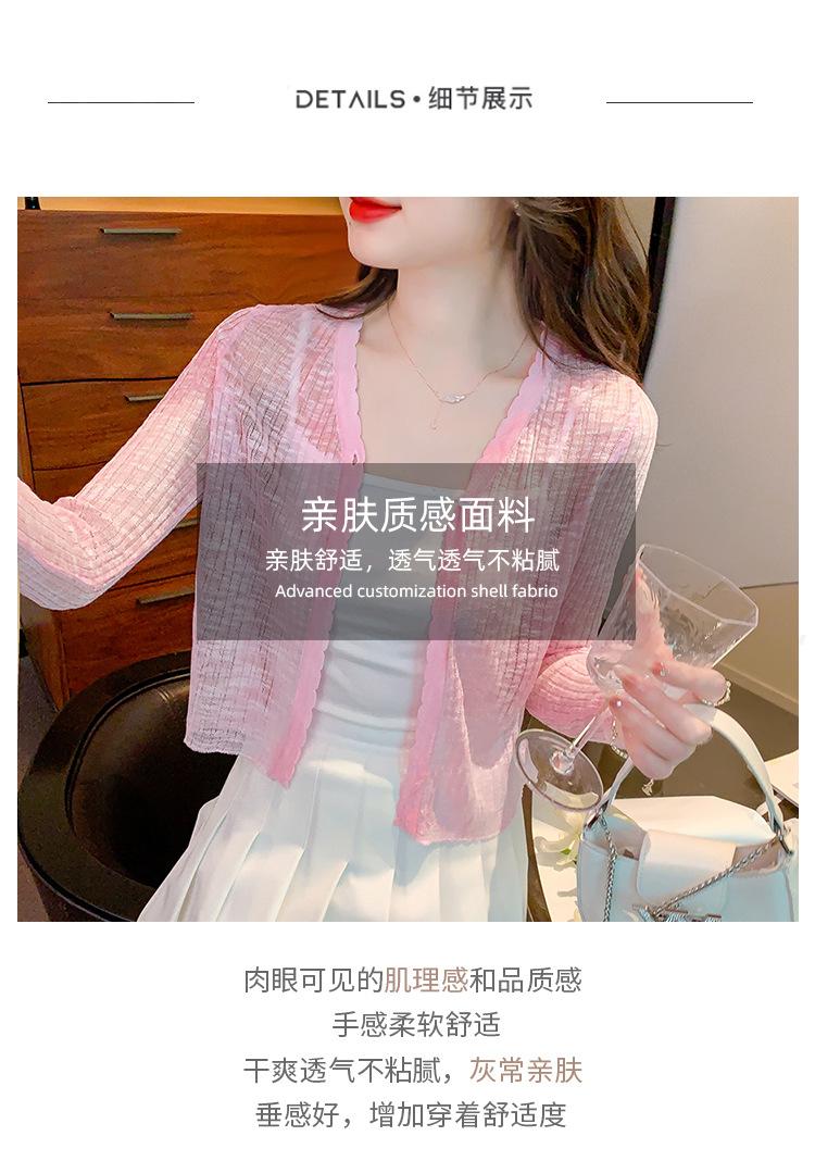 Cárdigan Delgado de Punto de Manga Larga con Cuello en V y Color Puro Estilo Coreano Nuevo de Primavera y Verano 2025 para Protección Solar