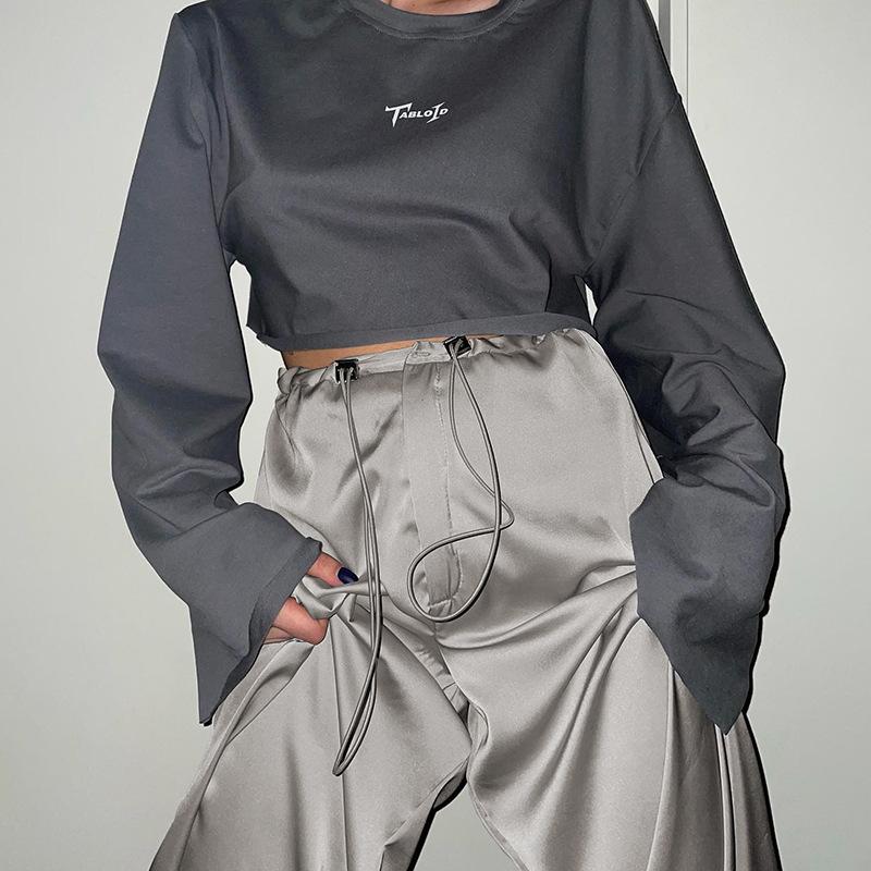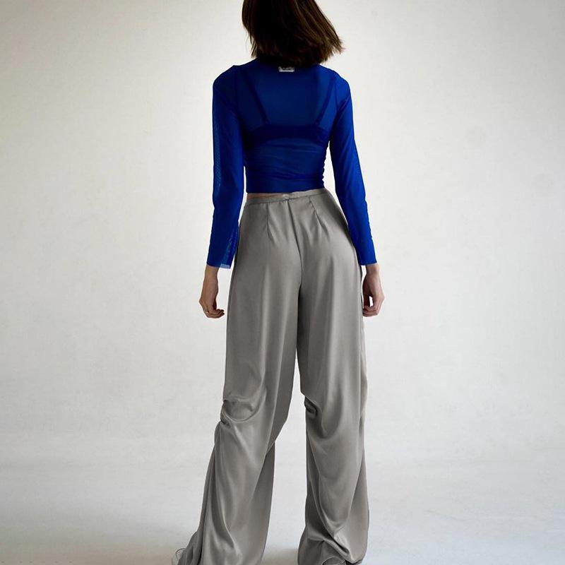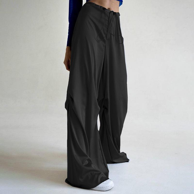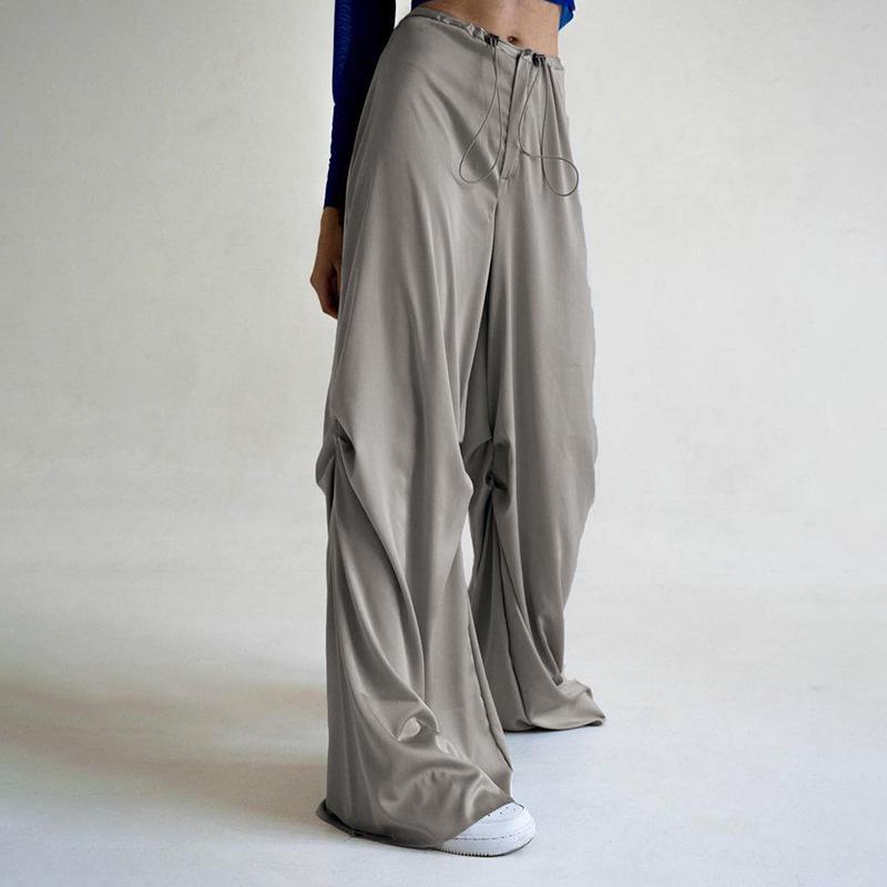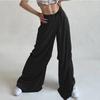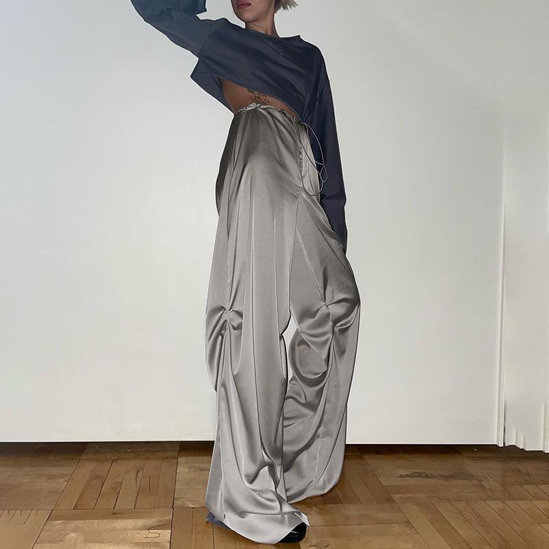 Pantalones tejidos casuales sueltos de satén vertical de color sólido para mujeres europeas y americanas transfronterizas en stock 2024 al por mayor