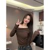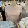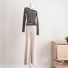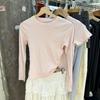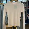 Camiseta de manga larga ajustada con rayas blancas y rosas estilo BM para mujer, estilo básico, cuello redondo, elegante y moderno.