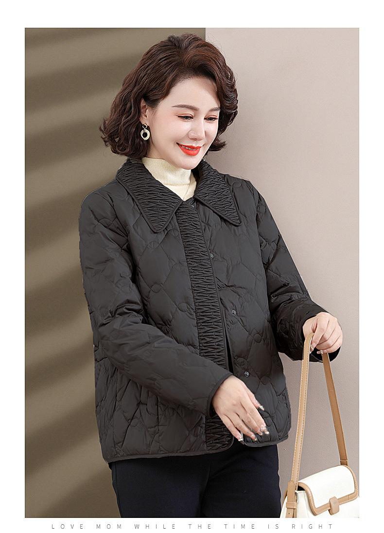 Nueva chaqueta ligera y acolchada de algodón de moda para personas de mediana edad y mayores, abrigo corto de invierno acolchado de algodón para madres de mediana edad, chaqueta acolchada de algodón cálida de estilo occidental.