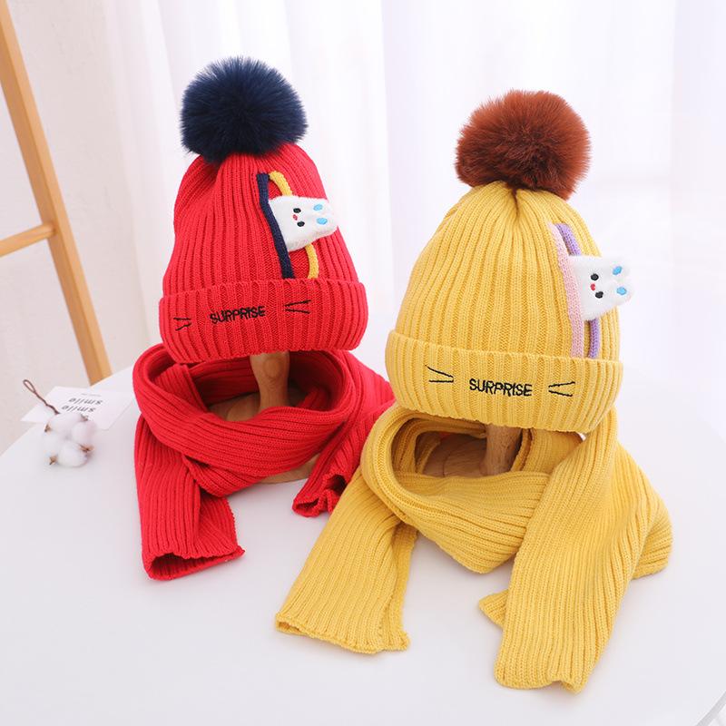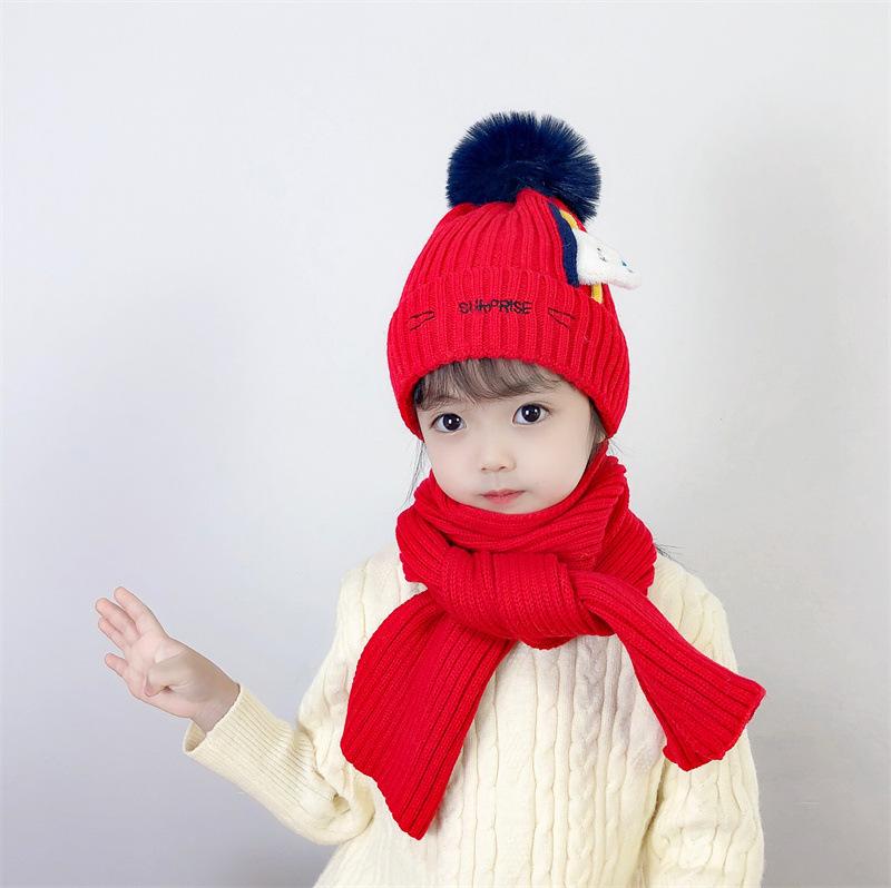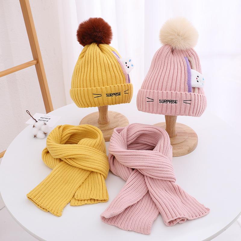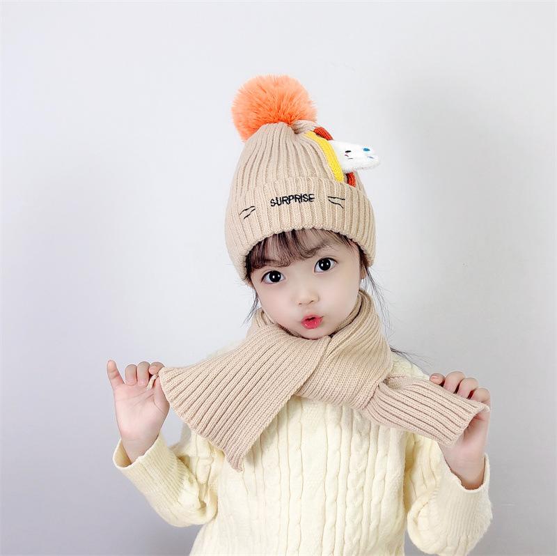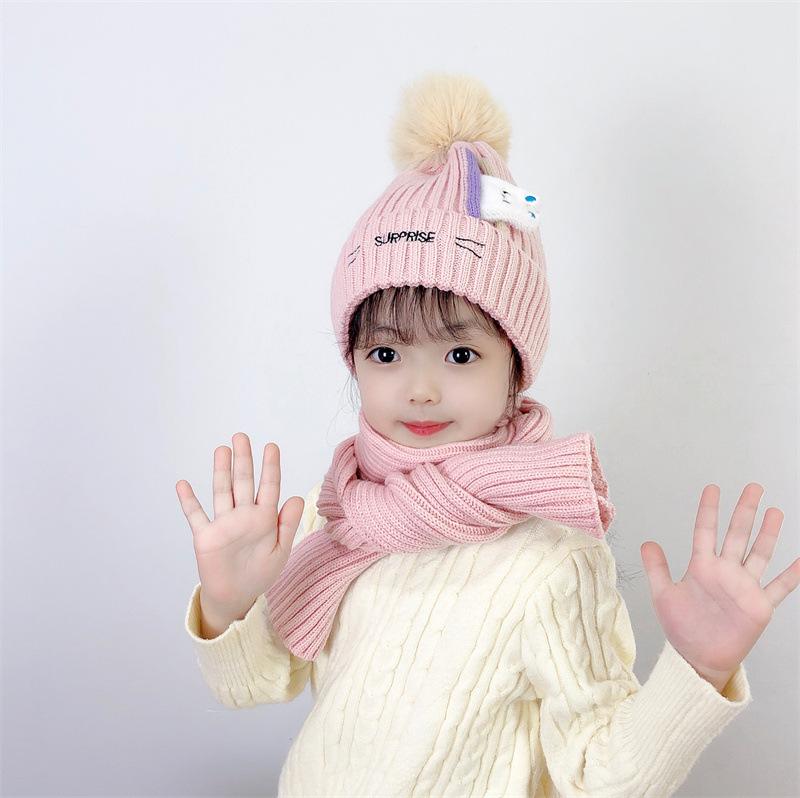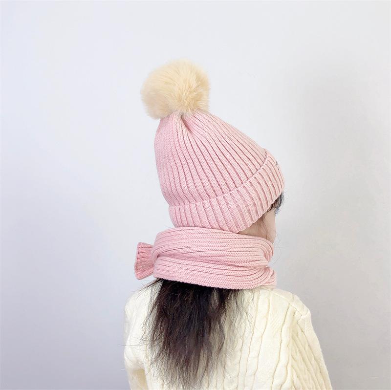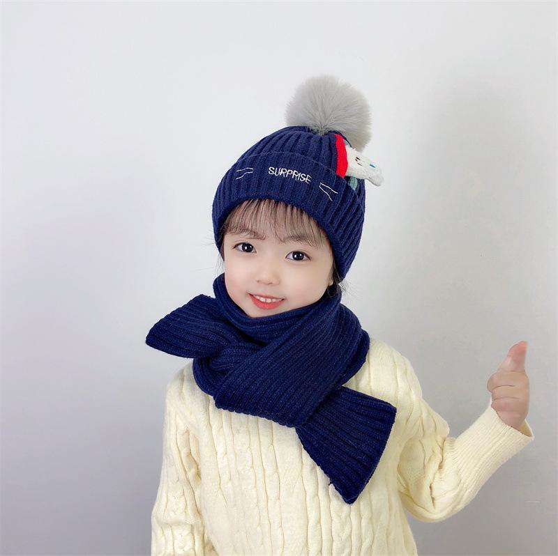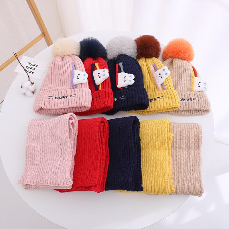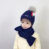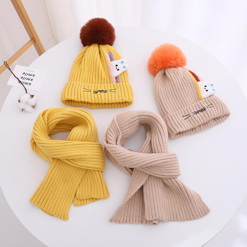 Conjunto de dos piezas de gorro y bufanda para niños de otoño e invierno, gorro de lana para estudiantes de primaria, para niños de talla mediana y grande, gorro de punto cálido para niños y niñas.