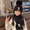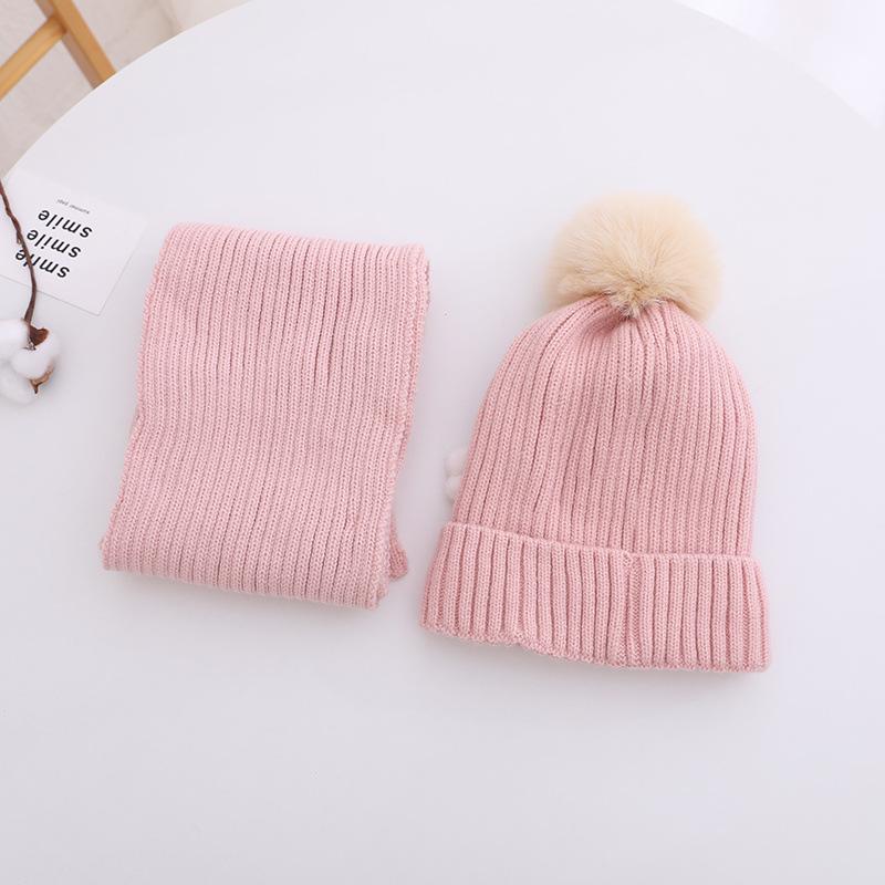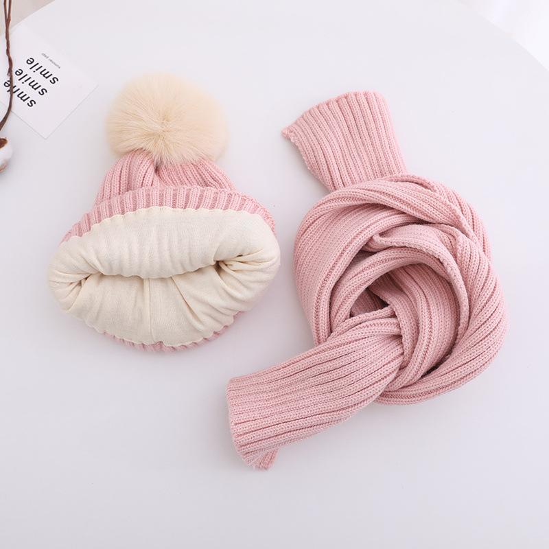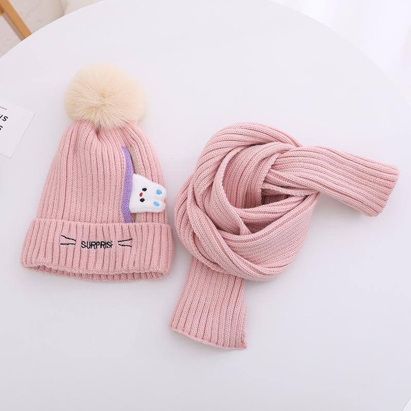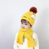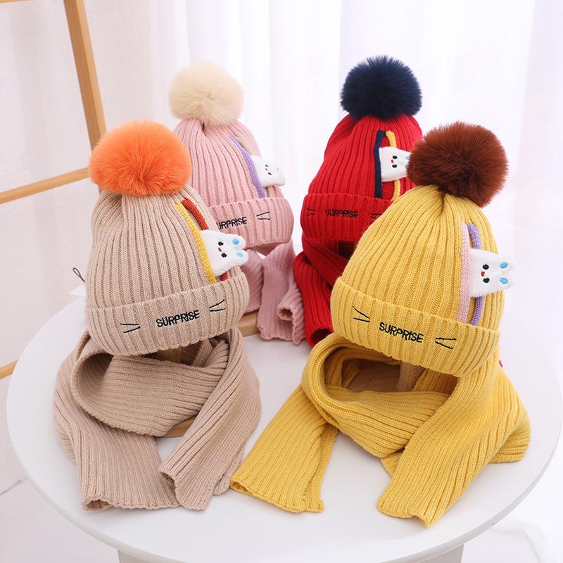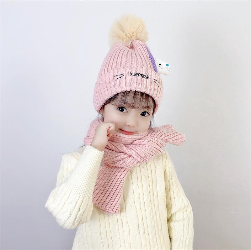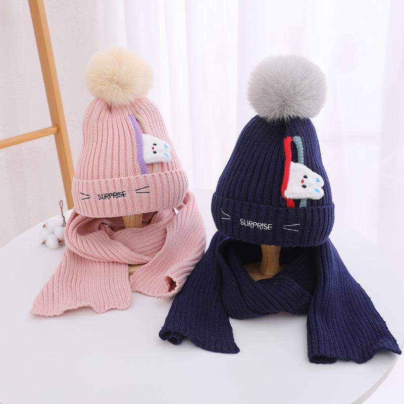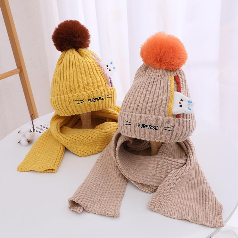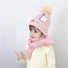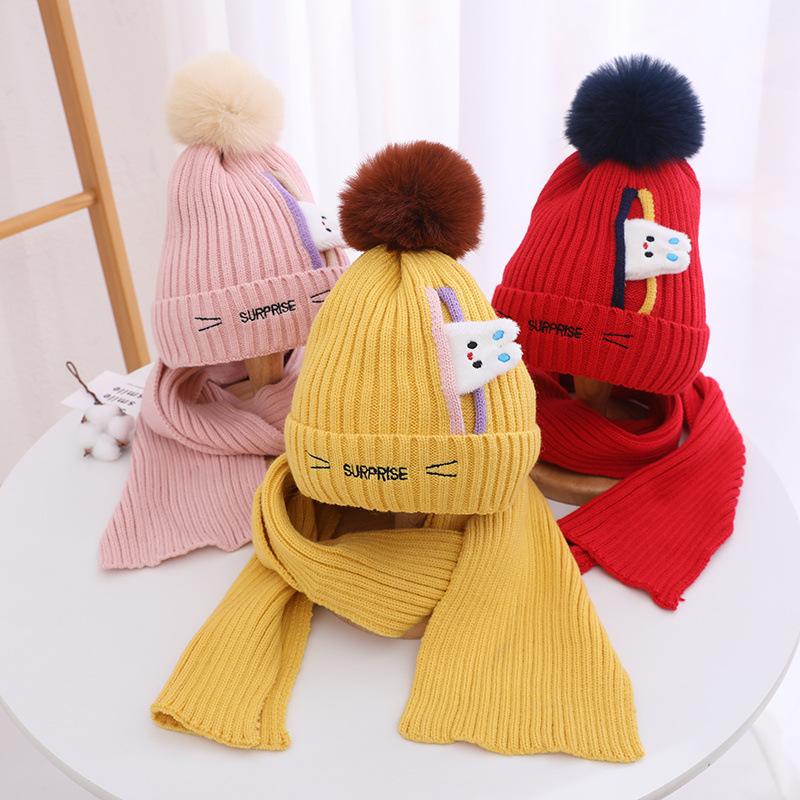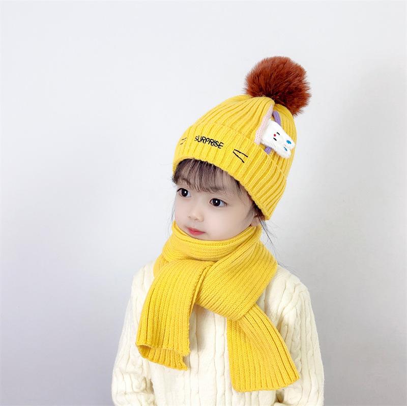 Conjunto de dos piezas de gorro y bufanda para niños de otoño e invierno, gorro de lana para estudiantes de primaria, para niños de talla mediana y grande, gorro de punto cálido para niños y niñas.