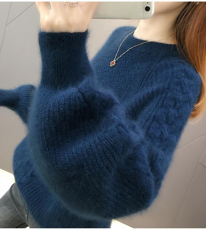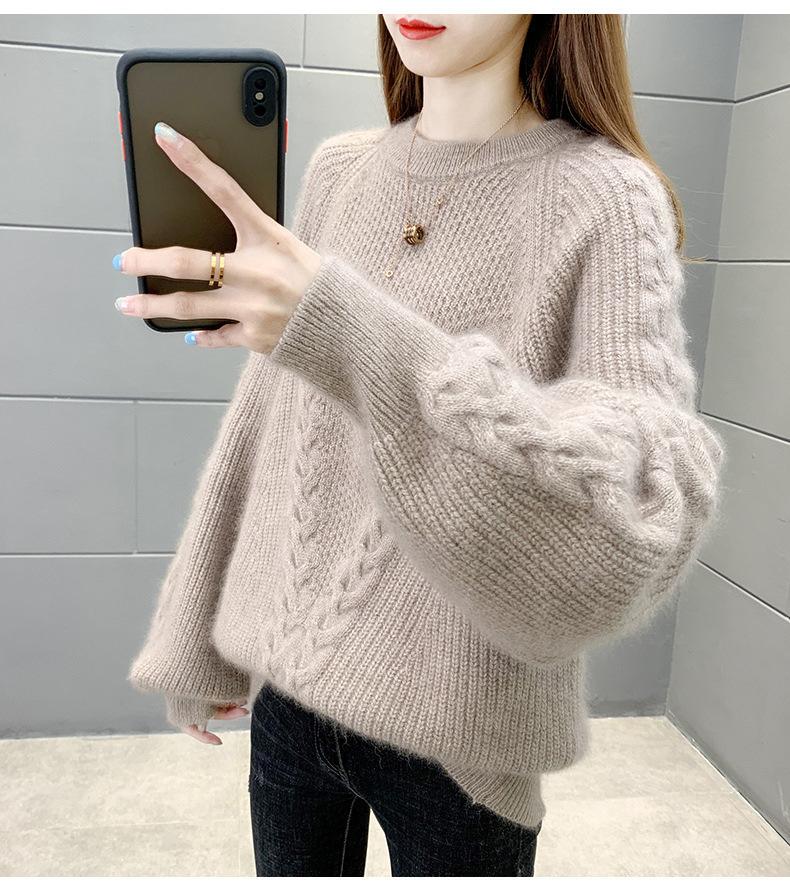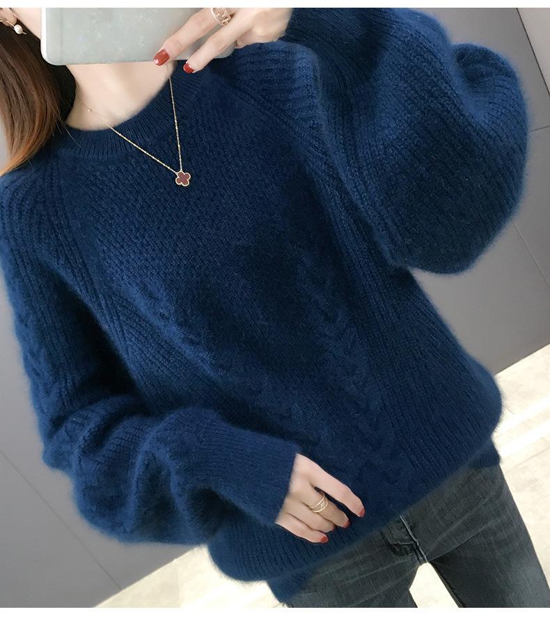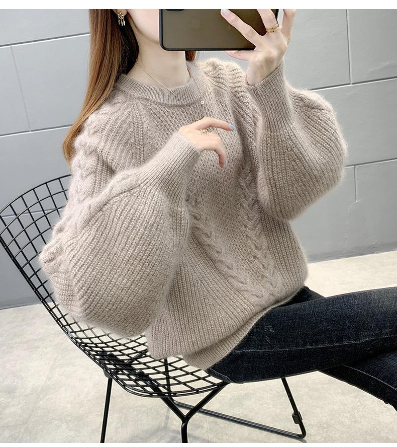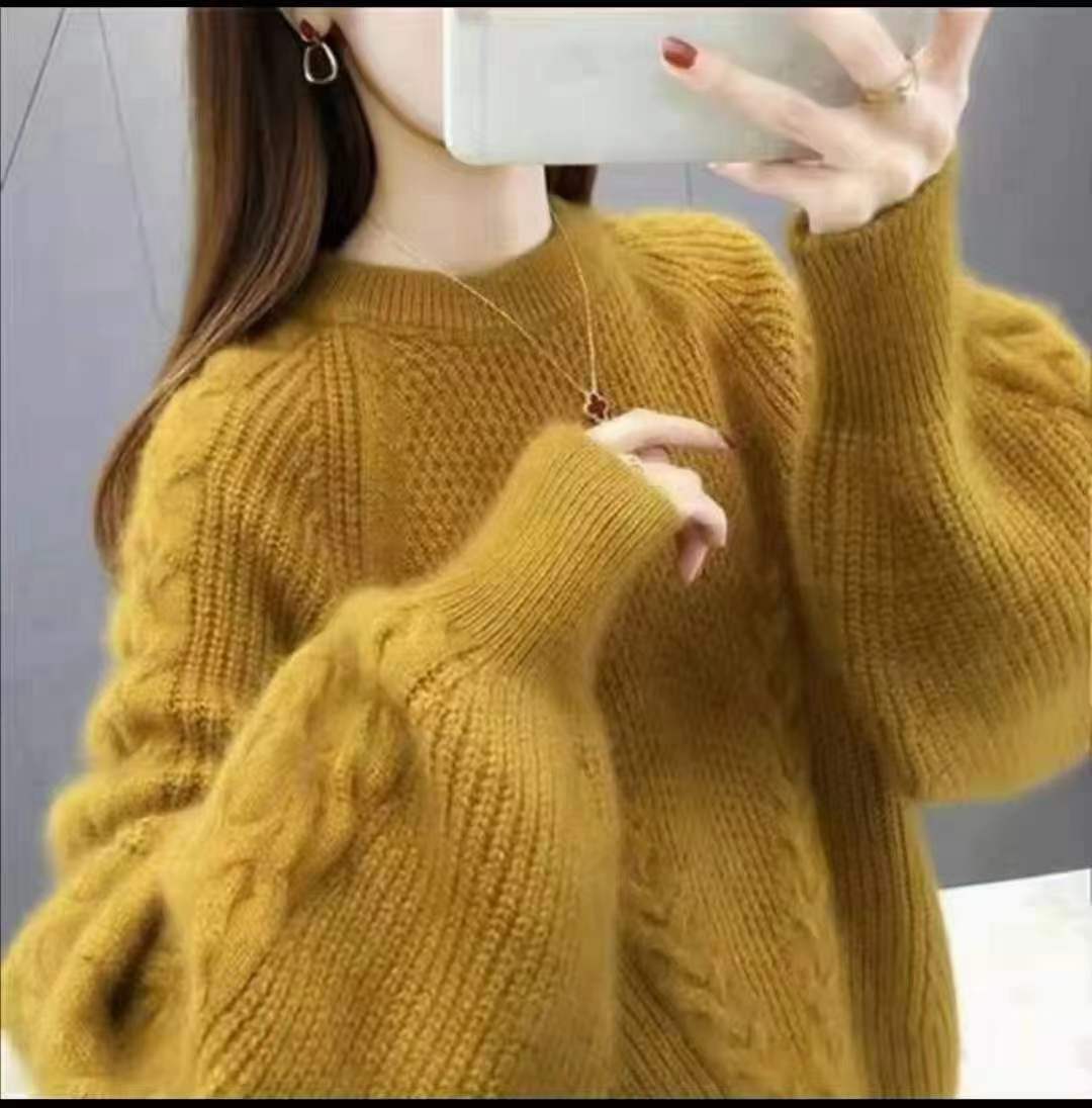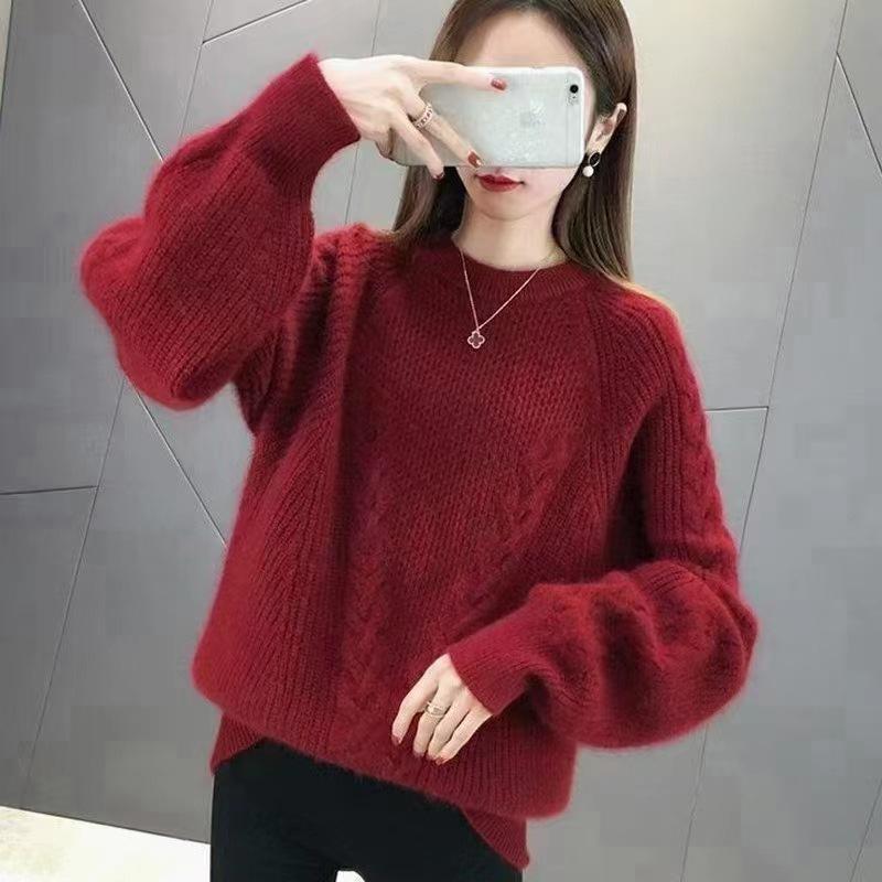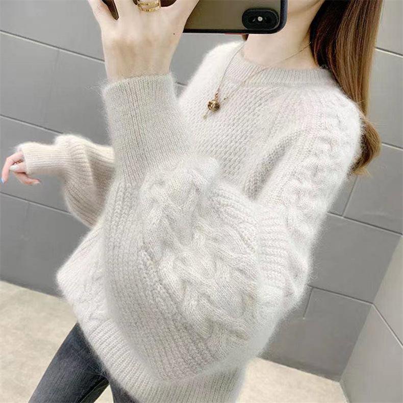 Suéter nuevo de otoño e invierno 2024 para mujer, cuello redondo, suelto, adelgazante, de punto, estilo perezoso, base suave y cerosa, a la moda.
