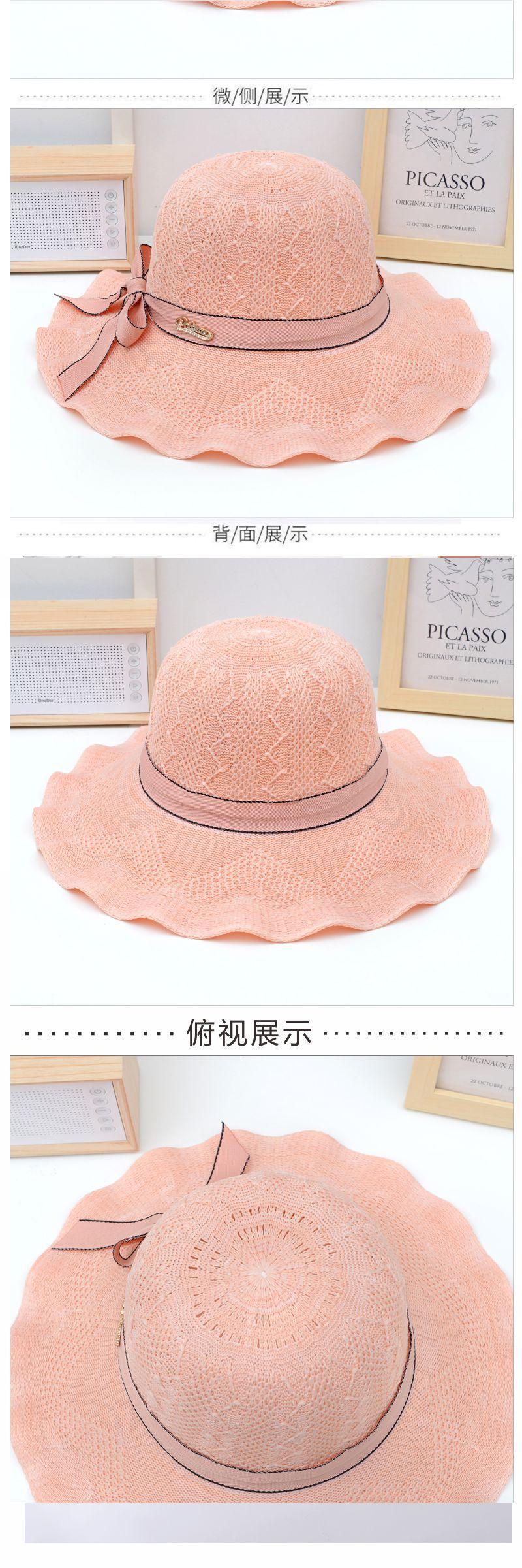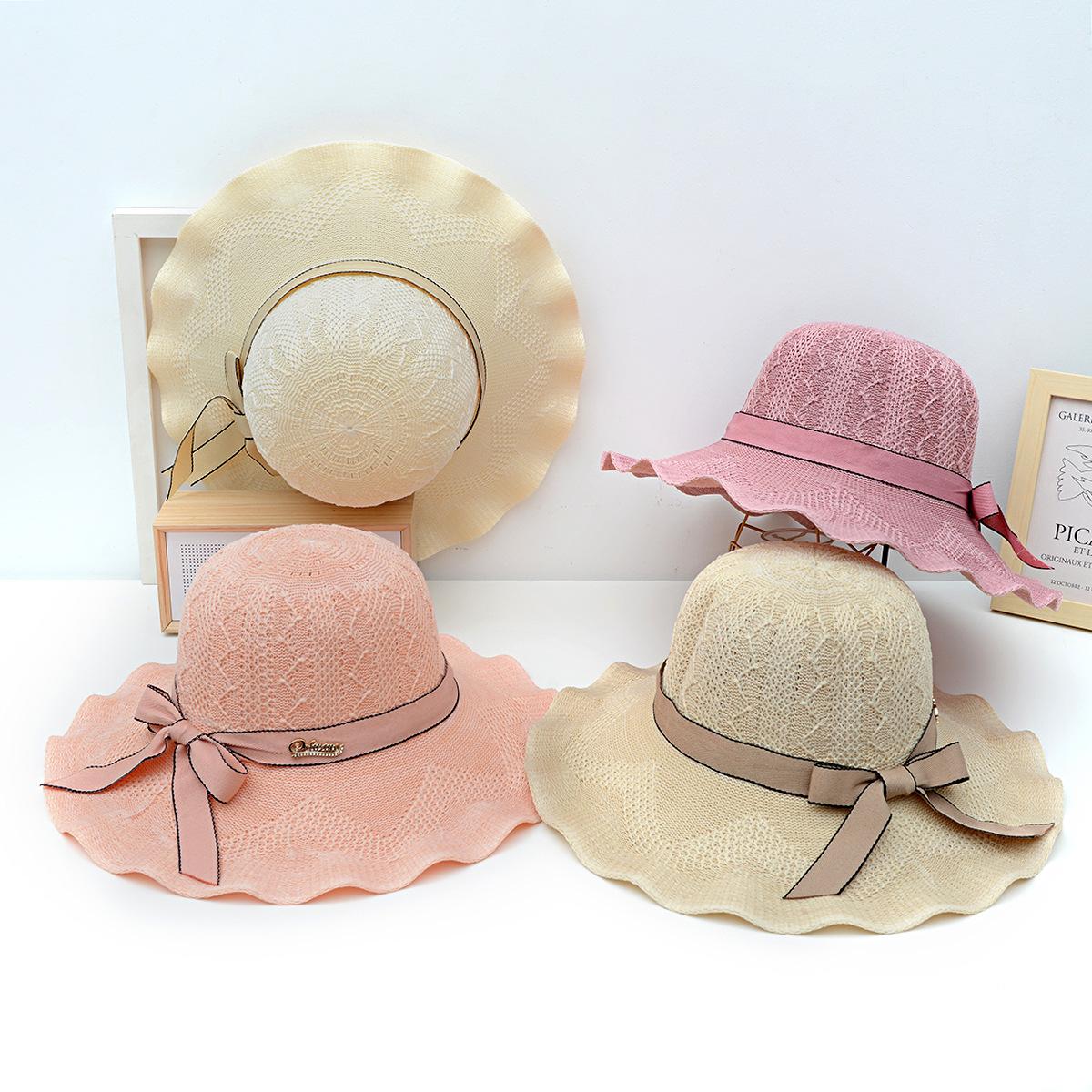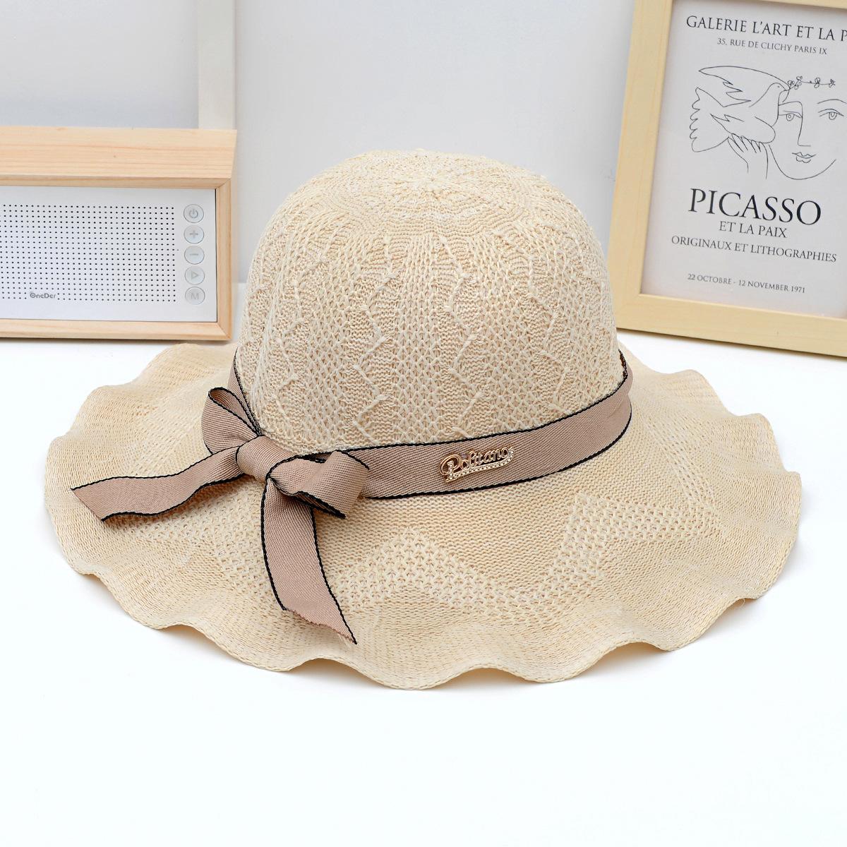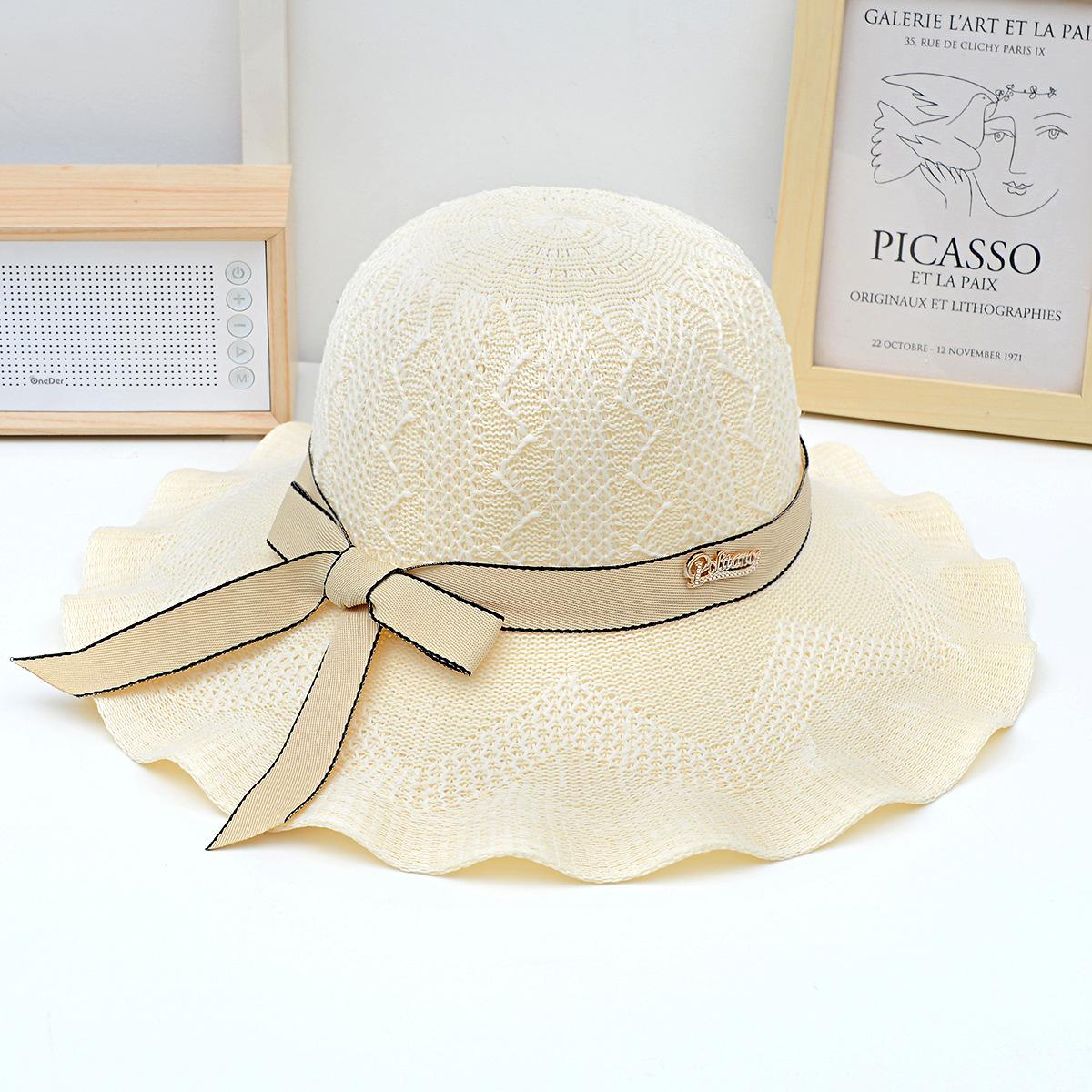 Sombrero de Paja para Mujer Verano Estilo Coreano Protección Solar Sombrero de Sol Ala Ancha Borde Ondulado Playa Marítima Anti-UV Sombrero de Paja