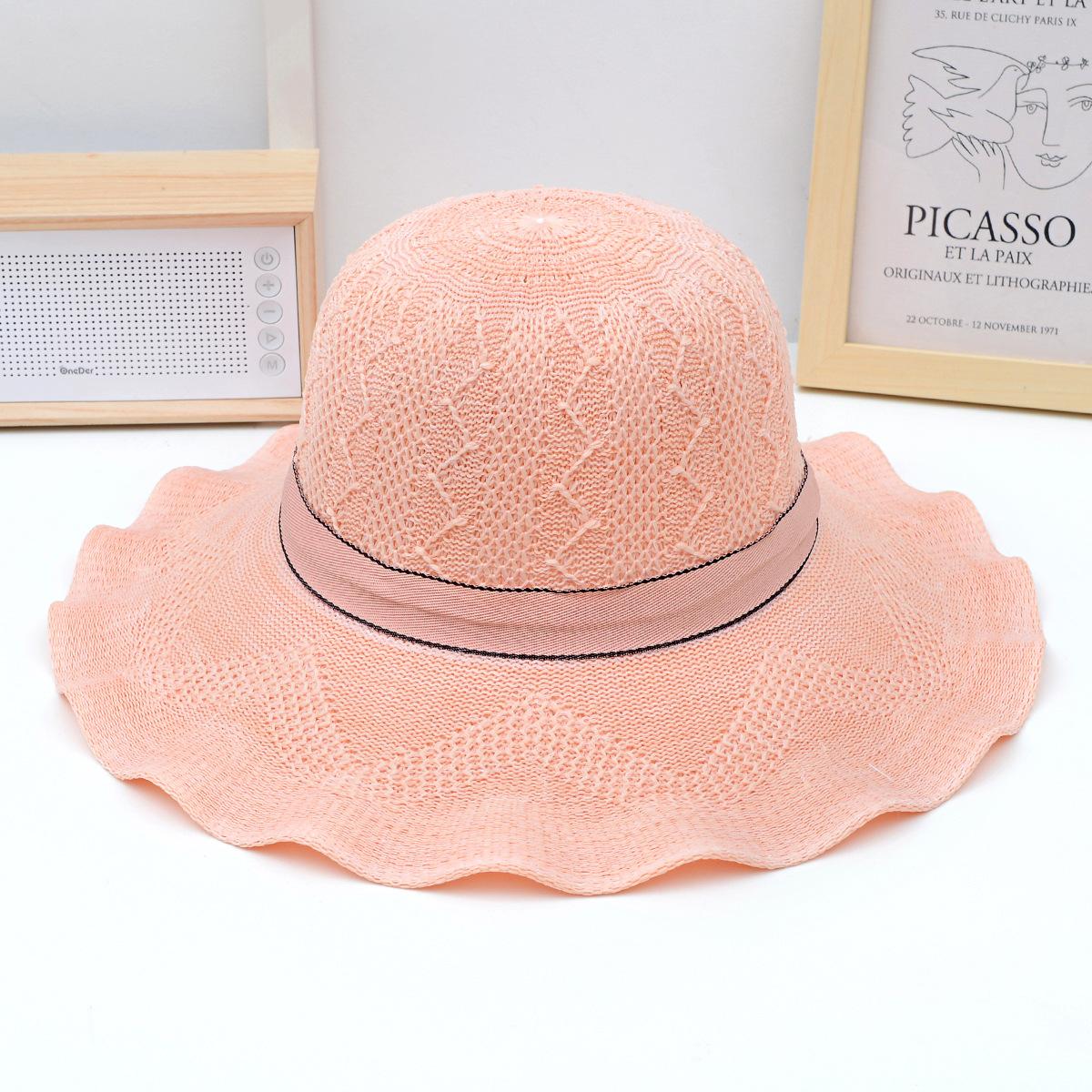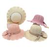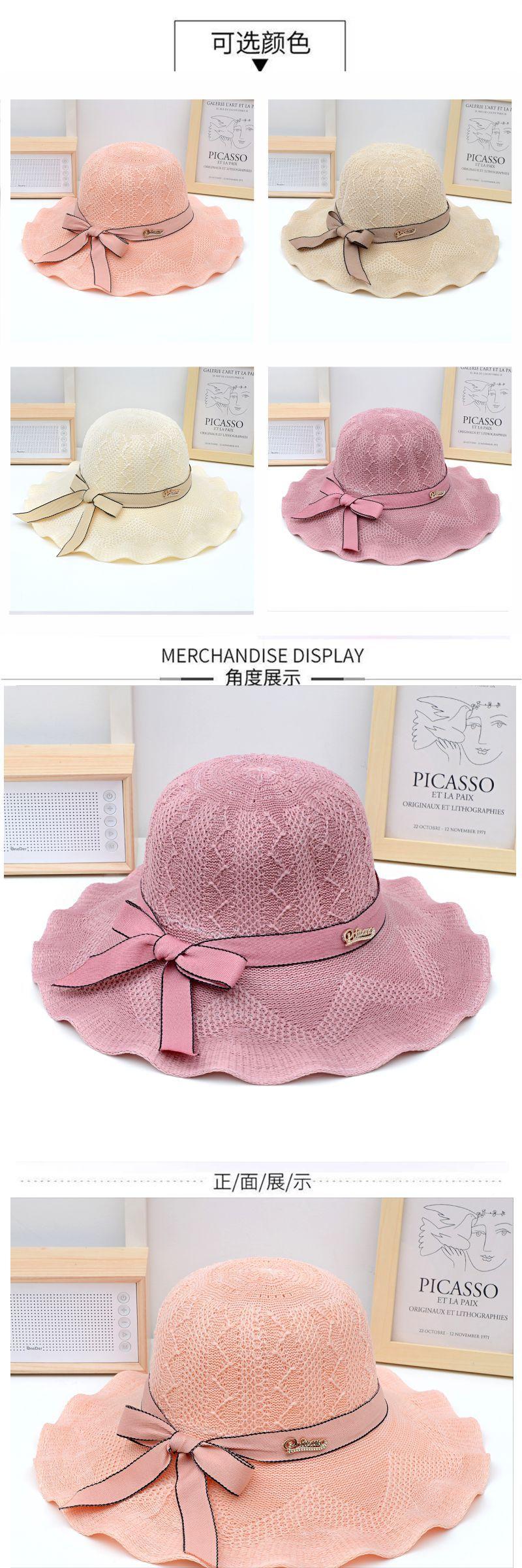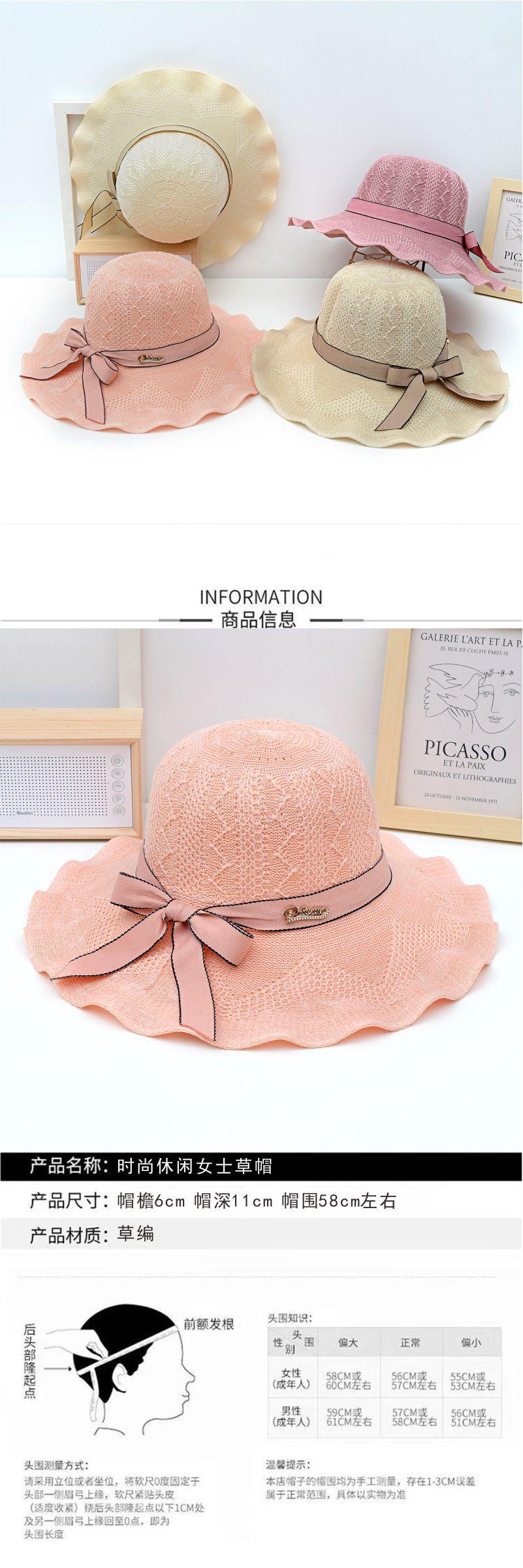 Sombrero de Paja para Mujer Verano Estilo Coreano Protección Solar Sombrero de Sol Ala Ancha Borde Ondulado Playa Marítima Anti-UV Sombrero de Paja