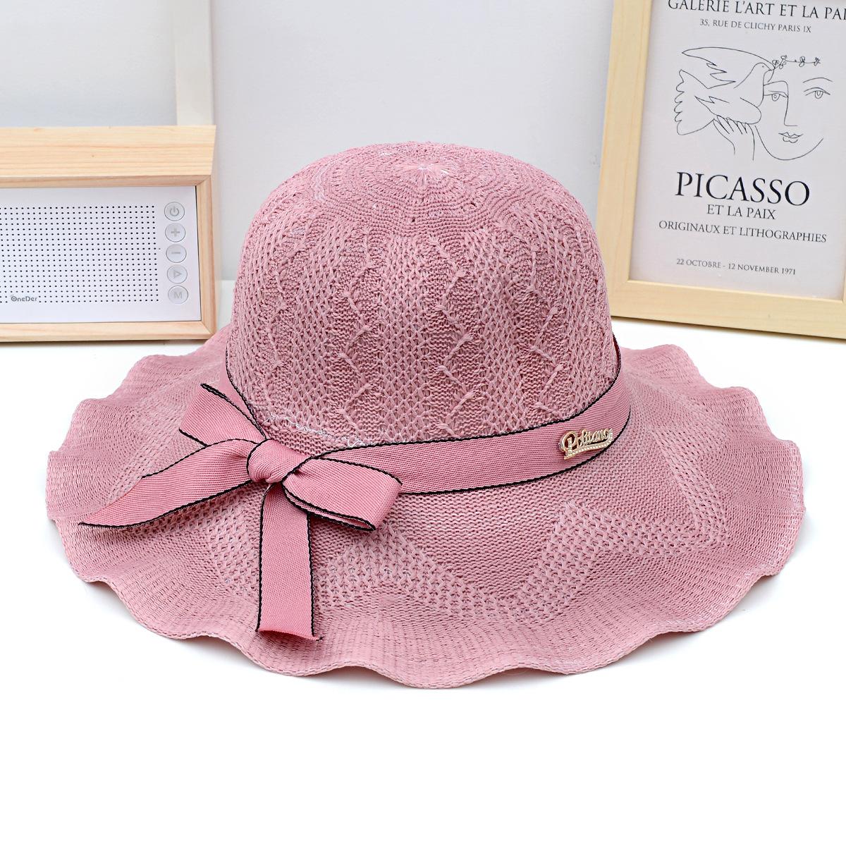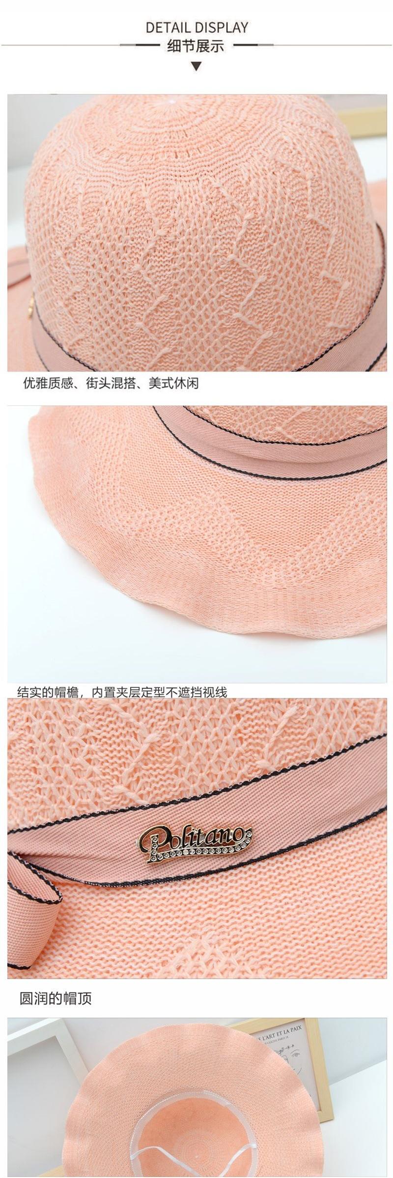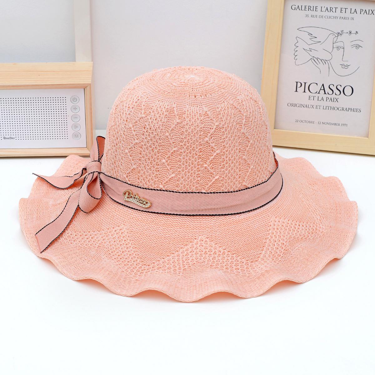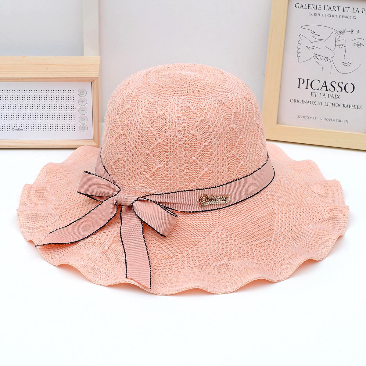 Sombrero de Paja para Mujer Verano Estilo Coreano Protección Solar Sombrero de Sol Ala Ancha Borde Ondulado Playa Marítima Anti-UV Sombrero de Paja