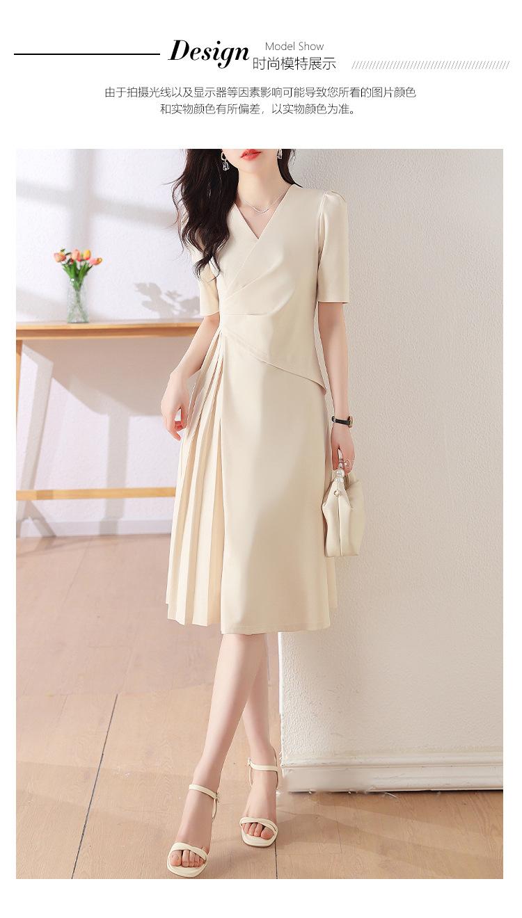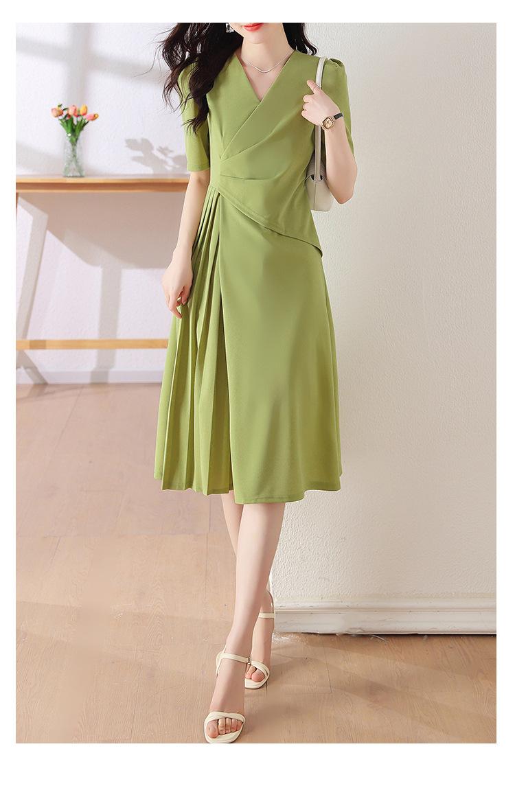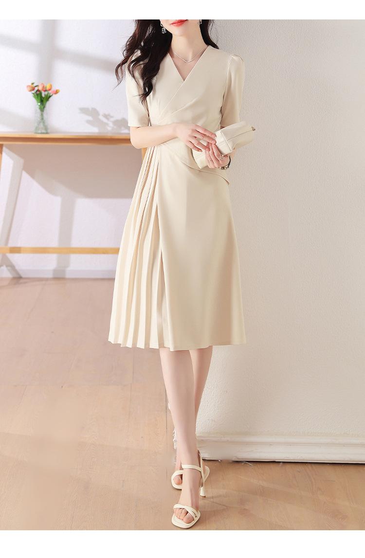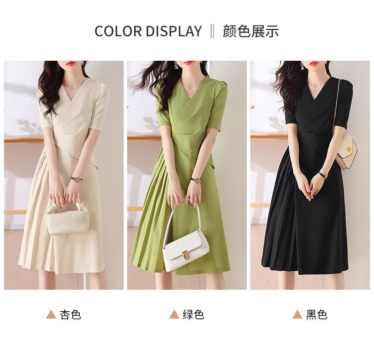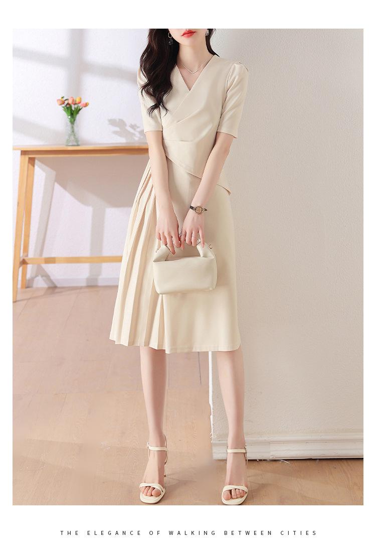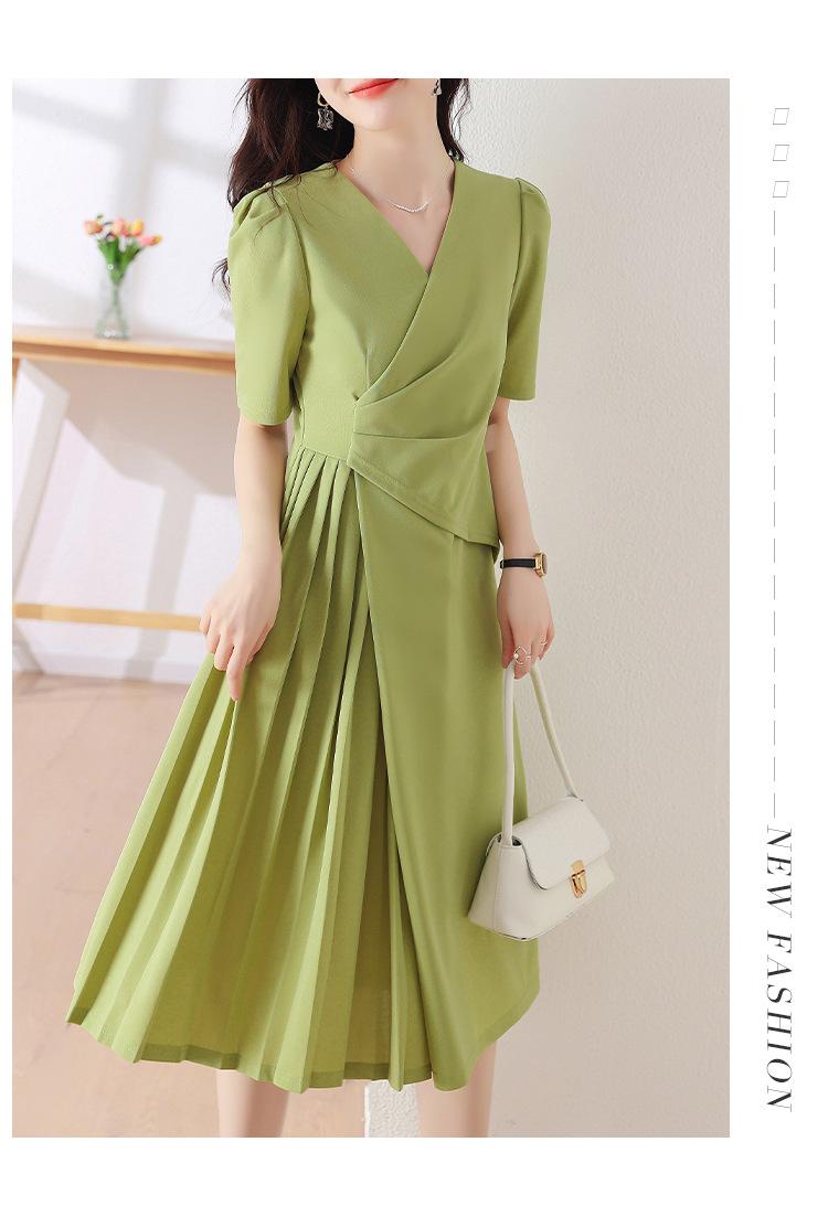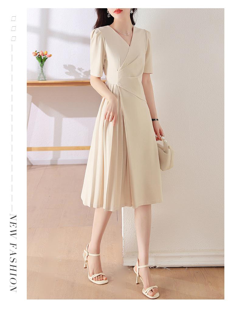 Diseño Nicho Moda Vestido Línea A Cuello en V Verano 2025 Plisado Cubre Vientre Cintura Adelgazante Falda Plisada