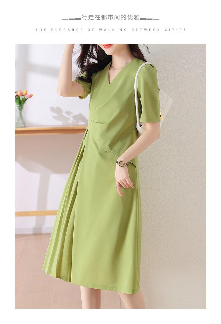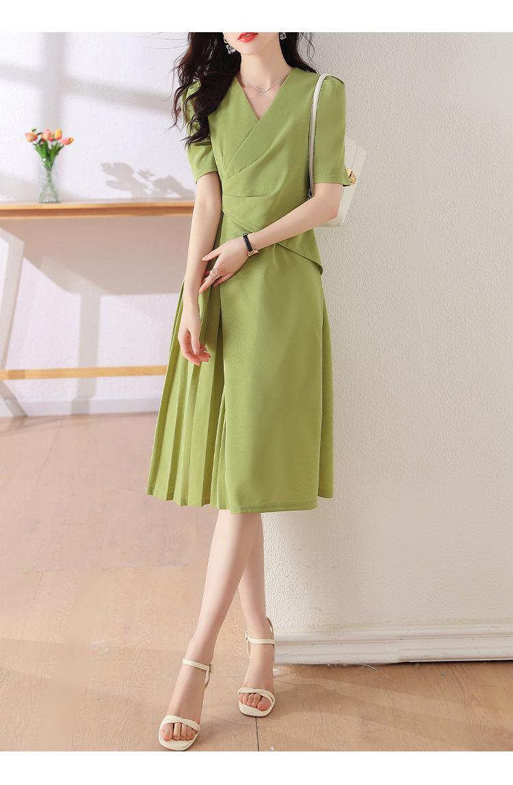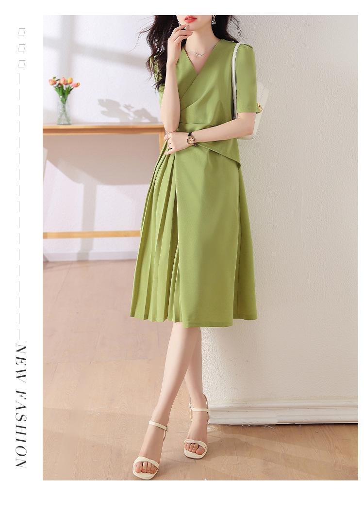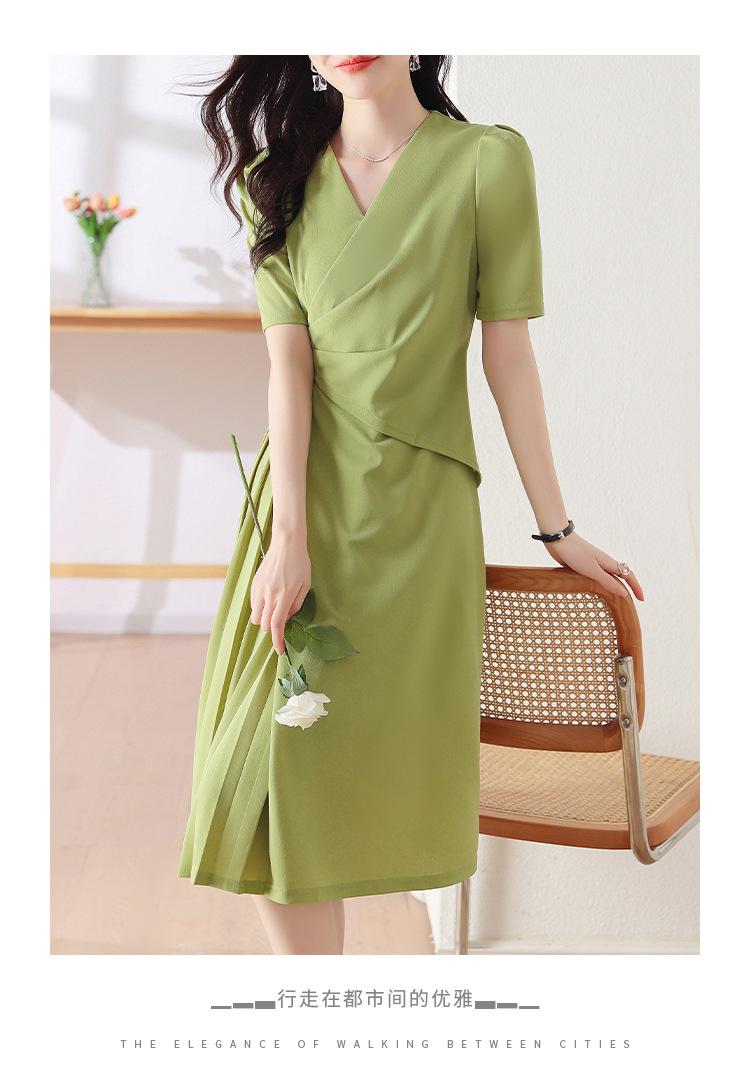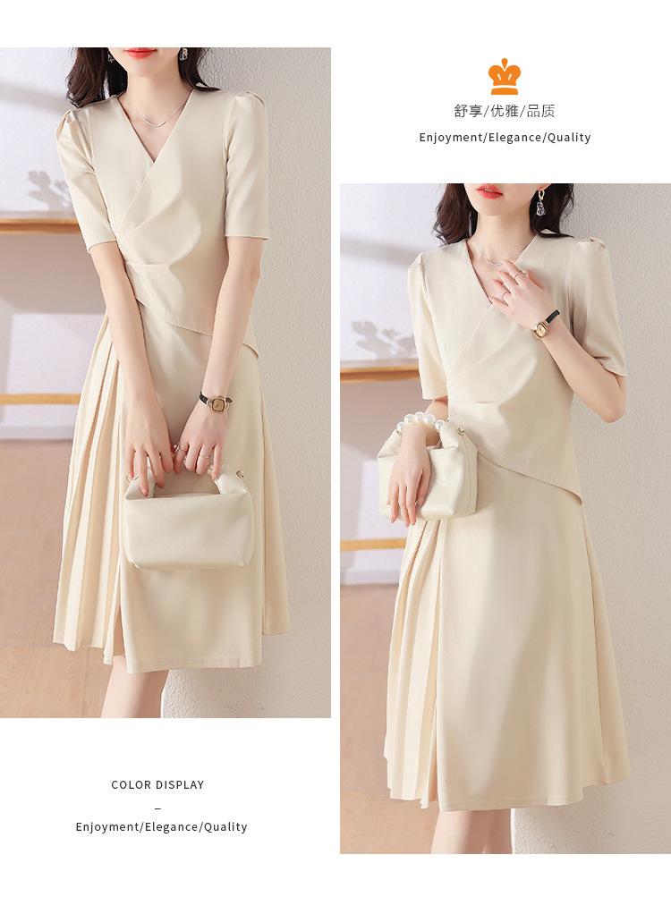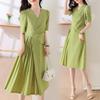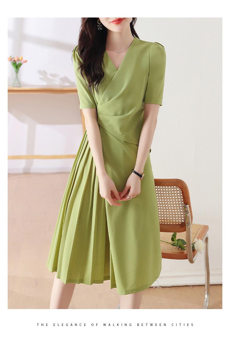Diseño Nicho Moda Vestido Línea A Cuello en V Verano 2025 Plisado Cubre Vientre Cintura Adelgazante Falda Plisada
