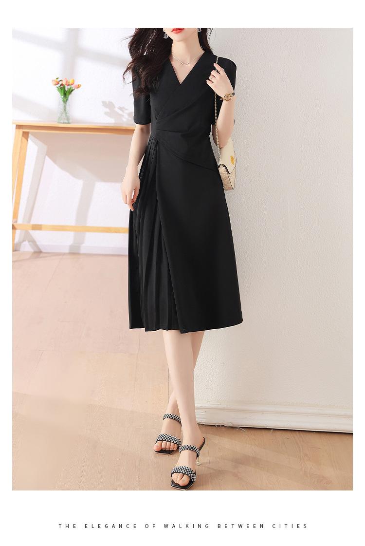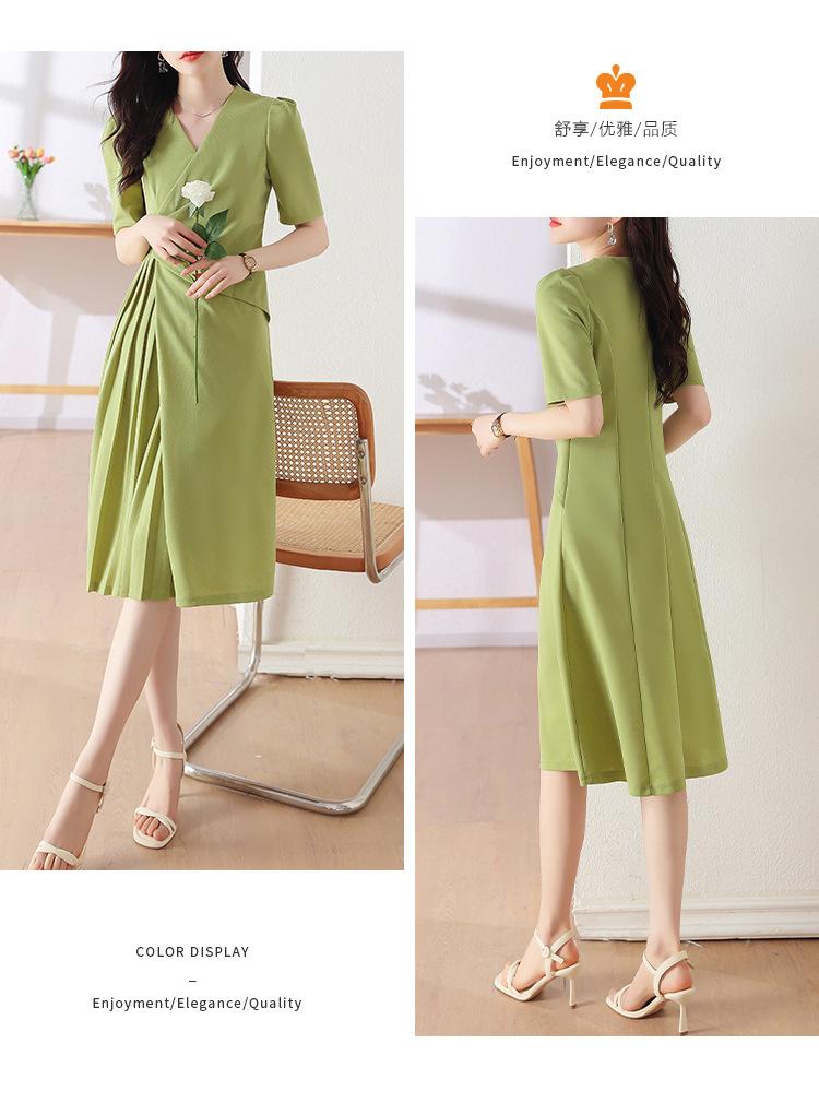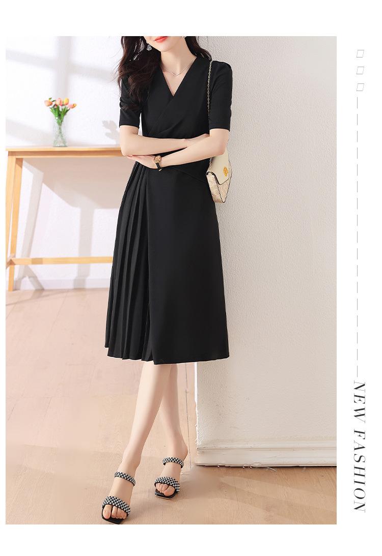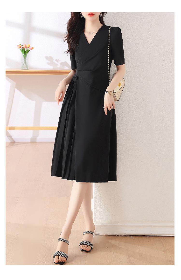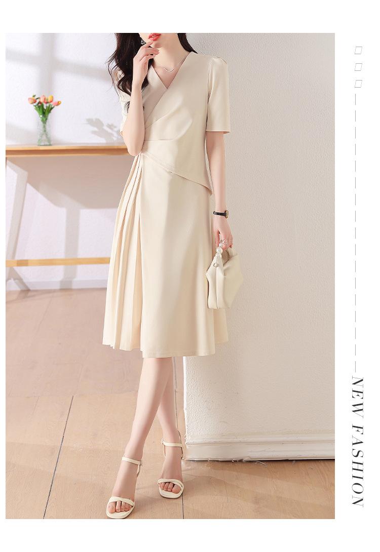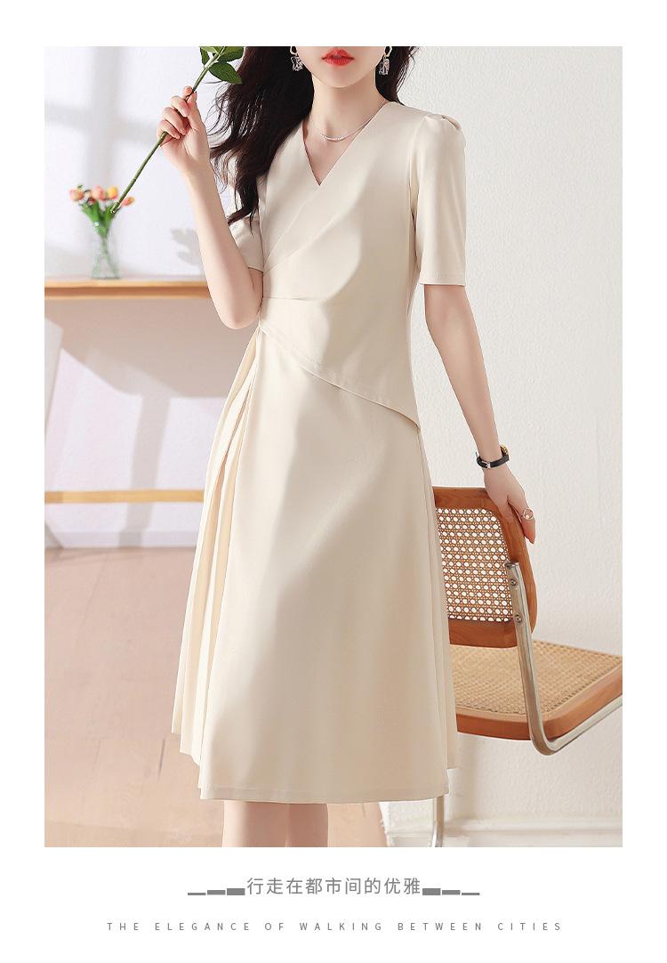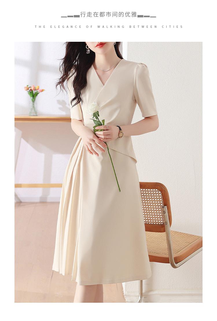 Diseño Nicho Moda Vestido Línea A Cuello en V Verano 2025 Plisado Cubre Vientre Cintura Adelgazante Falda Plisada