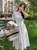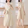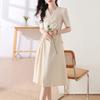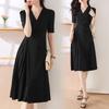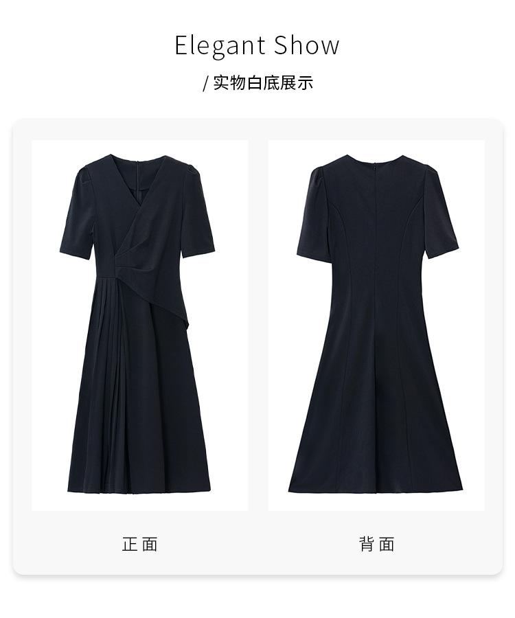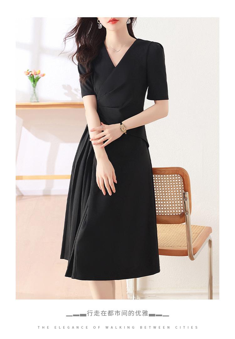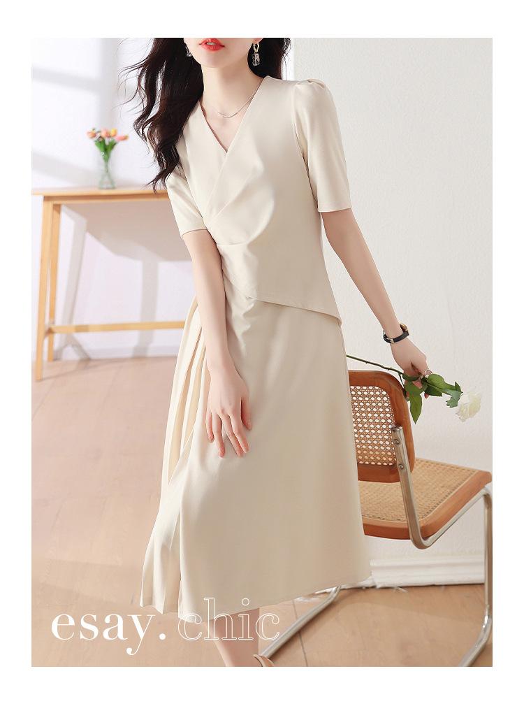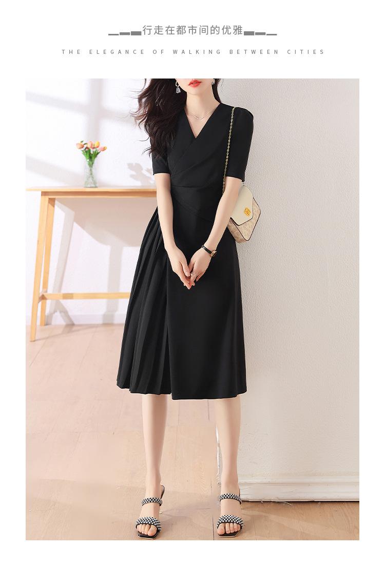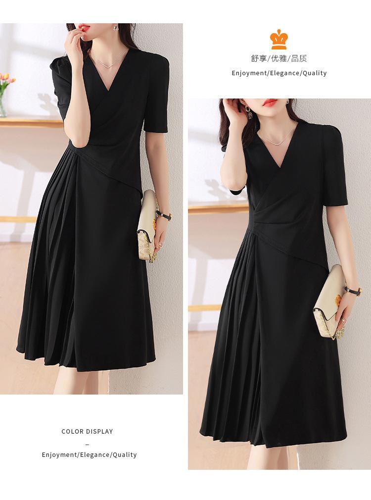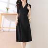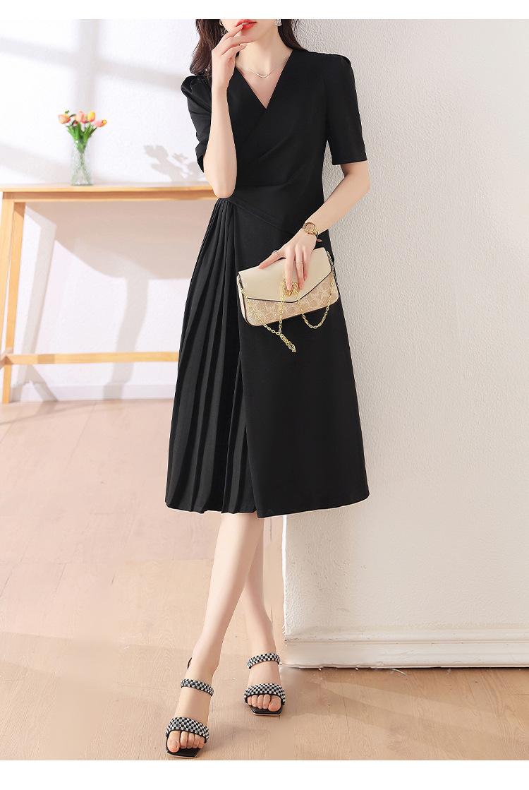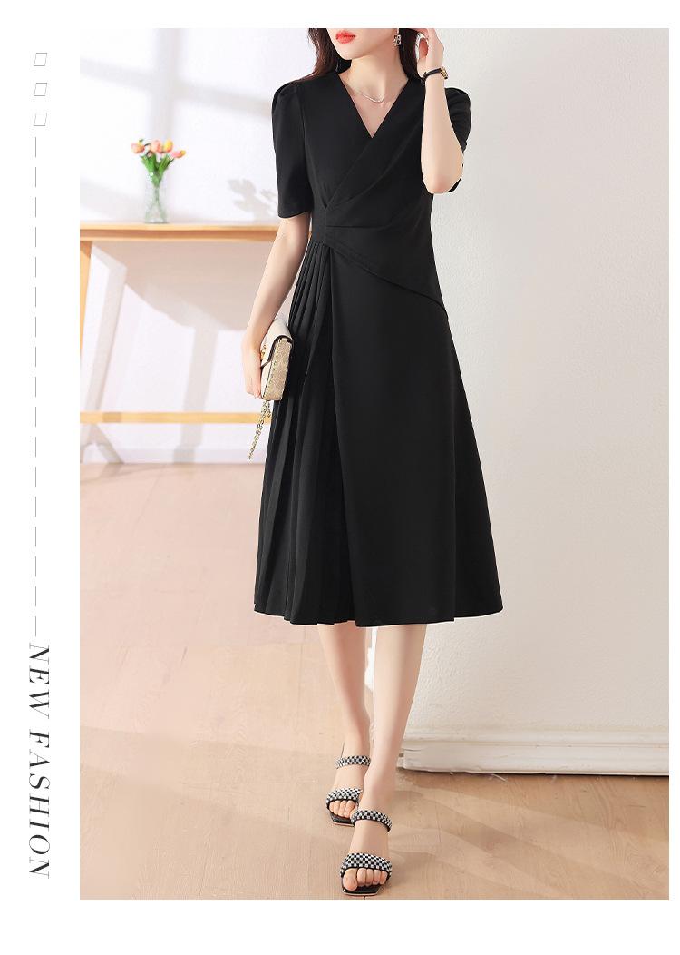 Diseño Nicho Moda Vestido Línea A Cuello en V Verano 2025 Plisado Cubre Vientre Cintura Adelgazante Falda Plisada