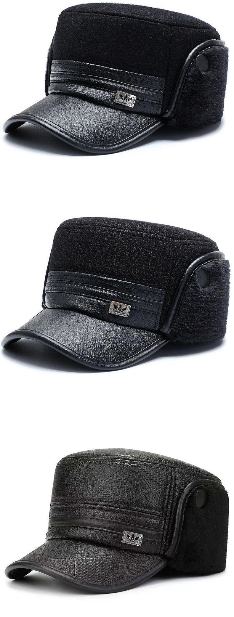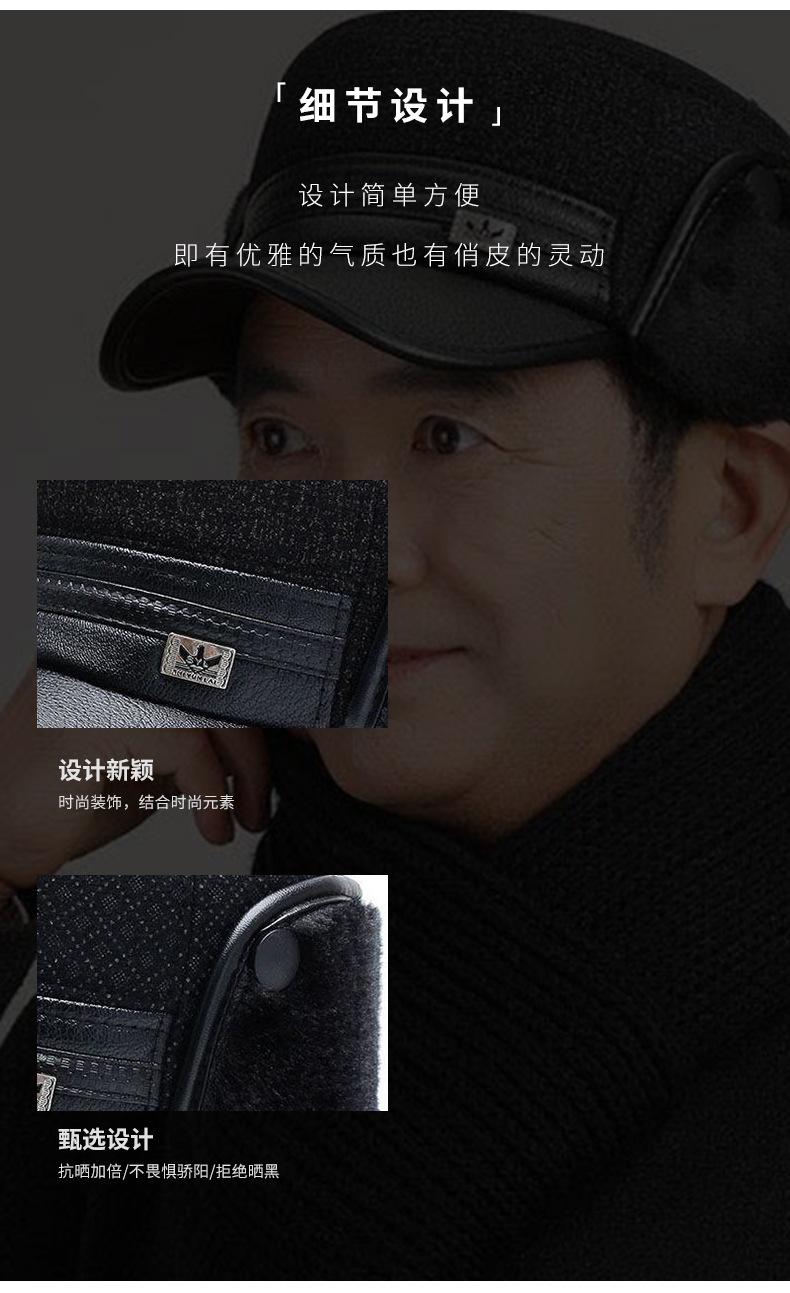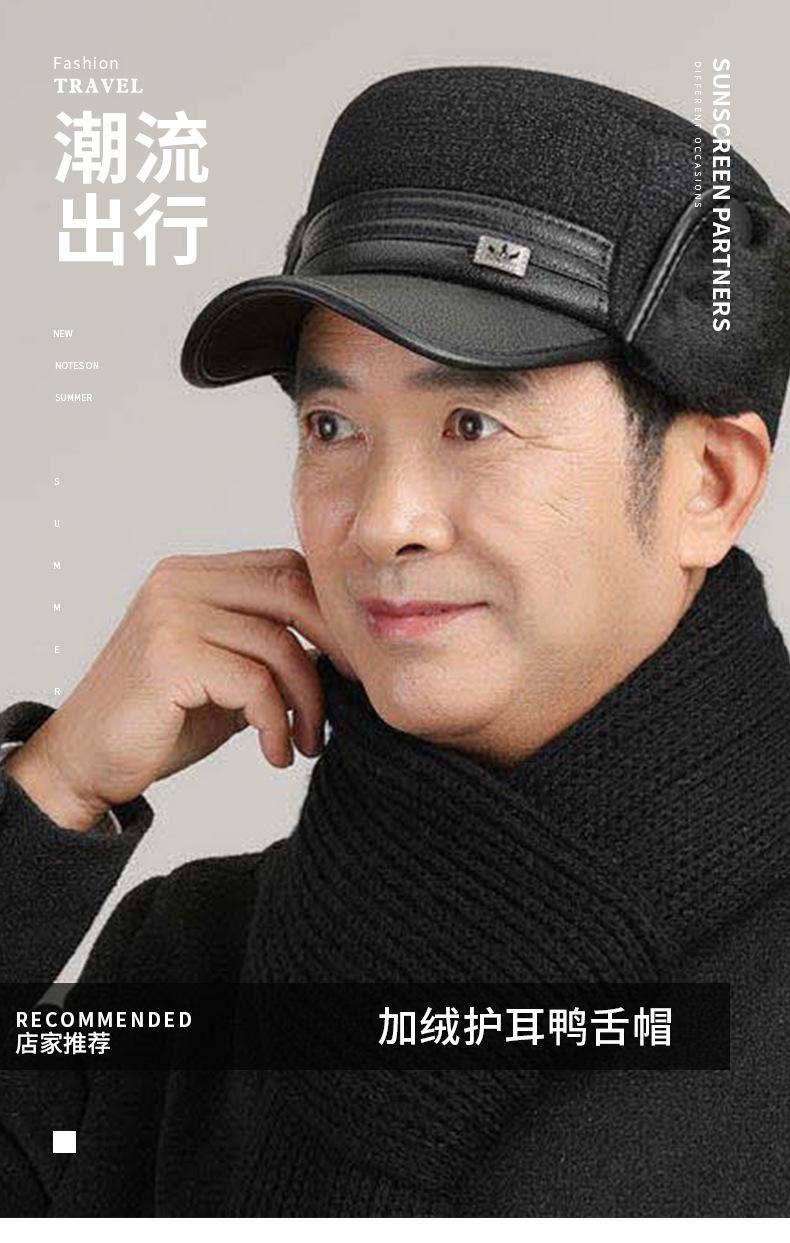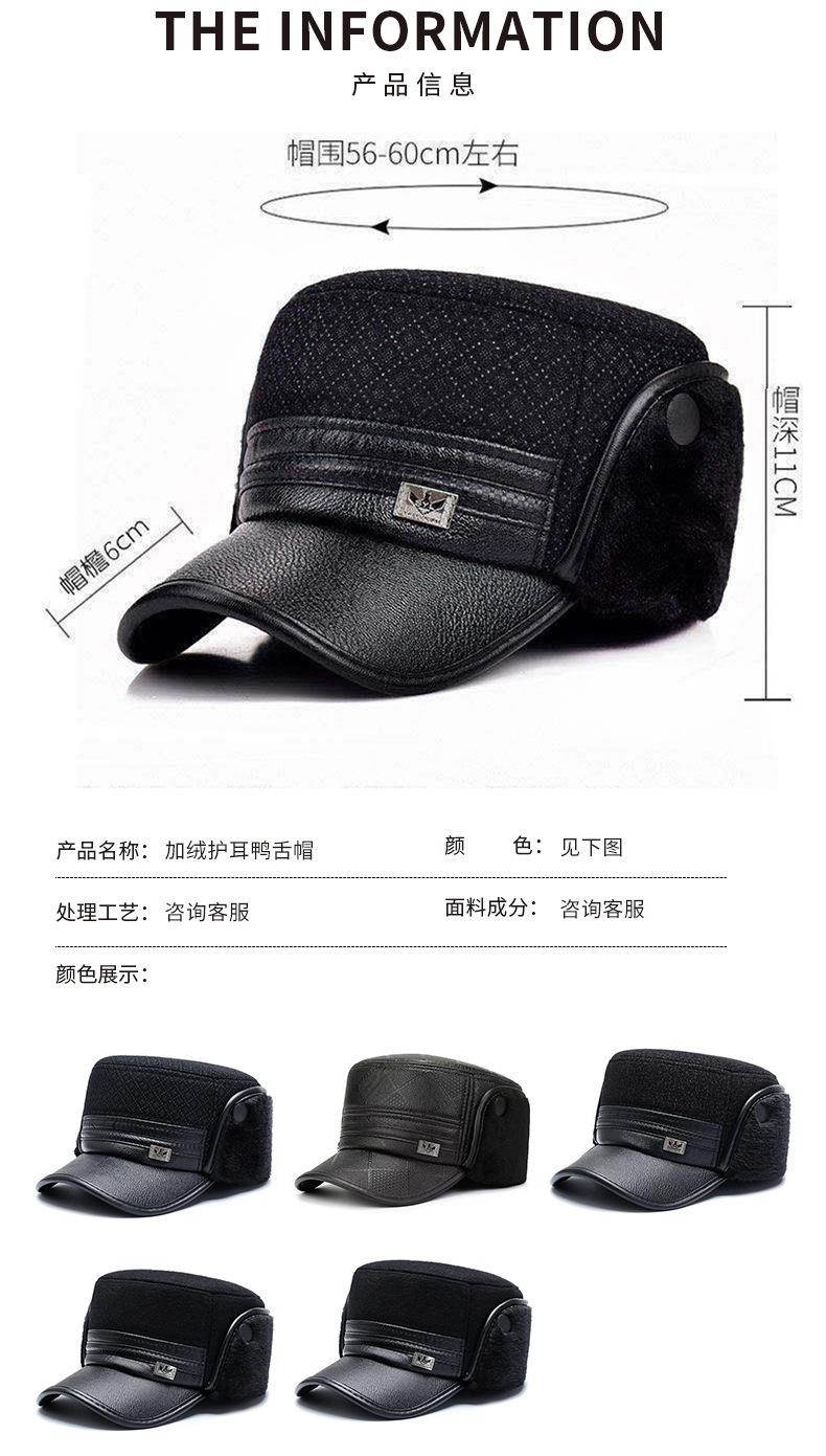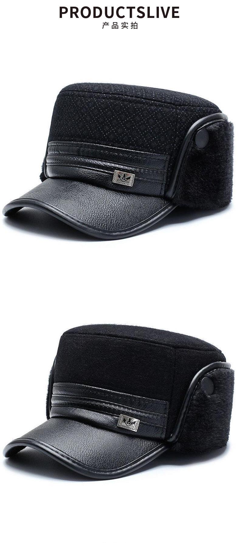 Gorro de invierno para hombres de mediana edad y mayores, cálido, plano, para papá, abuelo, anciano, informal, con forro polar, protección para las orejas, gorra con visera