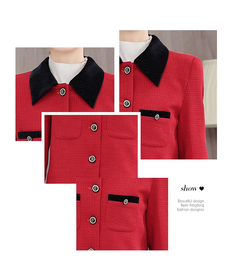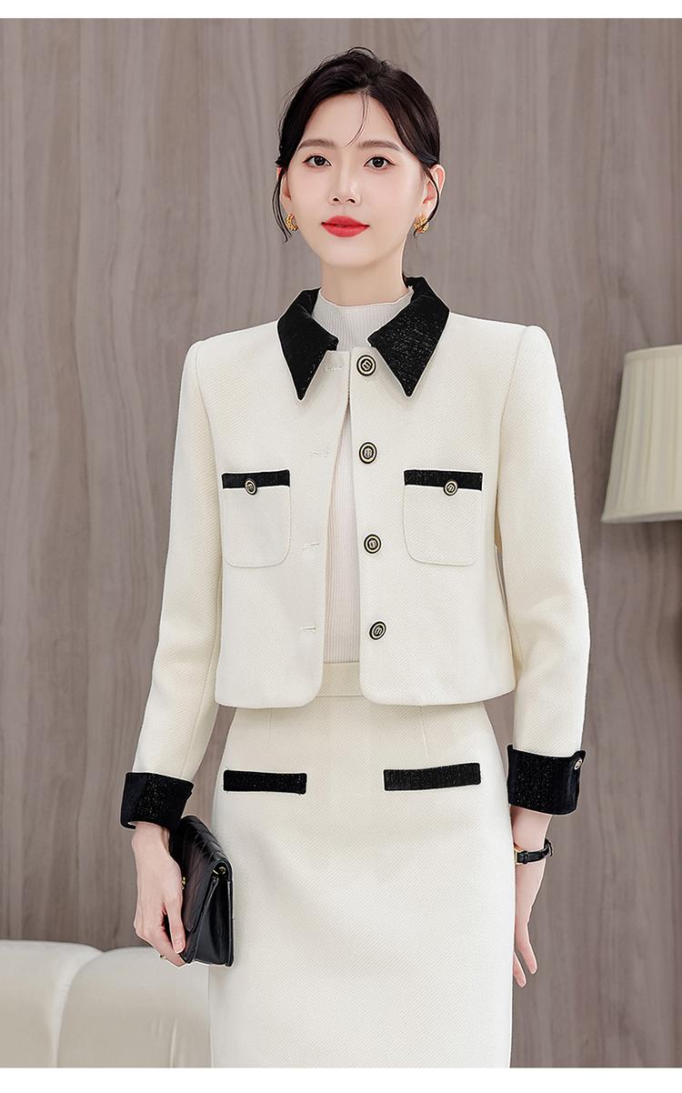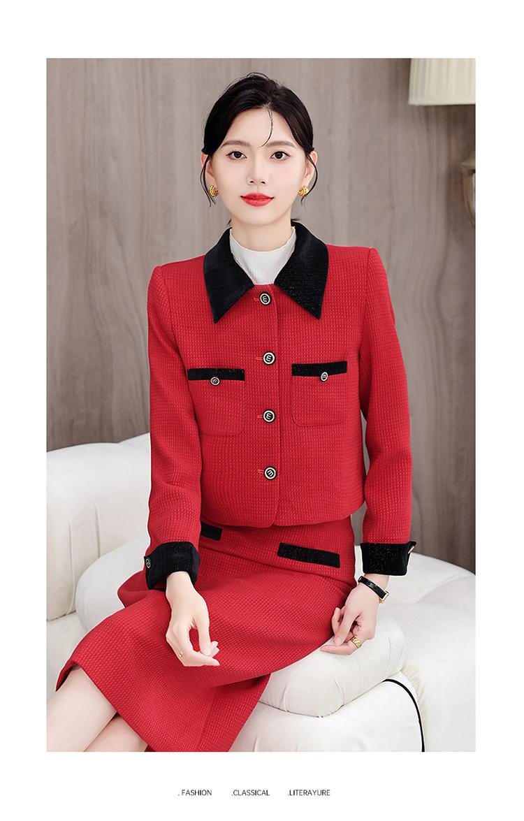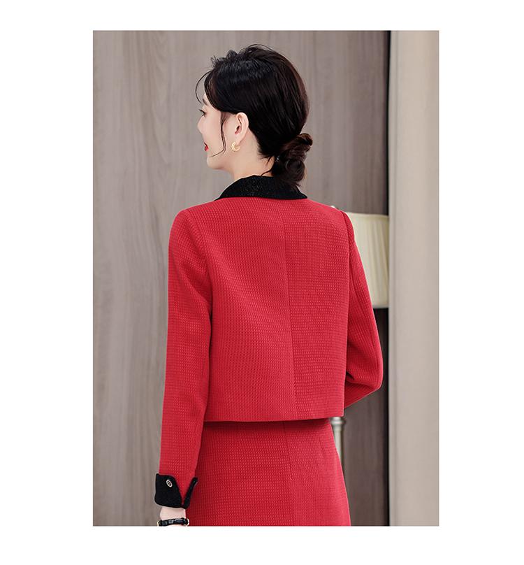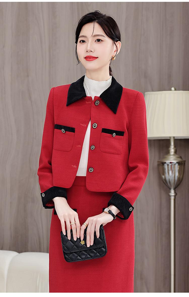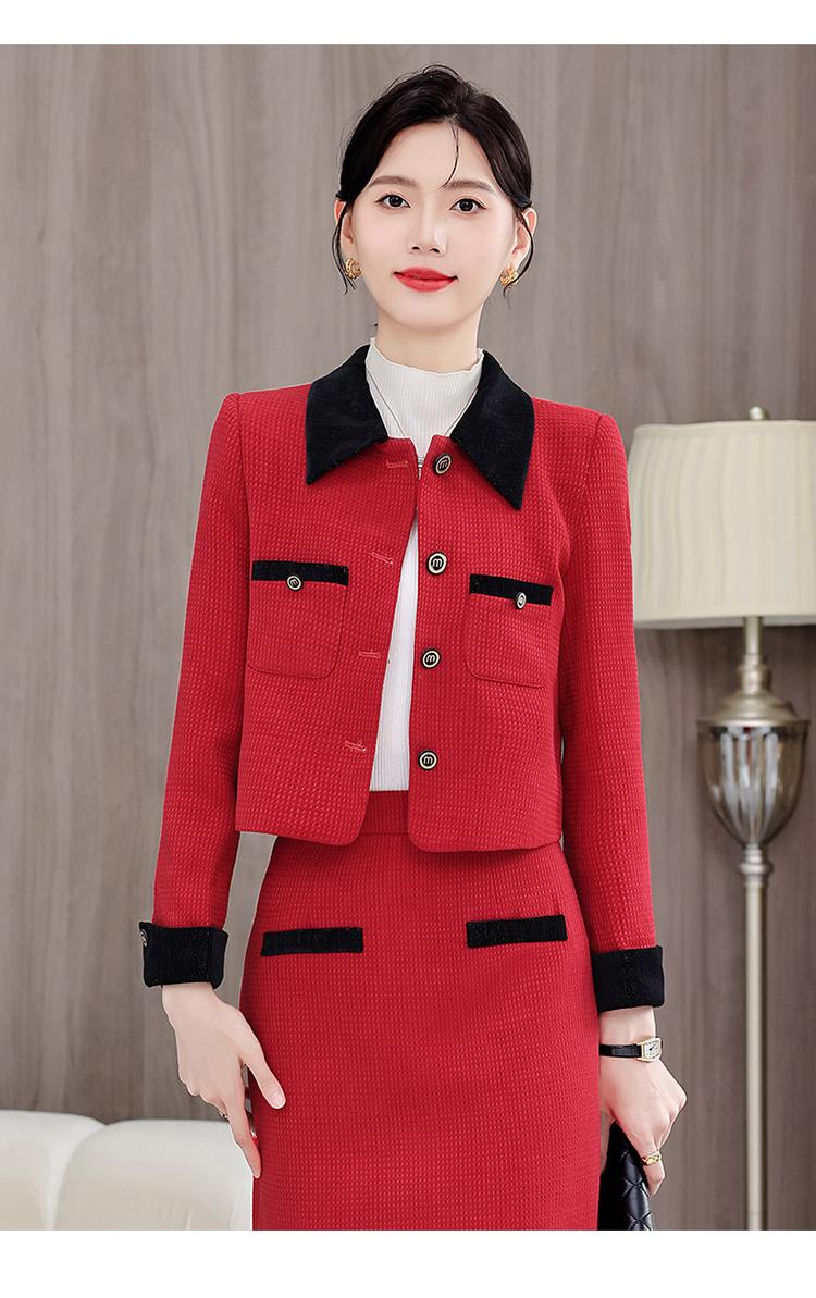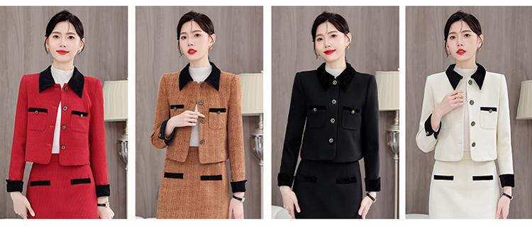 white blazer+skirt, Red blazer+skirt, Brown blazer+skirt, Black blazer+skirt