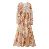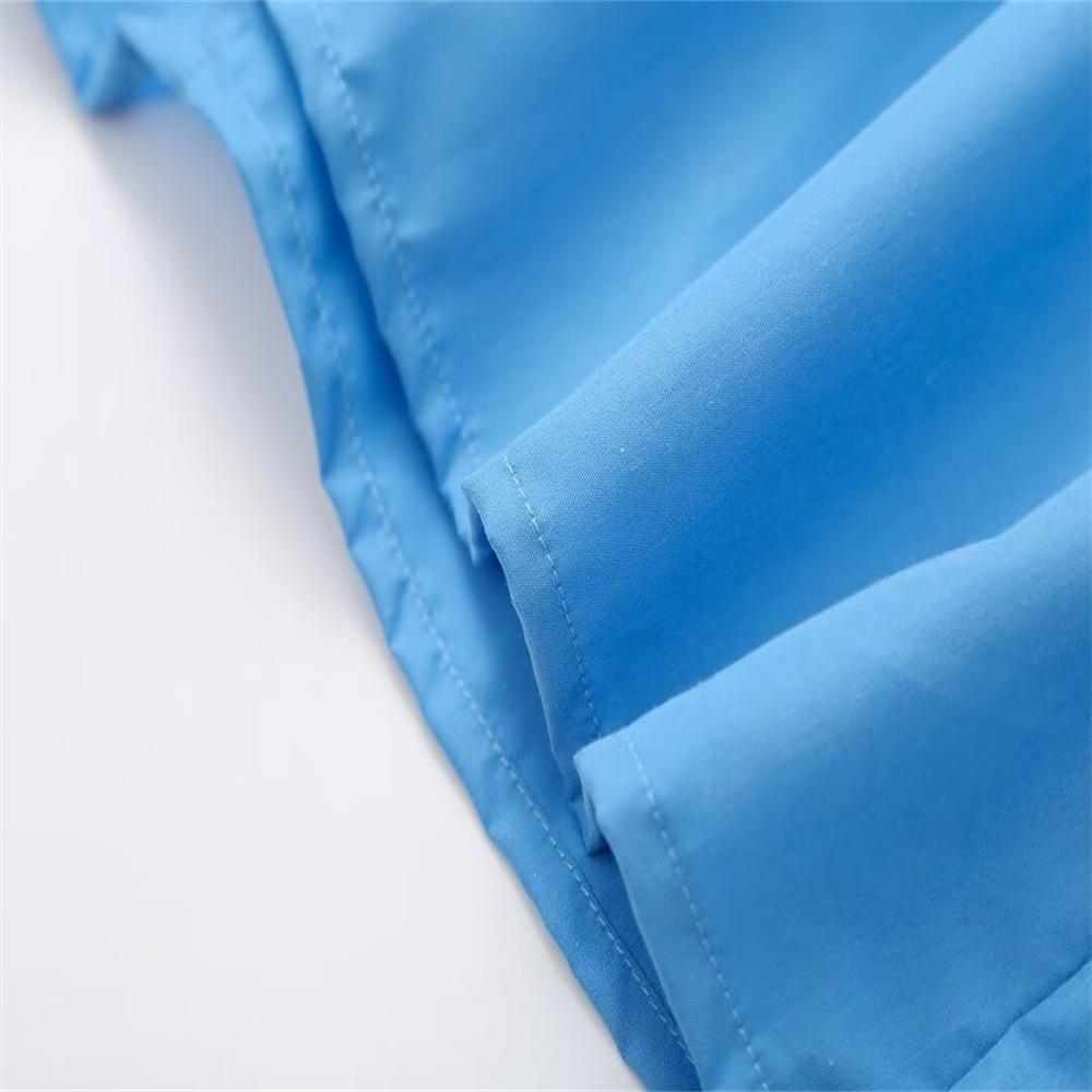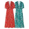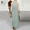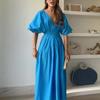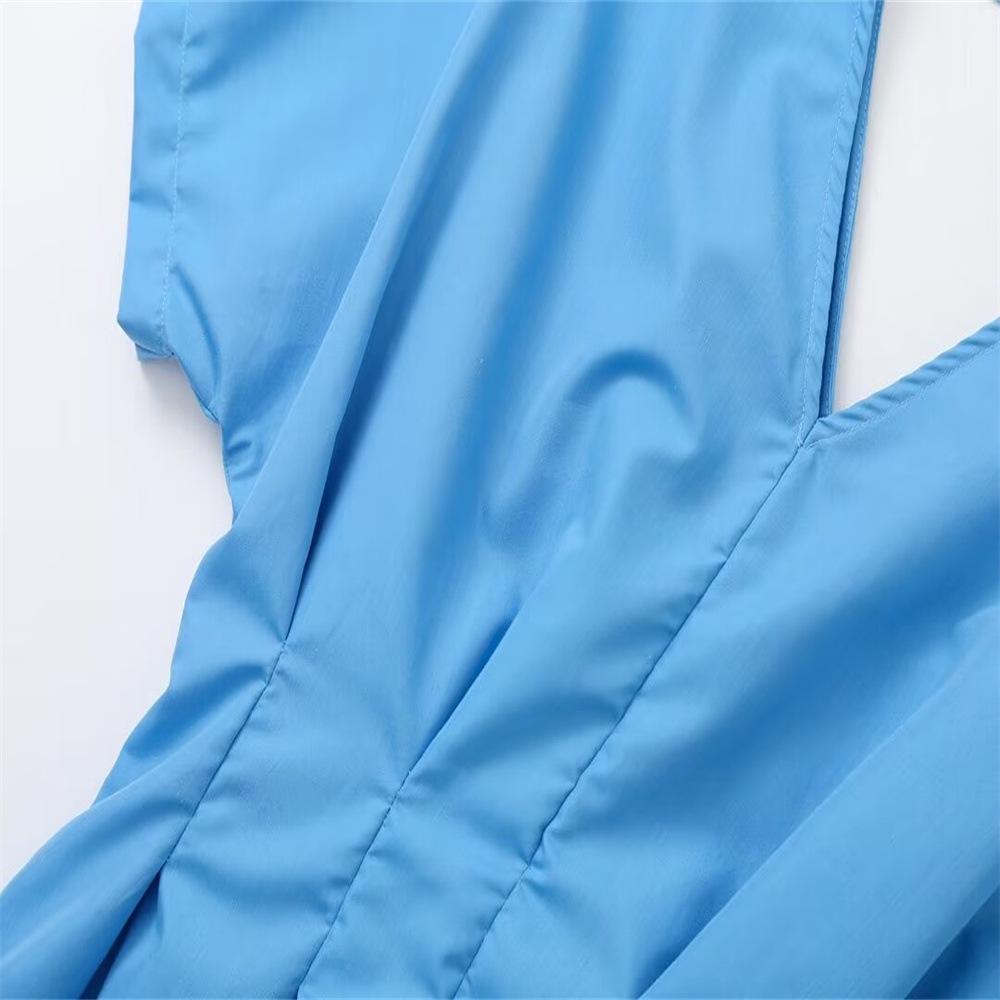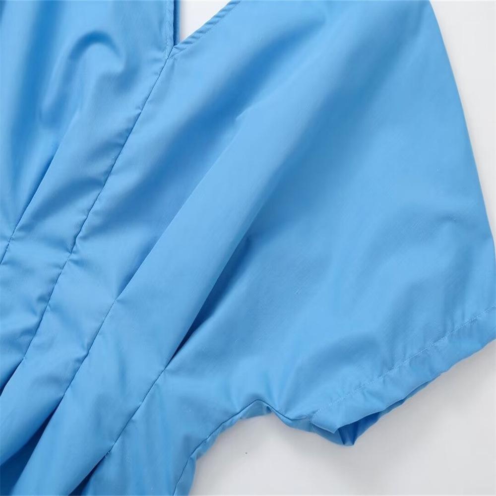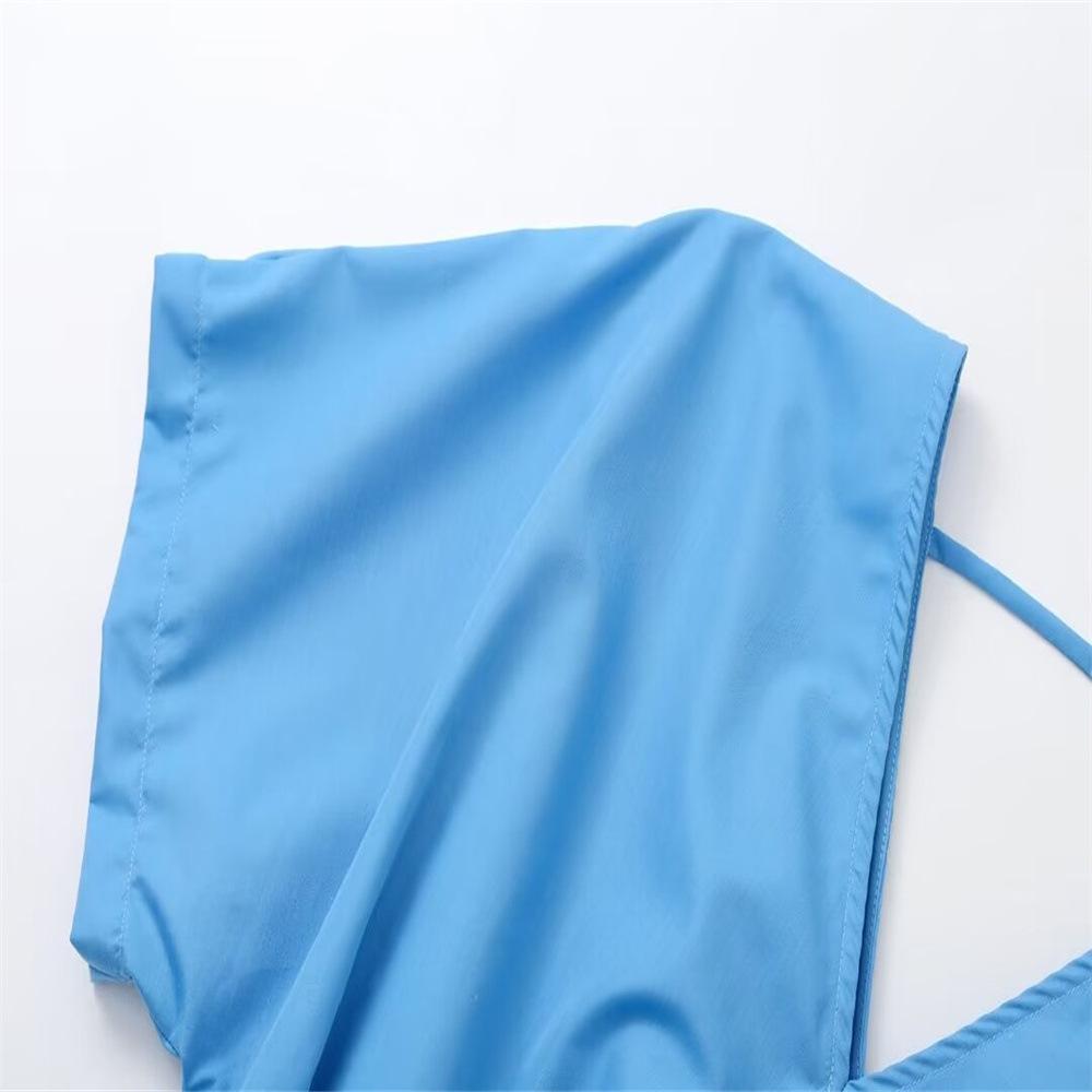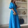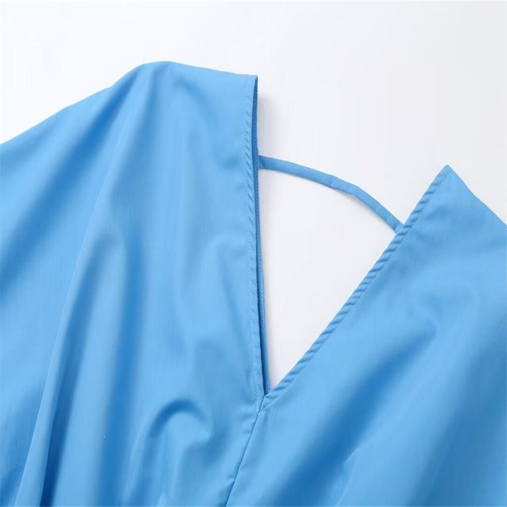 Suministro Transfronterizo Ropa de Verano para Mujer Estilo Europeo y Americano Moda Europea y Americana Elegante Cuello en V Color Puro Cintura Plisada Vestido de Bajo Amplio