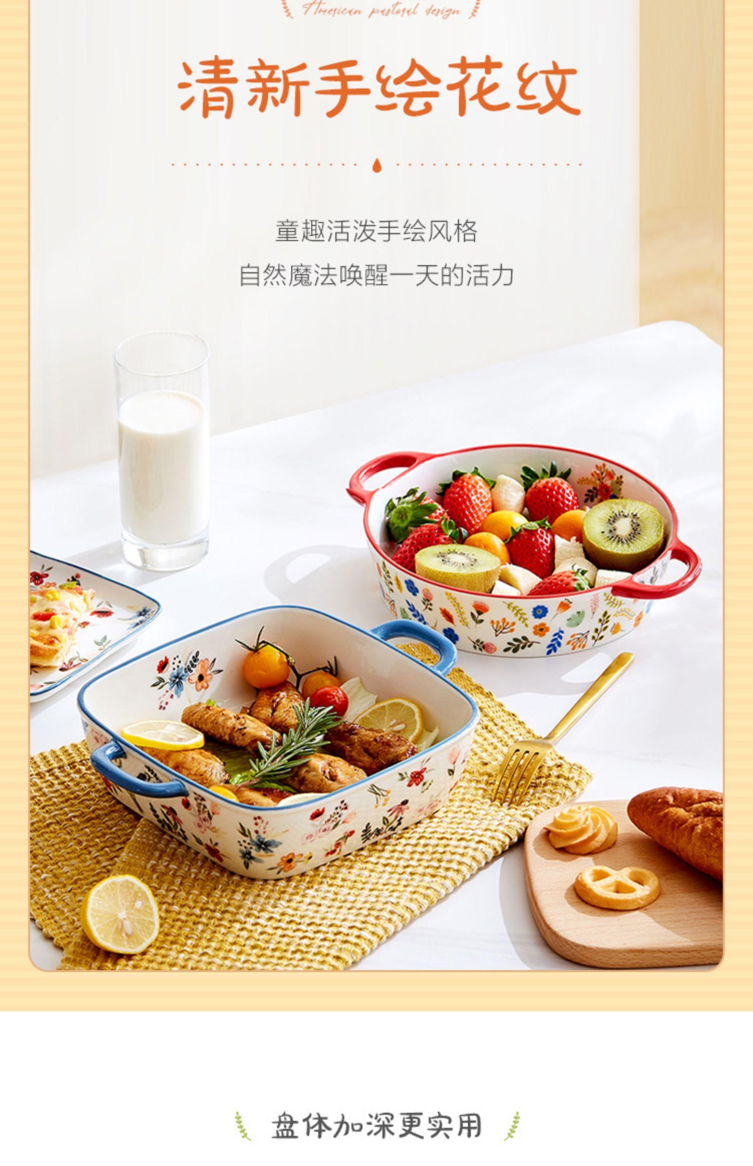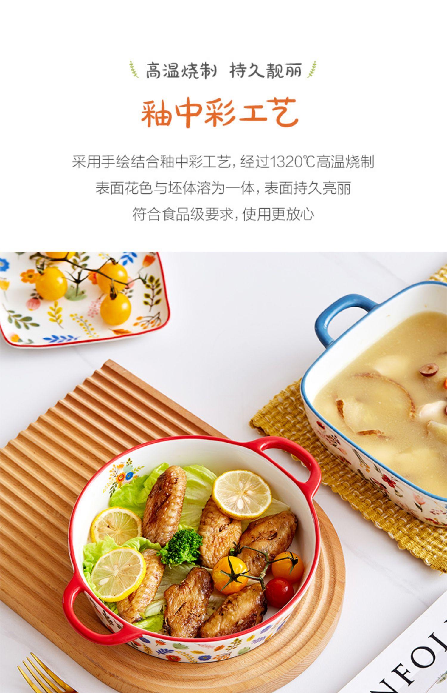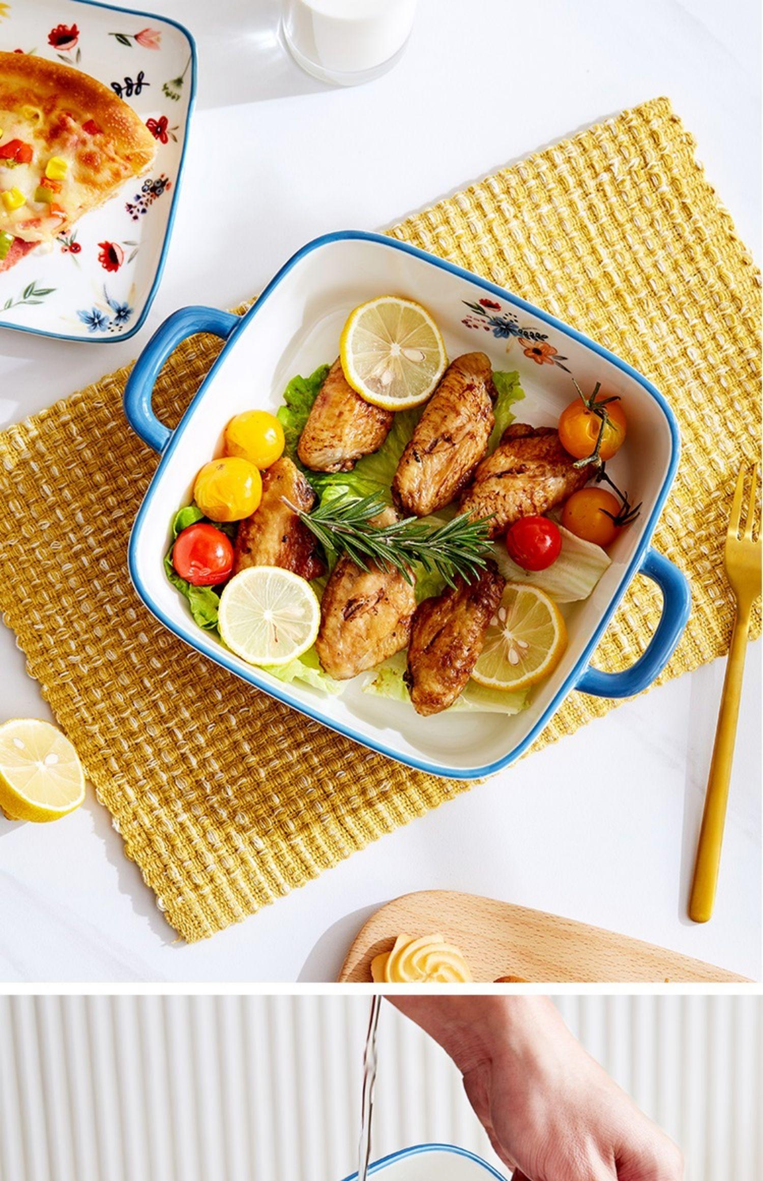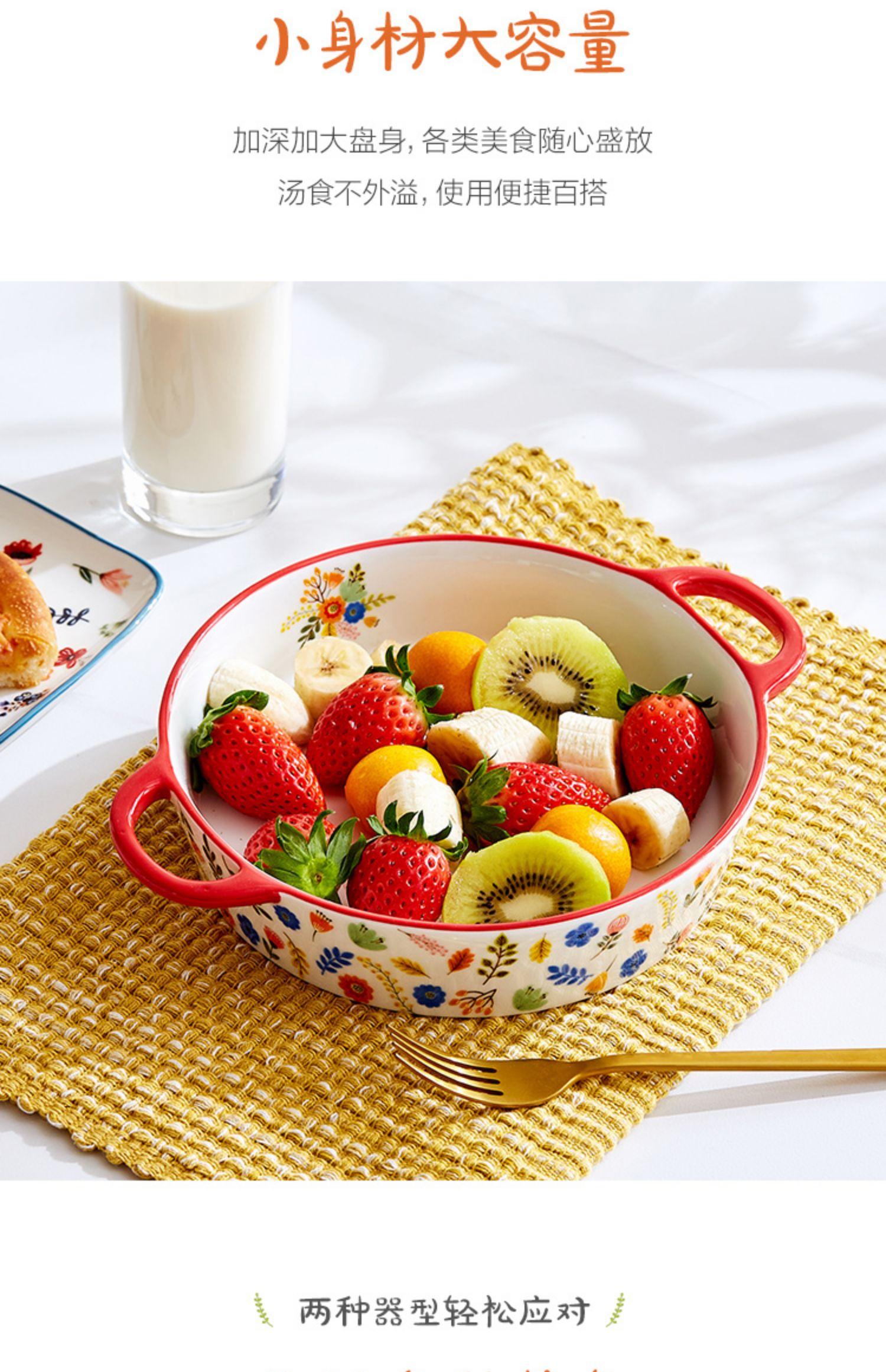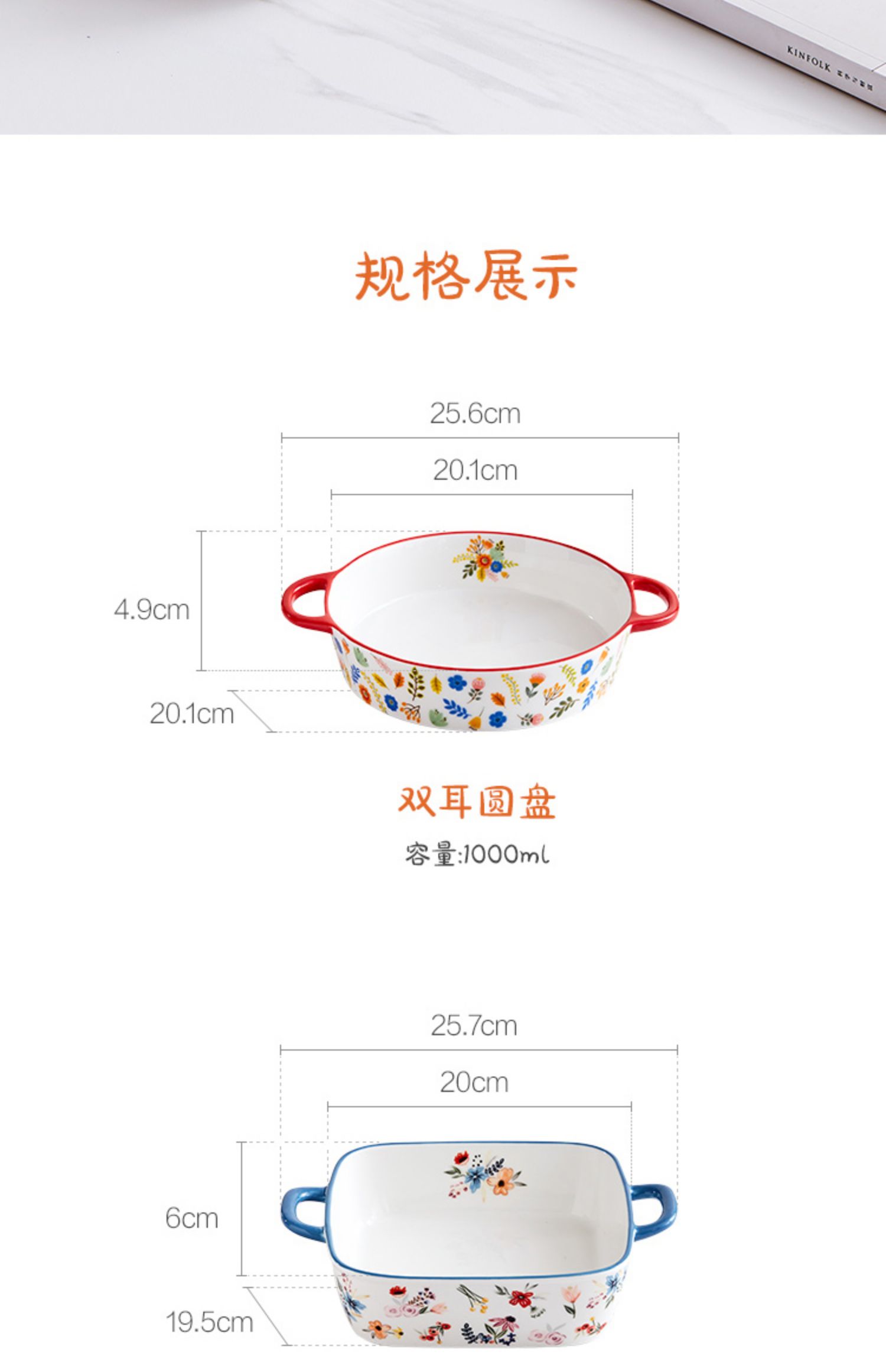 Plato para Hornear de Cerámica Binaural Americano Pastoral Plato para Arroz Horneado con Queso Horno Microondas Horno Tazón Grande
