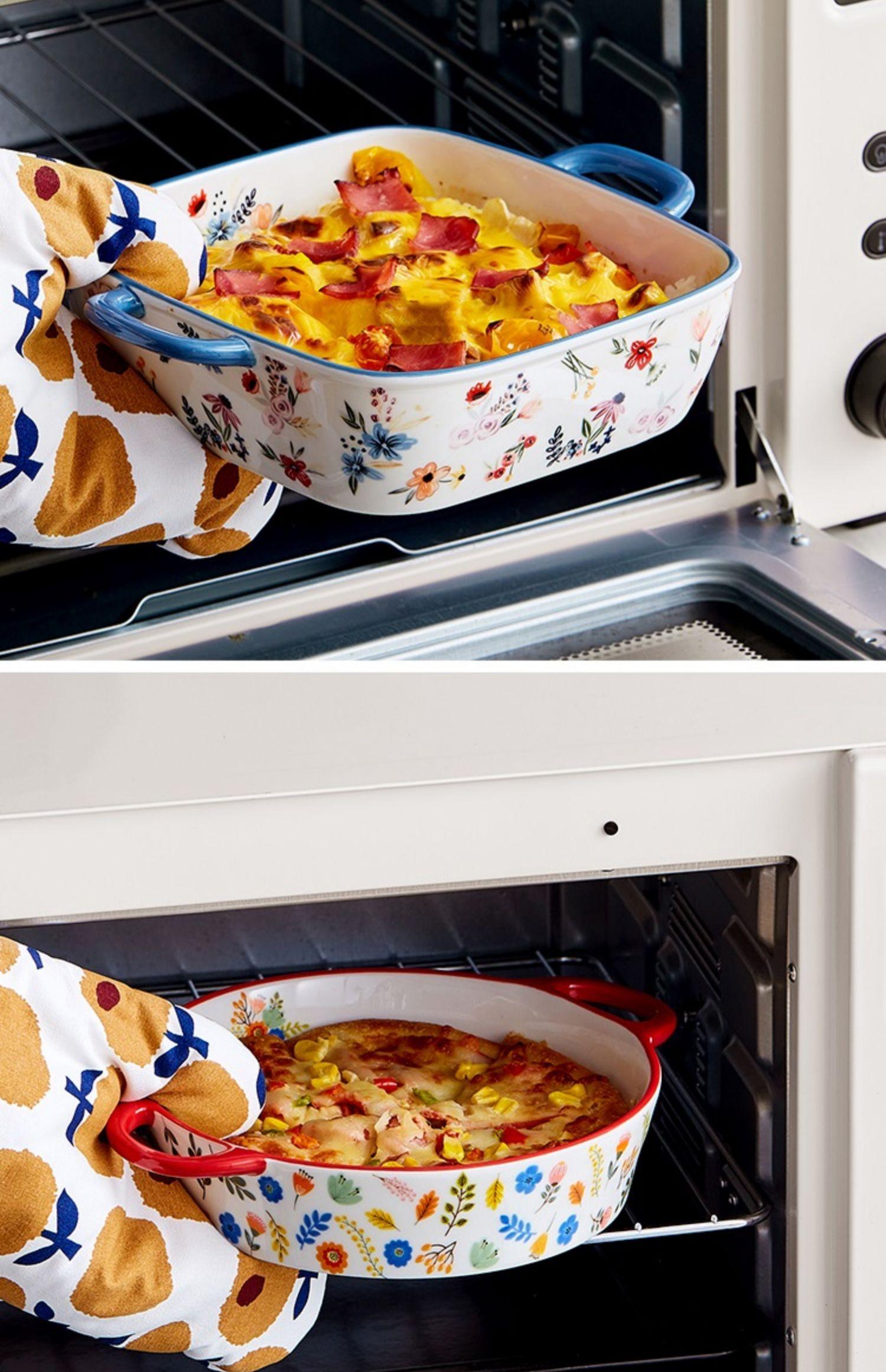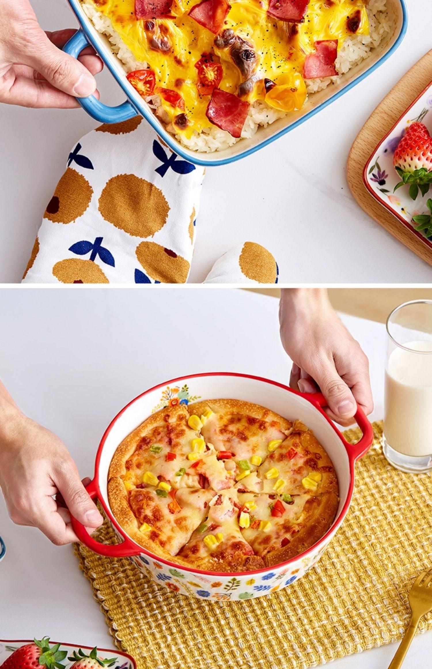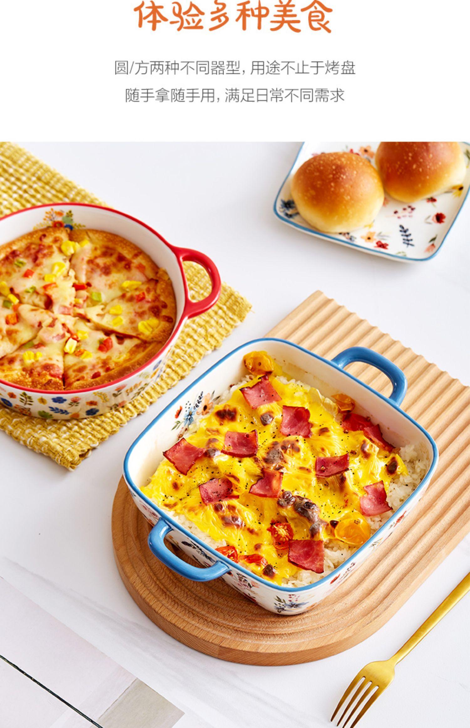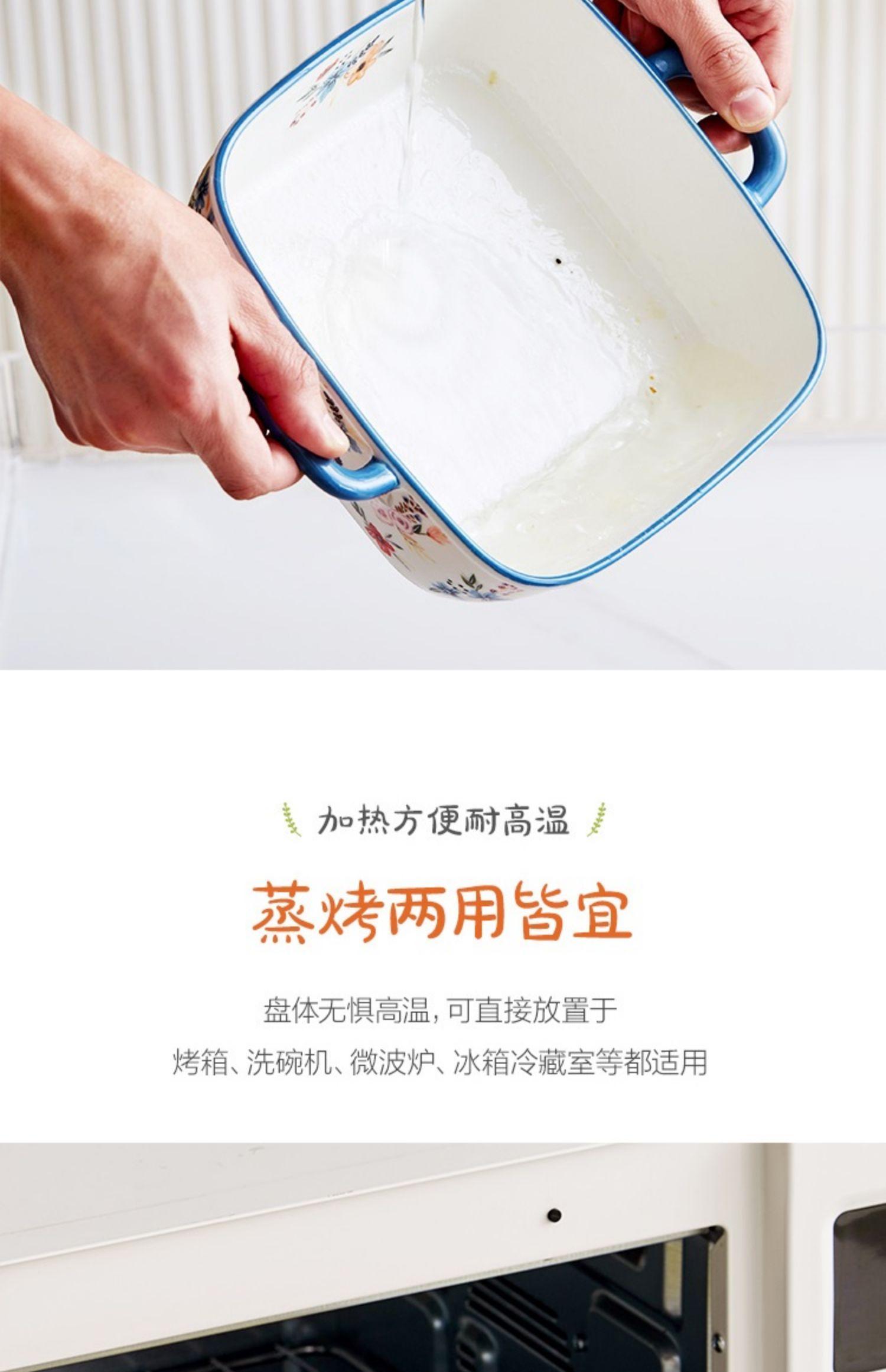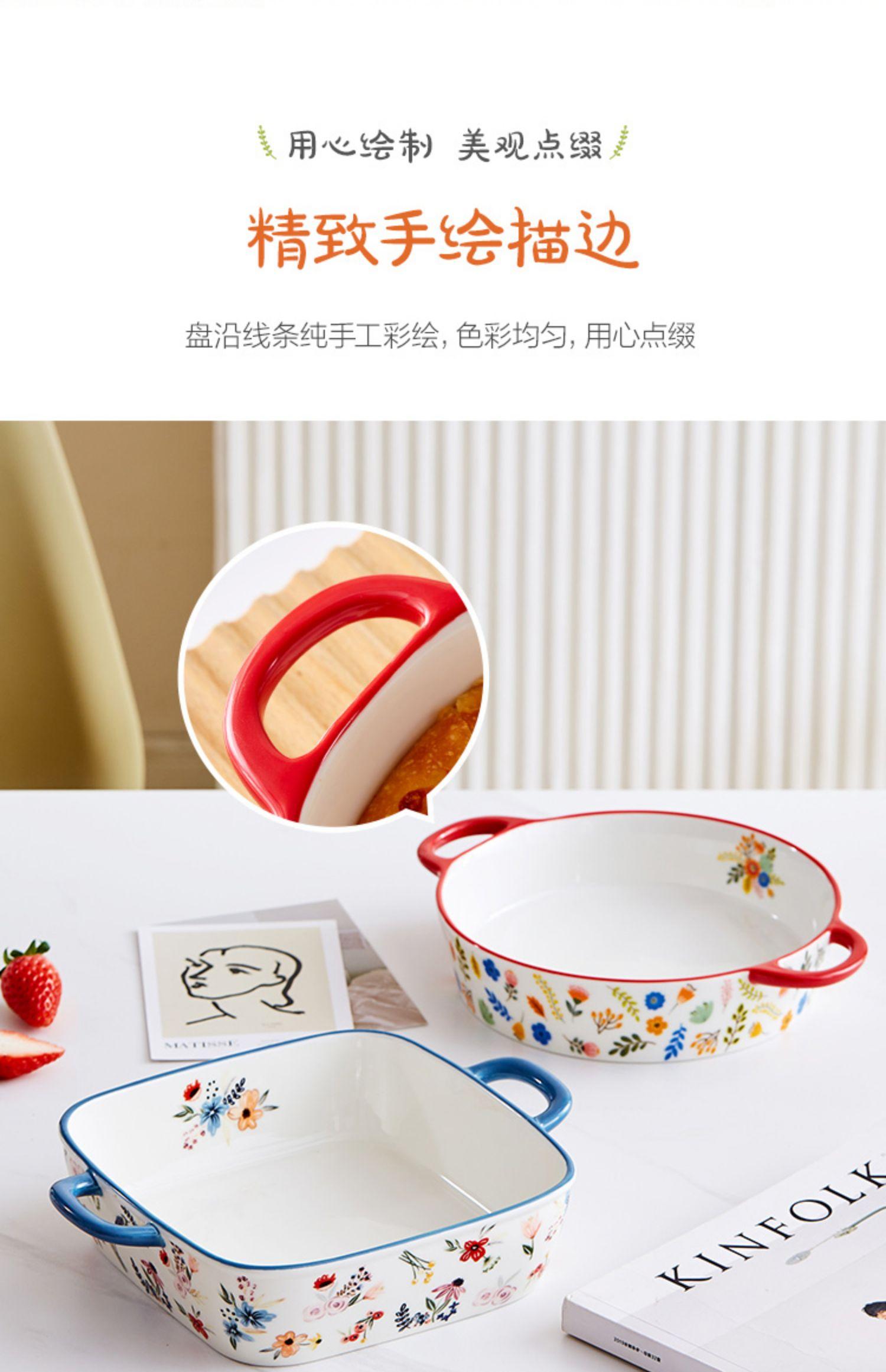 Plato para Hornear de Cerámica Binaural Americano Pastoral Plato para Arroz Horneado con Queso Horno Microondas Horno Tazón Grande
