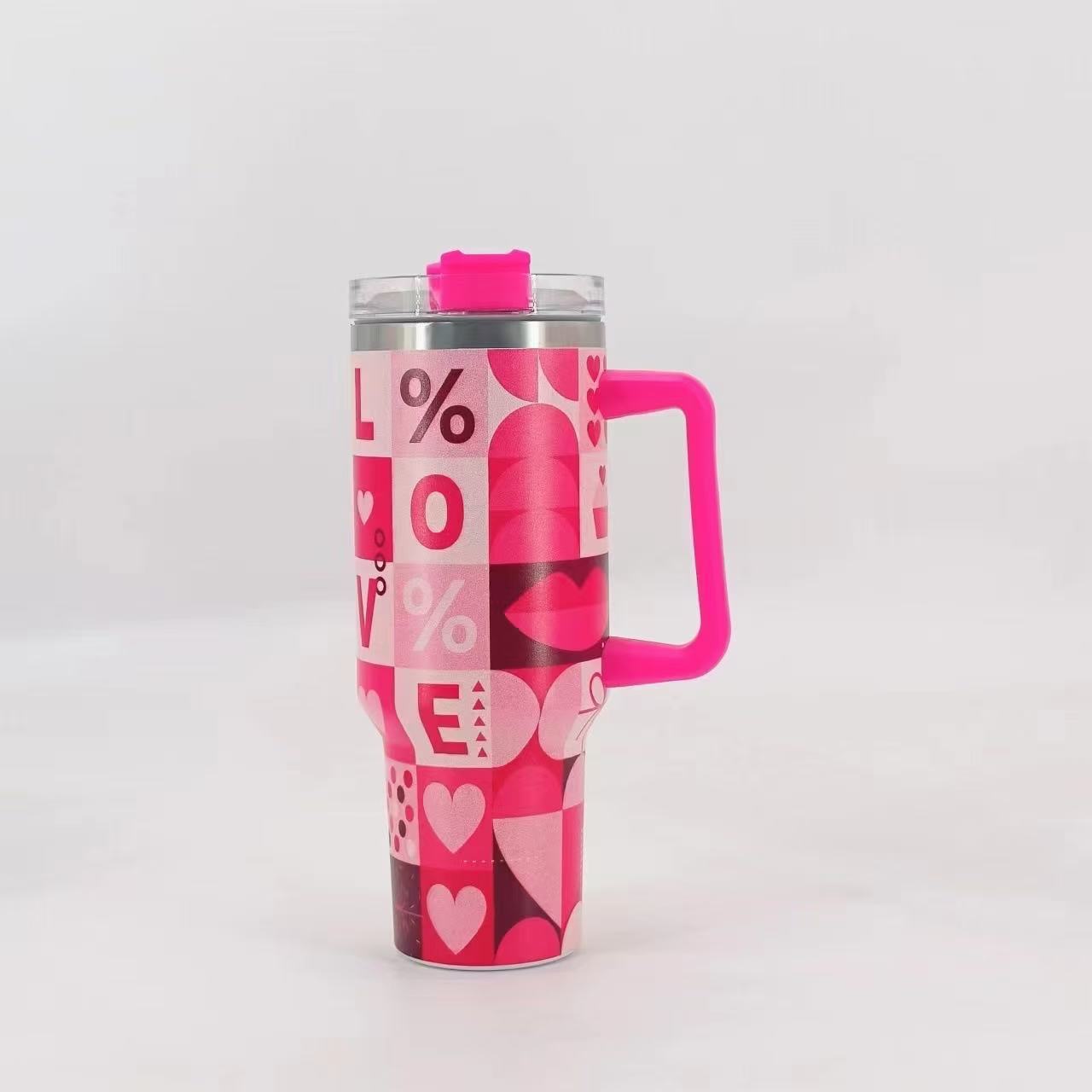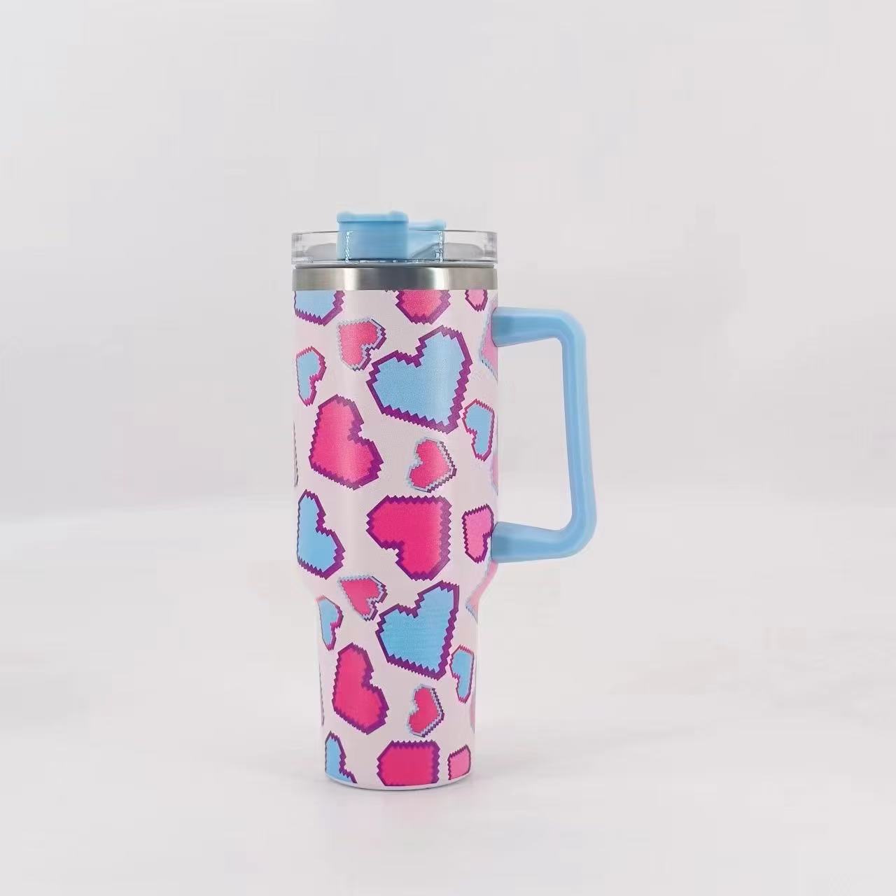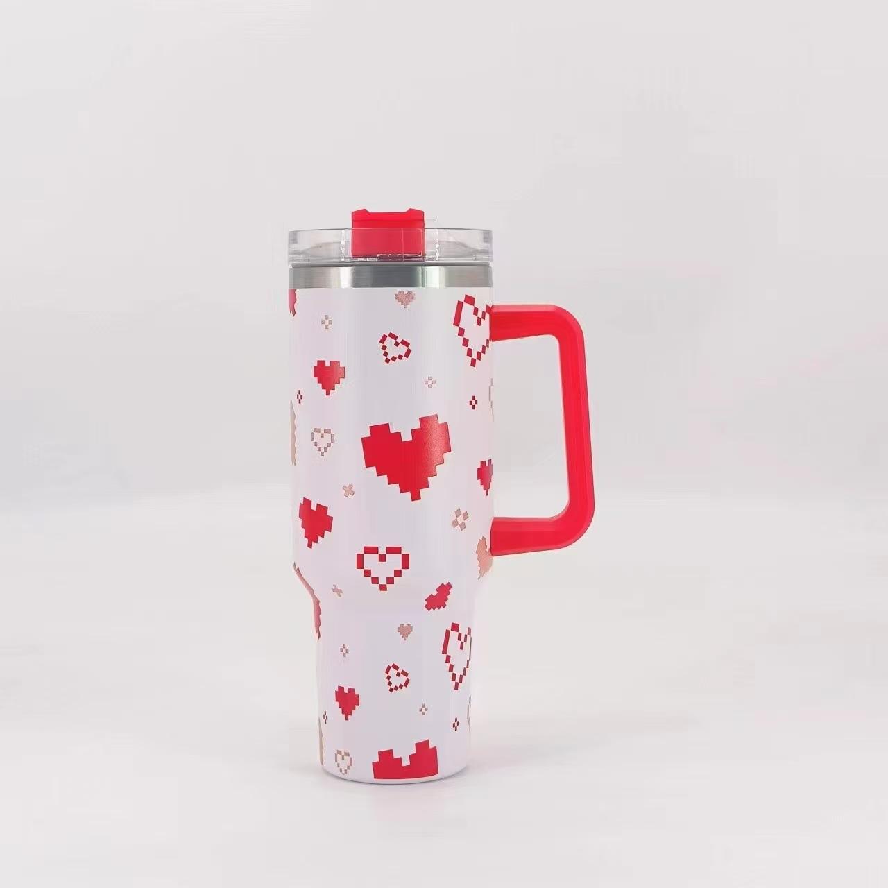 Termo para coche de acero inoxidable 304 de 40 oz con forma de corazón de píxeles transfronterizos, gran capacidad, con asa