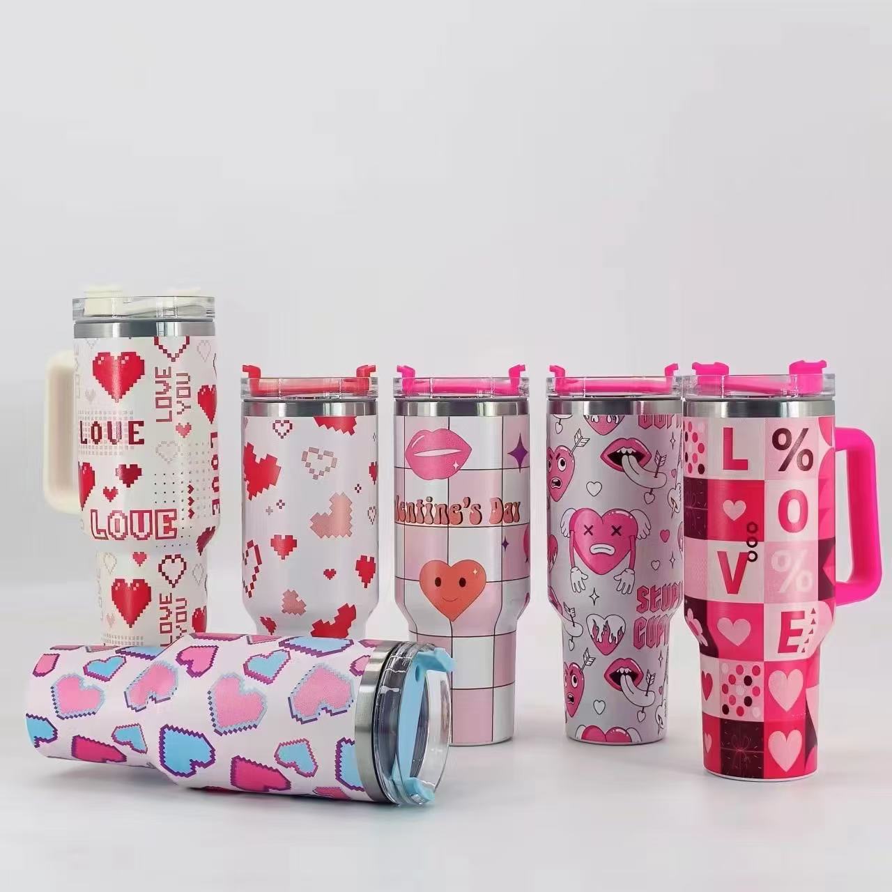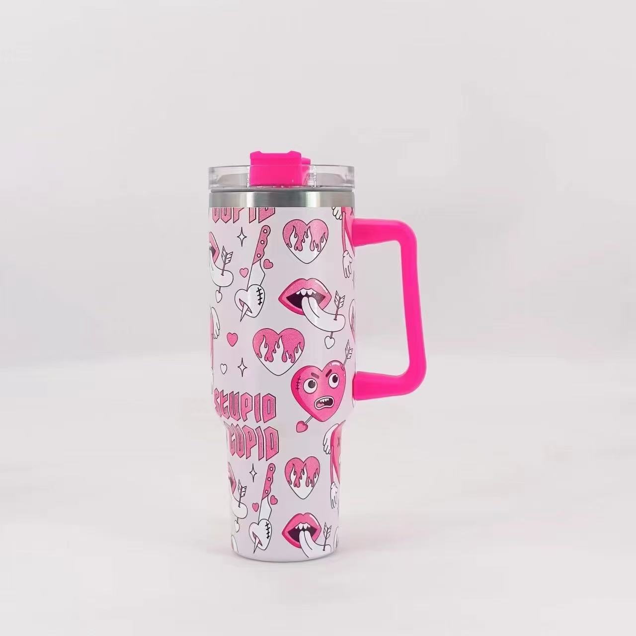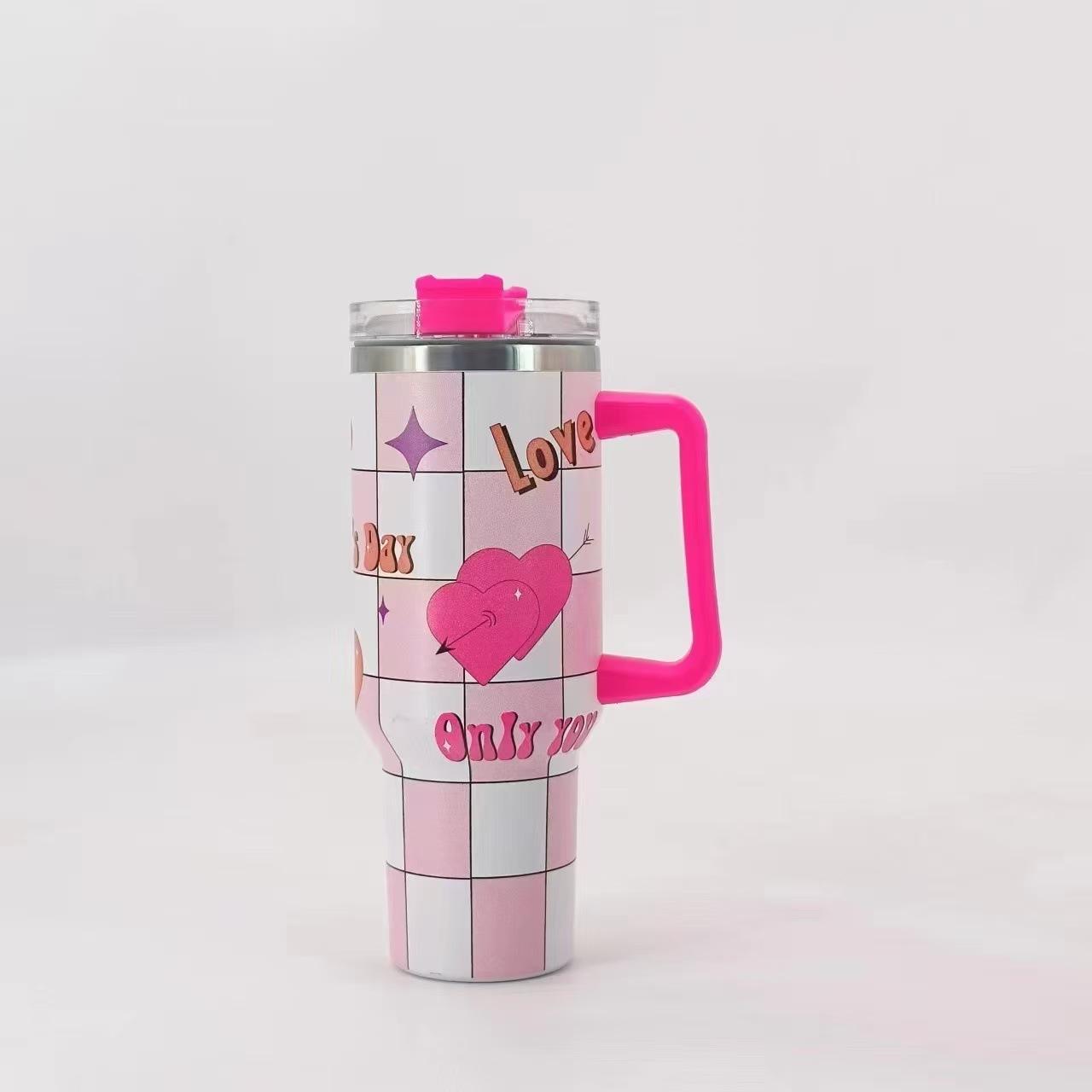 Termo para coche de acero inoxidable 304 de 40 oz con forma de corazón de píxeles transfronterizos, gran capacidad, con asa