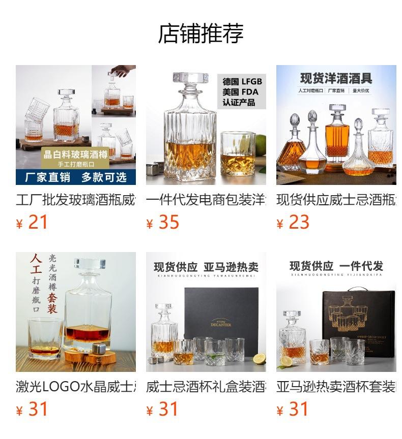 Suministro al contado, venta caliente, botella de vino de vidrio, copa de whisky, copa de vino extranjera, juego de vino XO, juego de botella de vino, copa de whisky