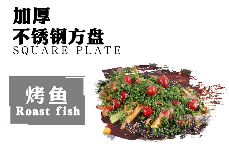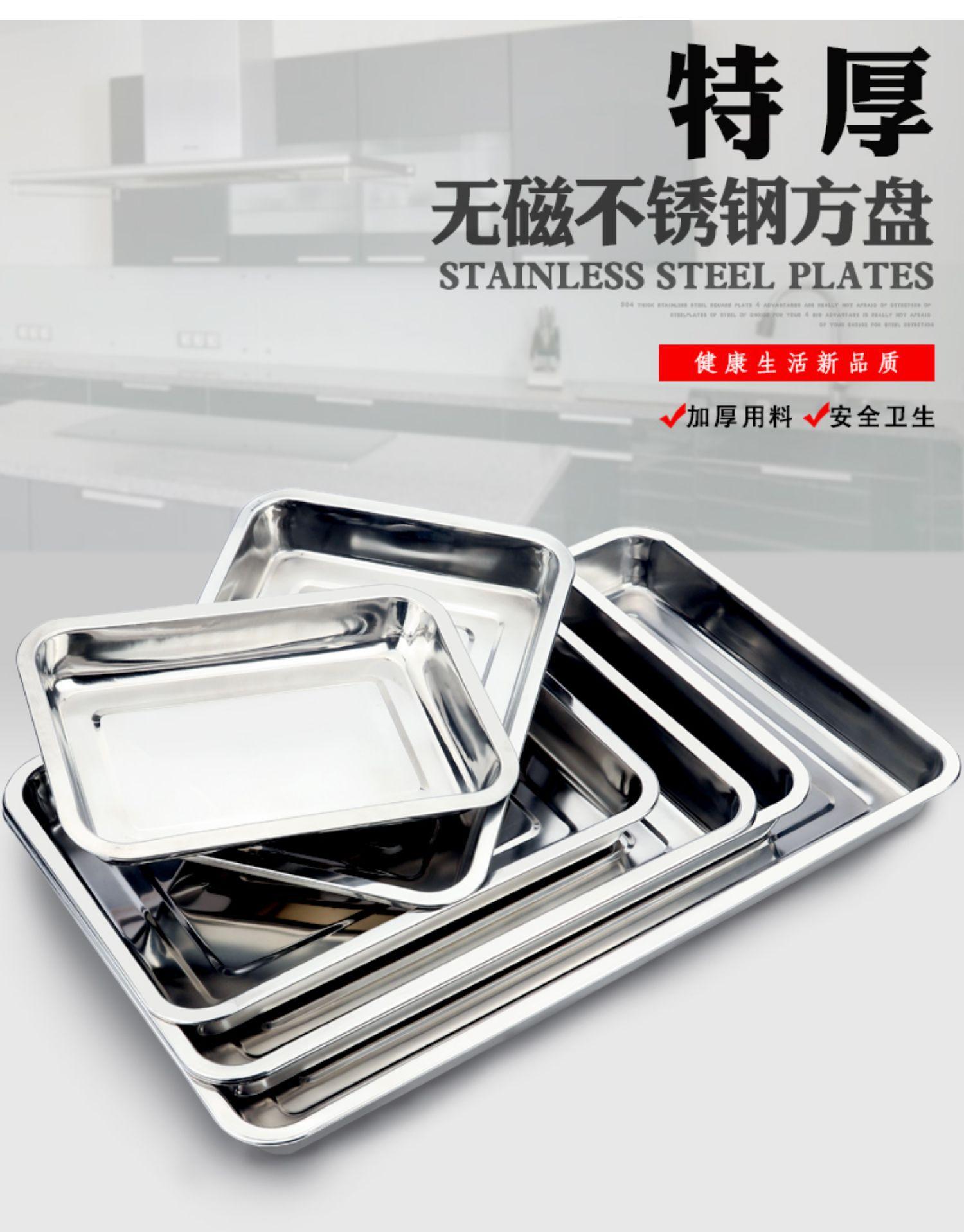 Plato cuadrado de acero inoxidable, bandeja rectangular, plato de hierro, plato de barbacoa comercial, plato de pescado a la parrilla, plato de dumplings, plato de arroz al vapor, plato doméstico