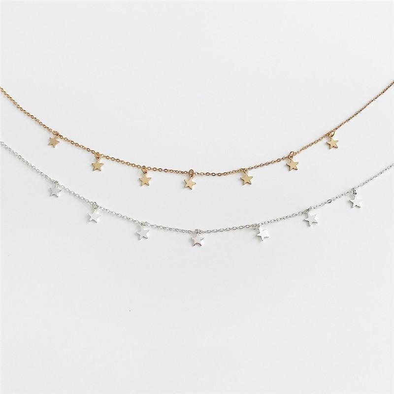 Collar Casual de Moda Versátil con Colgante de Borla de Estrella Acero Inoxidable Chapado en Oro de 18K Joyería Cadena para Clavícula de Mujer
