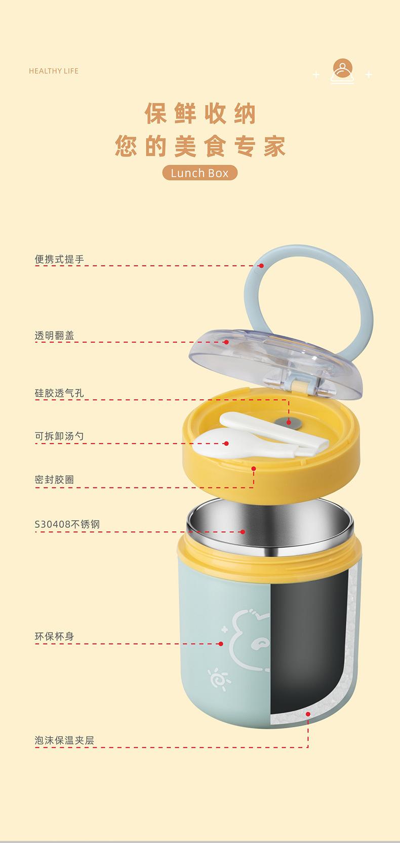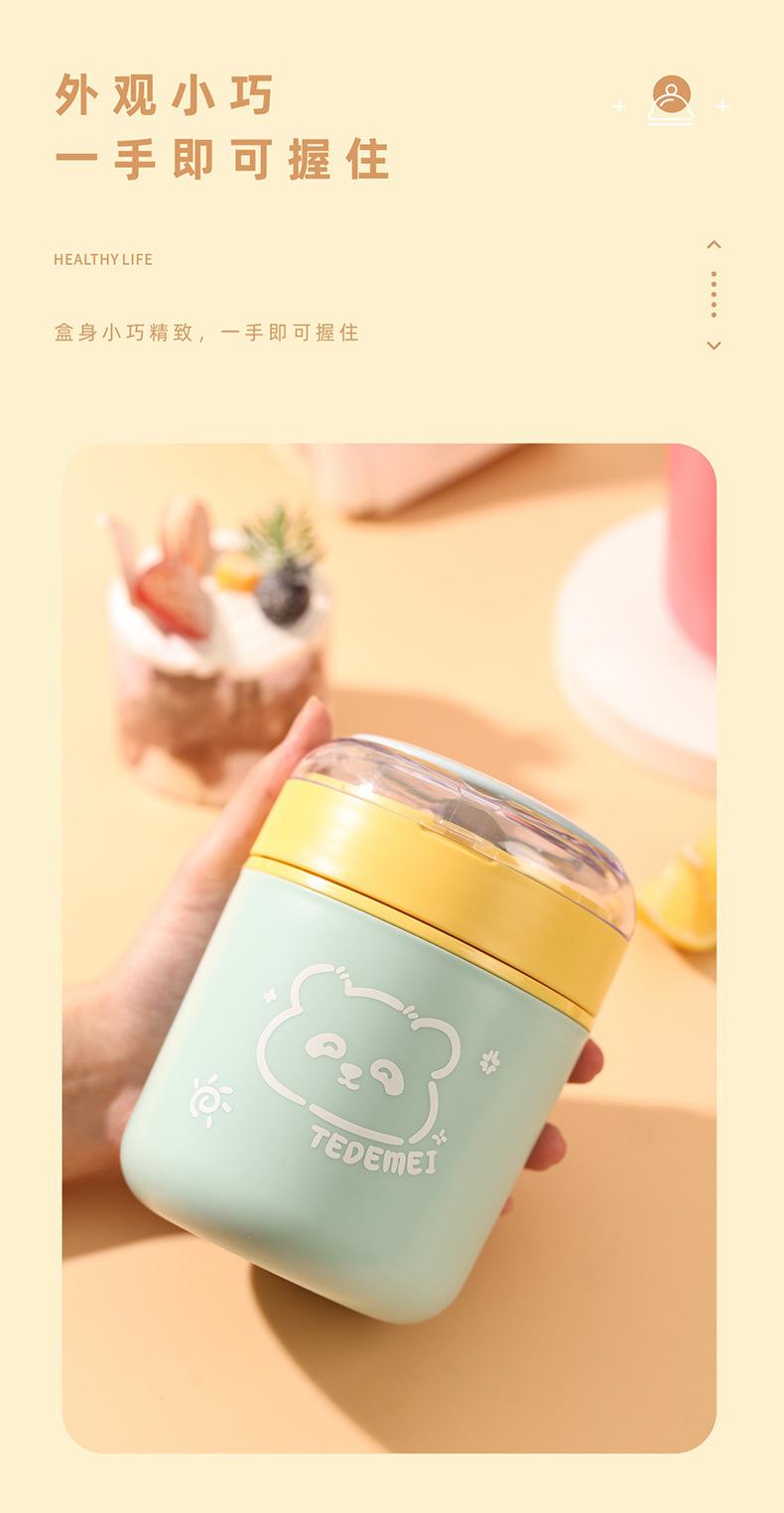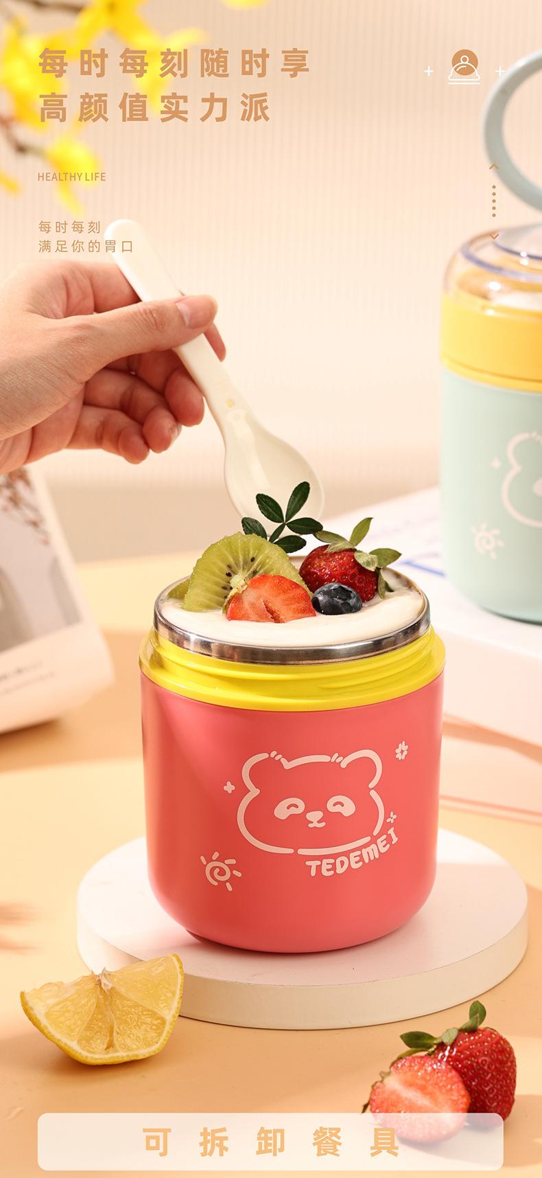 Taza de desayuno aislada de acero inoxidable 304 con tapa y cuchara para trabajadores de oficina, taza portátil para leche, avena, leche de soya para niños