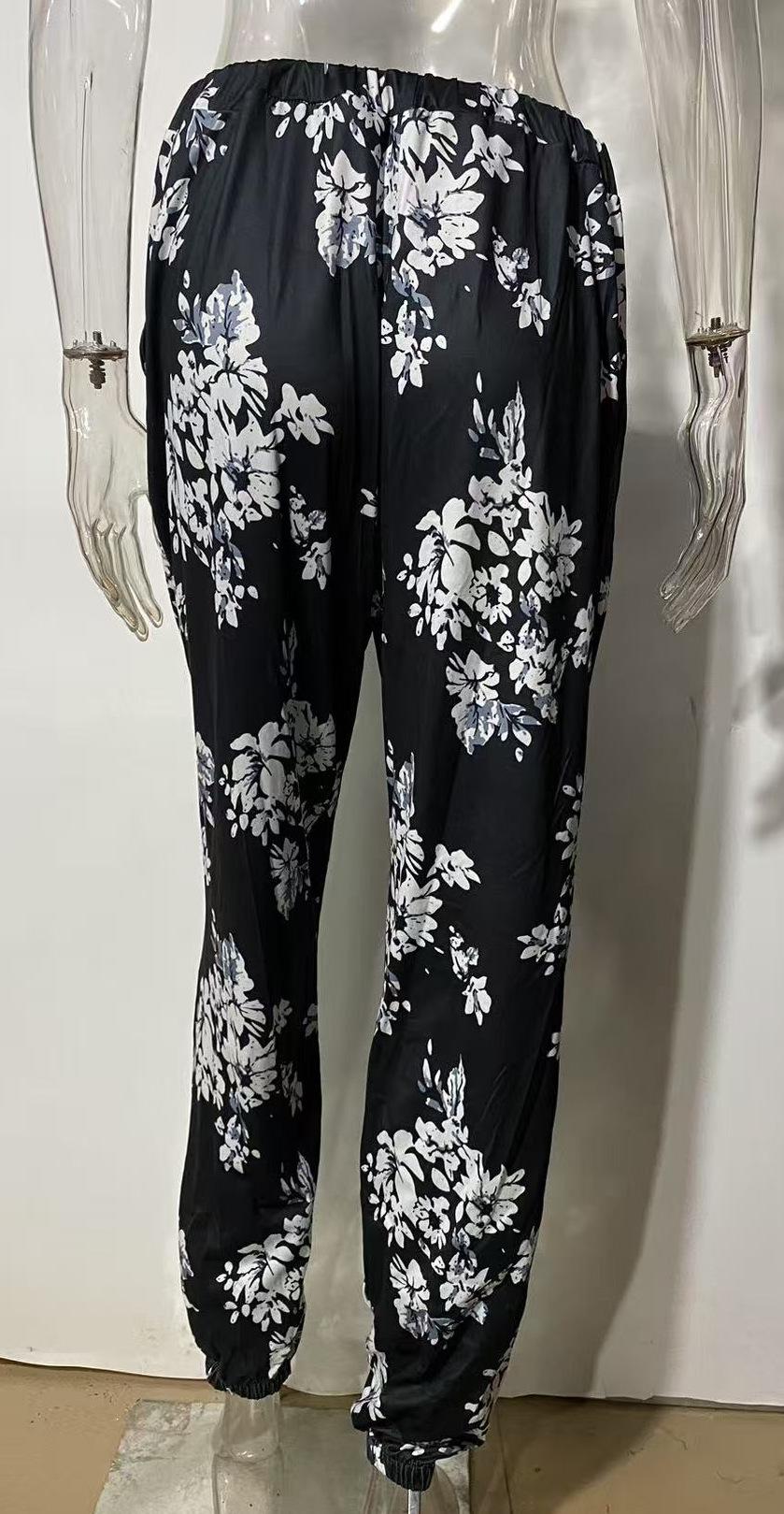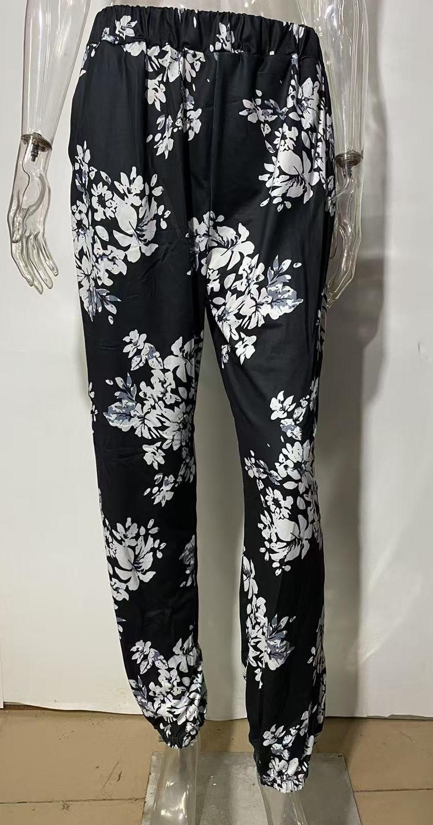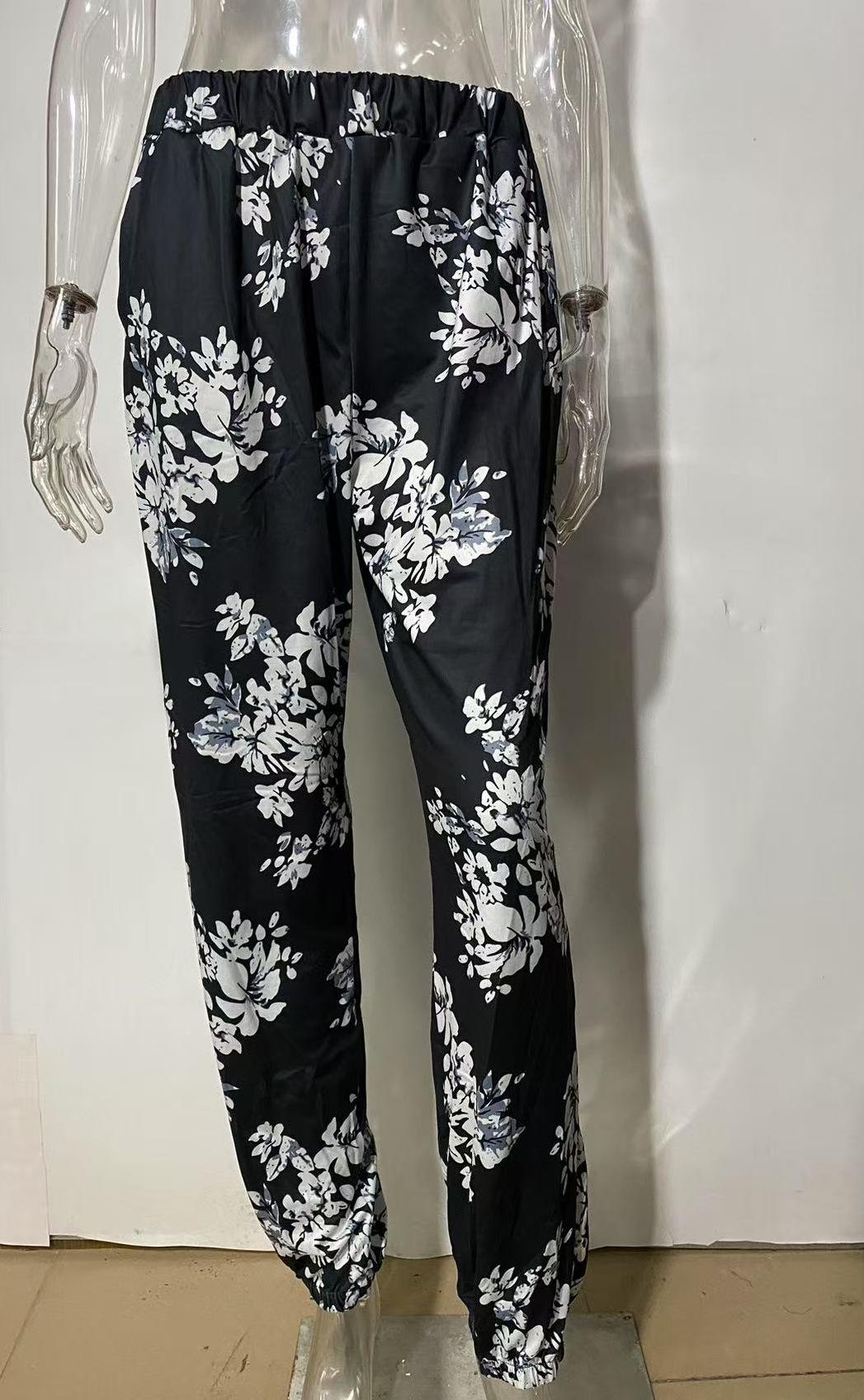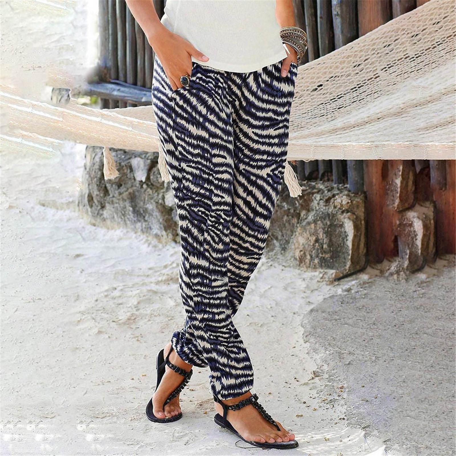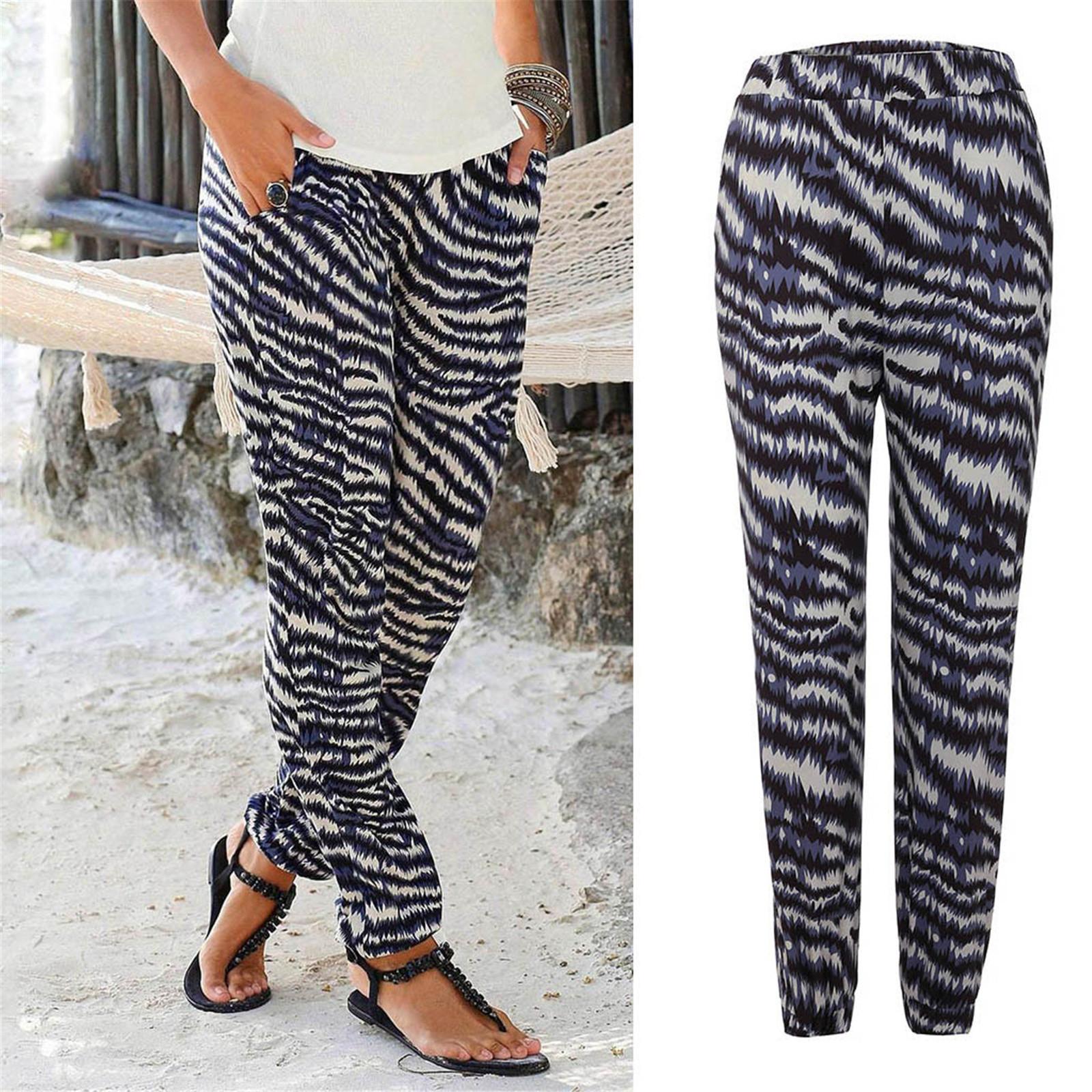 Pantalones de Verano para Mujer Nuevos Pantalones Estampados de Cintura Alta de Moda para Mujer Rectos Casuales de Calle 9719