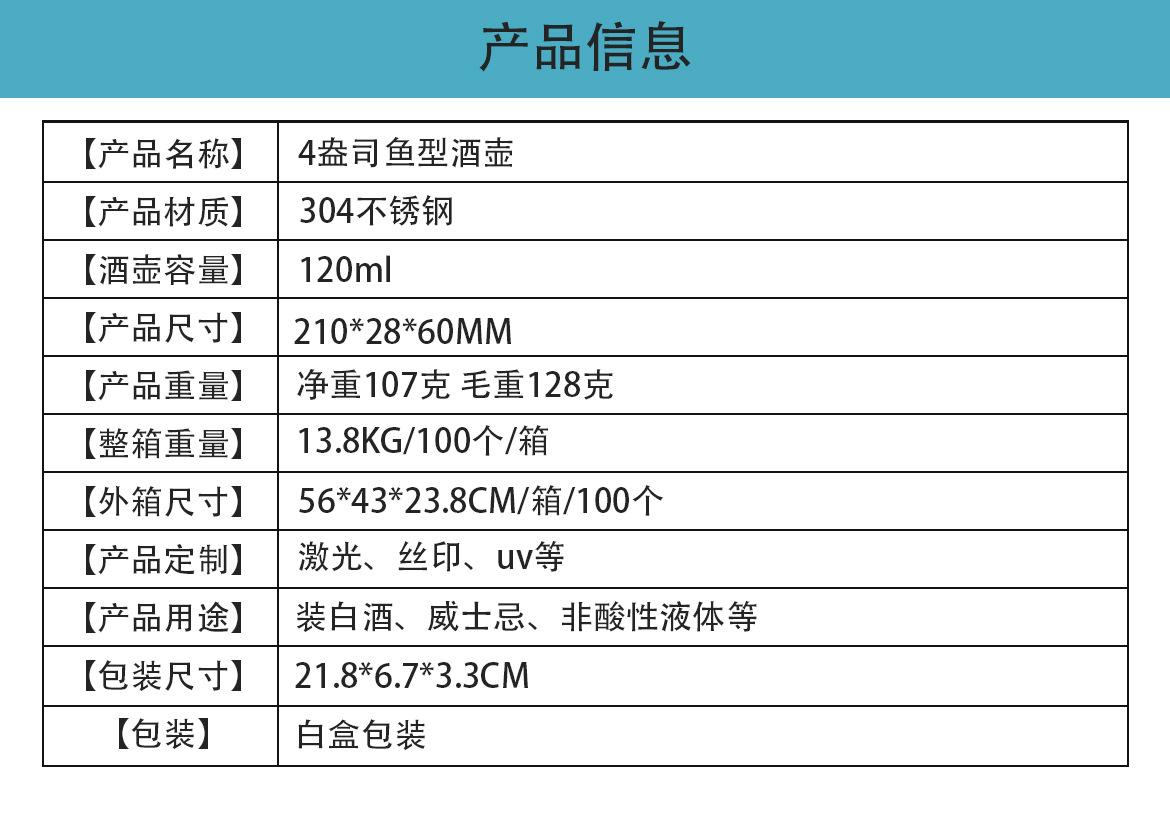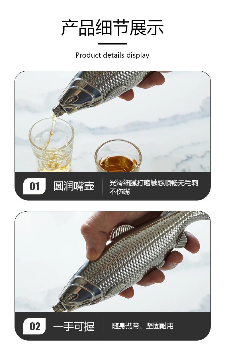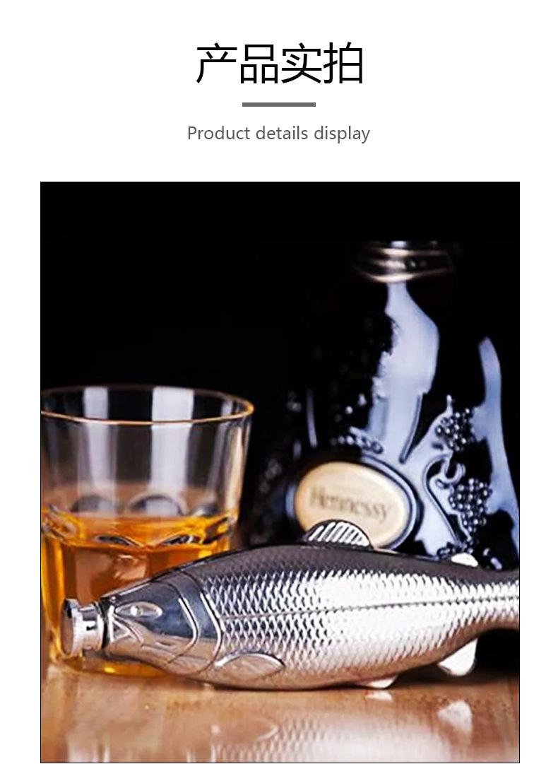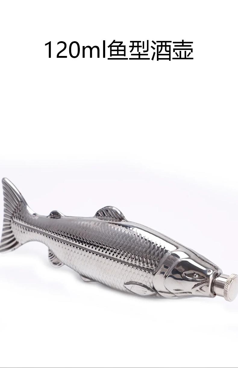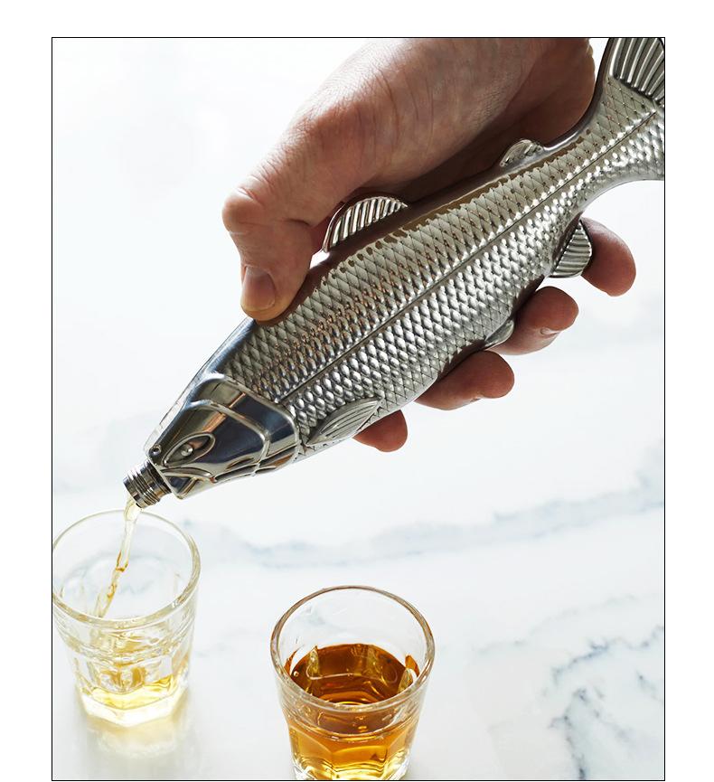 Licorera exclusiva transfronteriza de acero inoxidable 304 con forma de pez 5 oz de forma especial portátil set de vino camping al aire libre licorera
